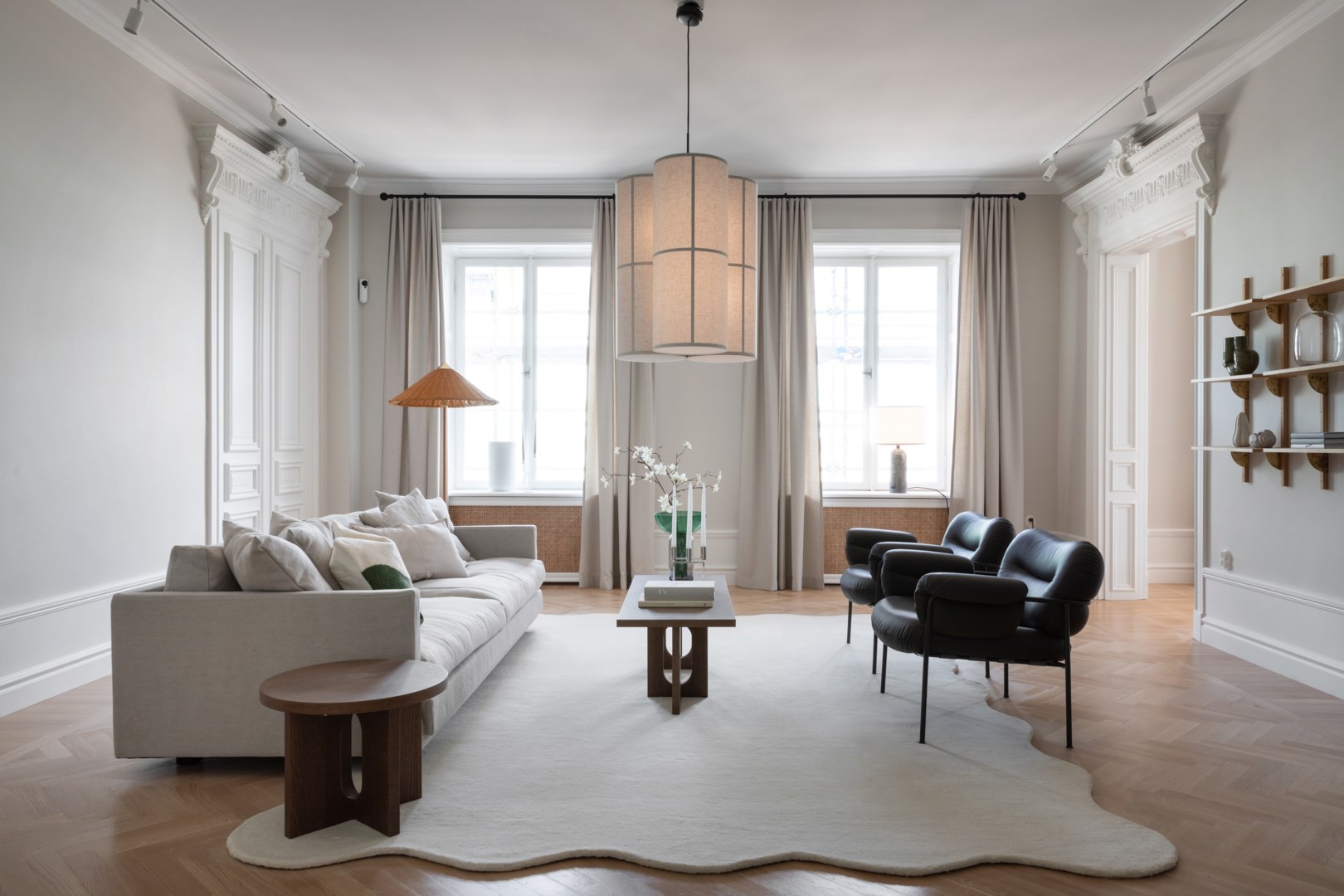 Välplanerad sekelskiftesvåning i högt och ljust hörnläge mot Adolf Fredriks kyrka. Kök från Kvänum med utrustning från Miele. Master med klädkammare och badrum ensuite. Balkong mot gården. Moderna välplanerade planlösningar med två badrum och gäst-wc. Högt i tak med stuckaturer, fiskbensparkett och bröstpaneler. Lugnt, tyst och attraktivt läge invid Tegnérlunden och Drottninggatan.