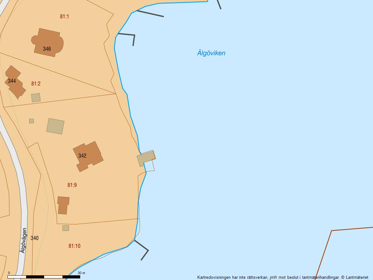 På en av Älgös mest eftertraktade adresser ligger denna idylliska sjötomt med sol från tidig morgon till sen eftermiddag över vattnet och med kvällssol över tomten. Här njuter man av ett rofyllt skärgårdsliv endast 30 minuter från Stockholm, med egen brygga som rymmer även större båtar (djup cirka 1,5 till 1,7 meter), charmigt brygghus med sovmöjlighet, kök och vedeldad bastu enligt säljarens uppgift om cirka 20 kvm, en perfekt kombination av avkoppling, bad och båtliv.