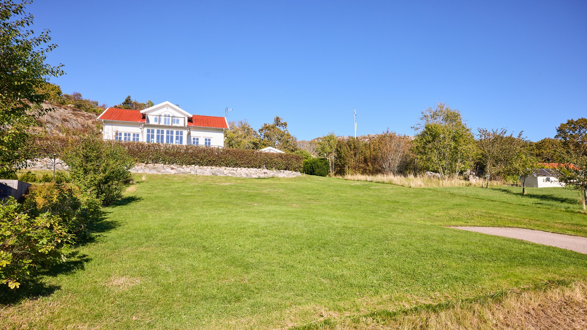 Kommunalt vatten och avlopp finns i tomtgräns.