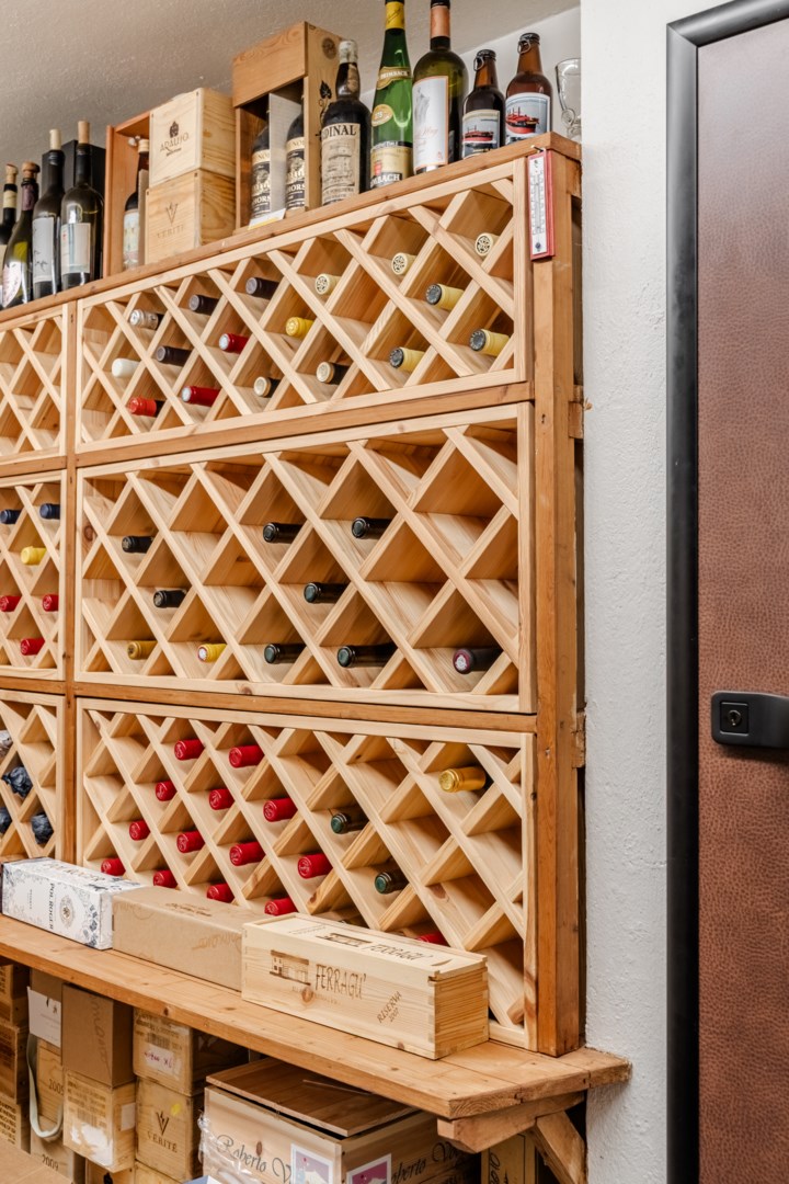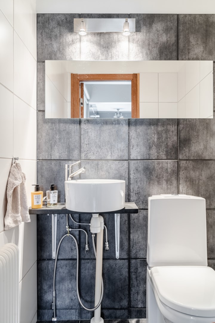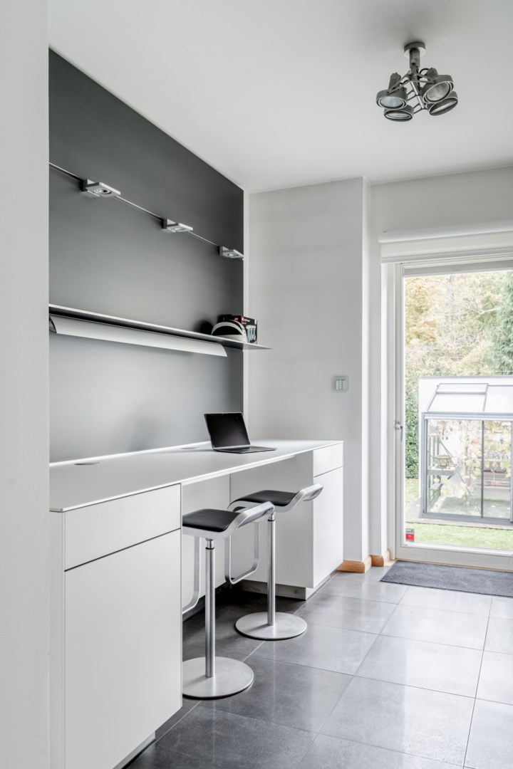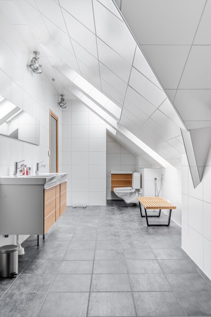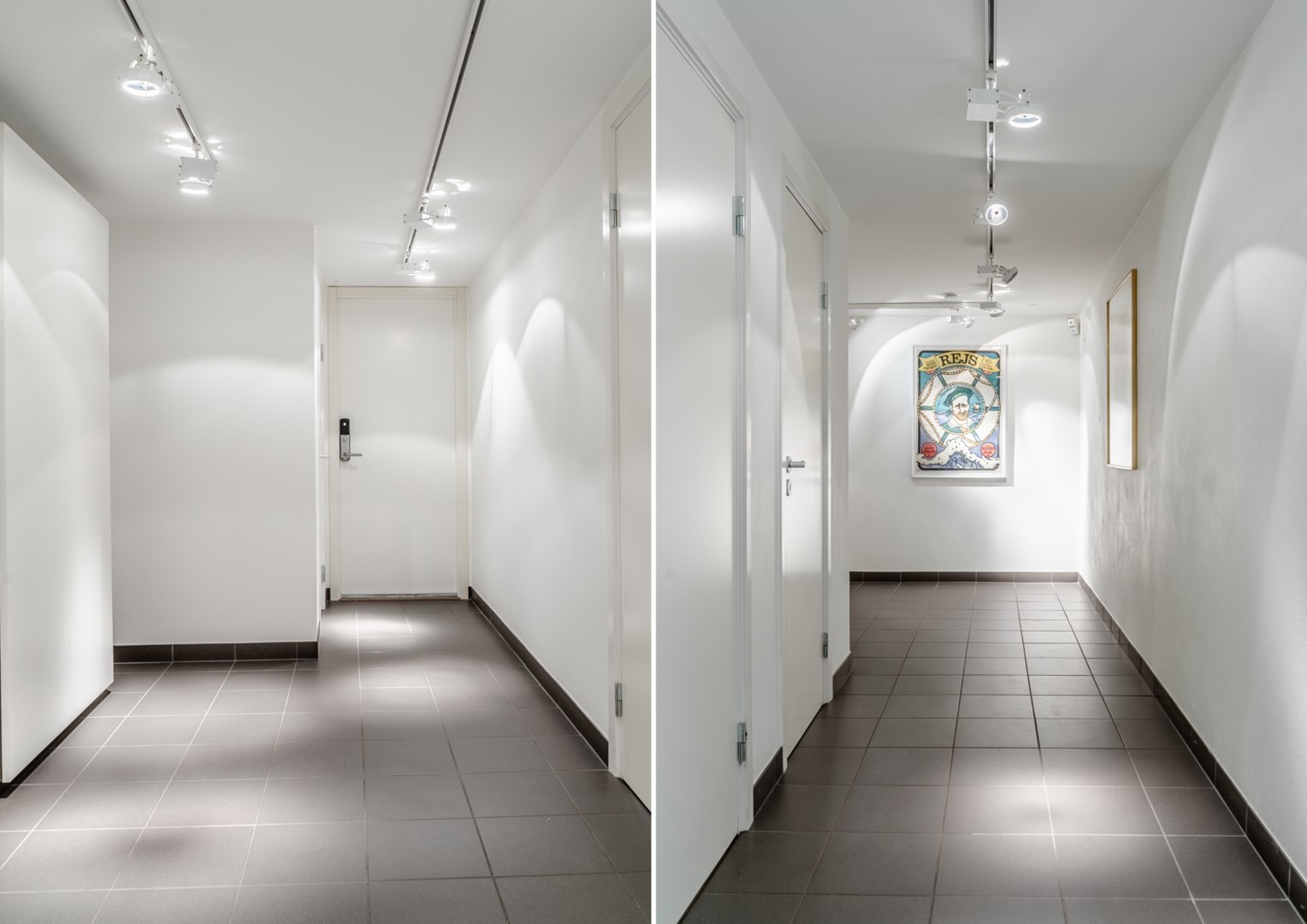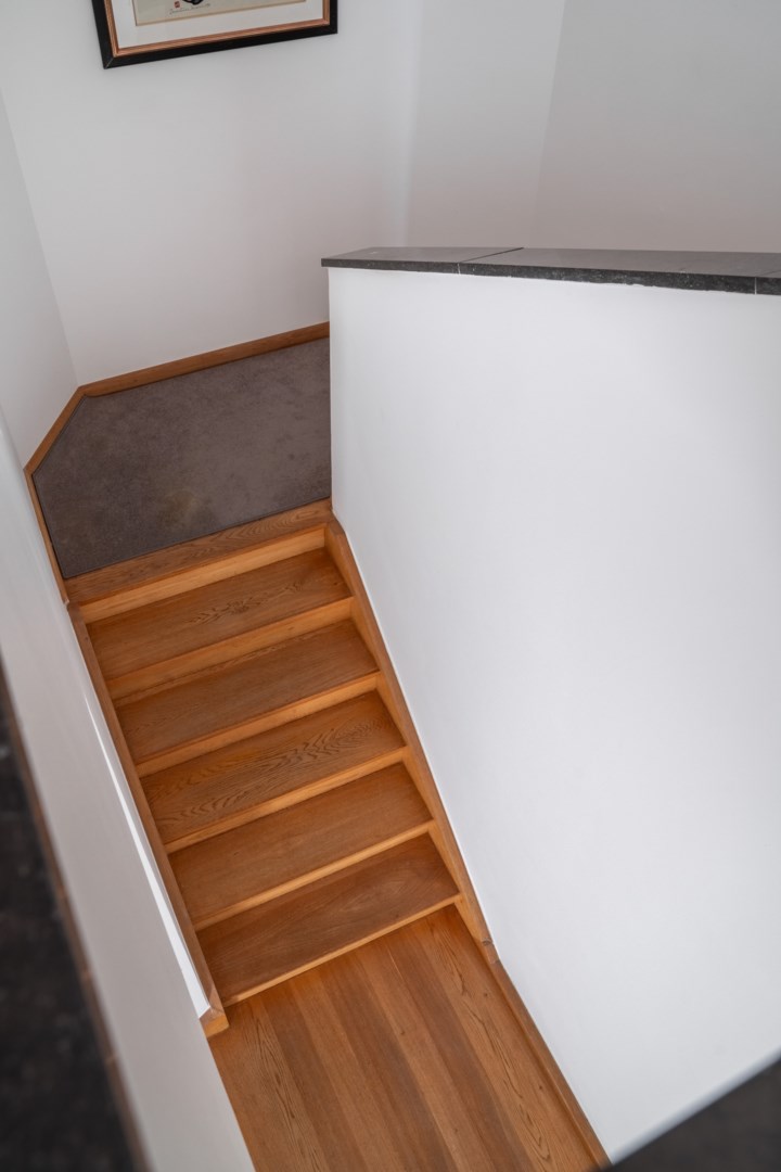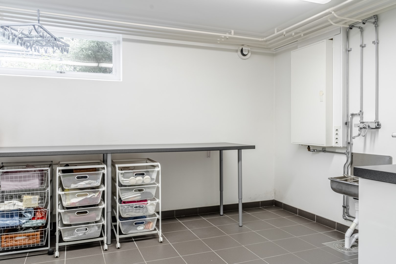 Interiört präglas huset av rejäla materialval och ett planerat flöde mellan vardagsrum och matsal, där stora fönster öppnar upp mot trädgården och den upphöjda terrassen. Bulthaup köket är placerat i direkt anslutning och utformat med en helväggslösning i valnöt med maskinpark från Gaggenau, en strikt, effektiv miljö där yta och linjeföring tillåts dominera. Planlösningen är fördelad i flera nivåer, där sällskapsytor och privata rum skiljs med tydlig struktur. Övre plan rymmer bland annat ett allrum likväl sovrum med utblick mot havet genom skjutdörrsparti och balkong i västerläge. Källarplanet är inrett för aktivitet och funktion, med glasad bastu, dusch, träningsyta med separat entré och vinkällare samt direktaccess till garage.