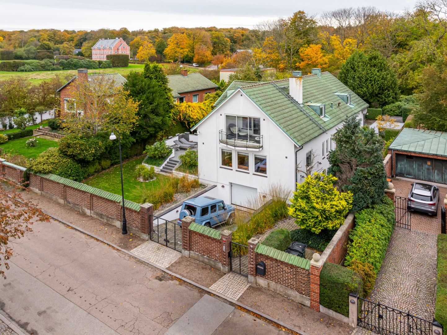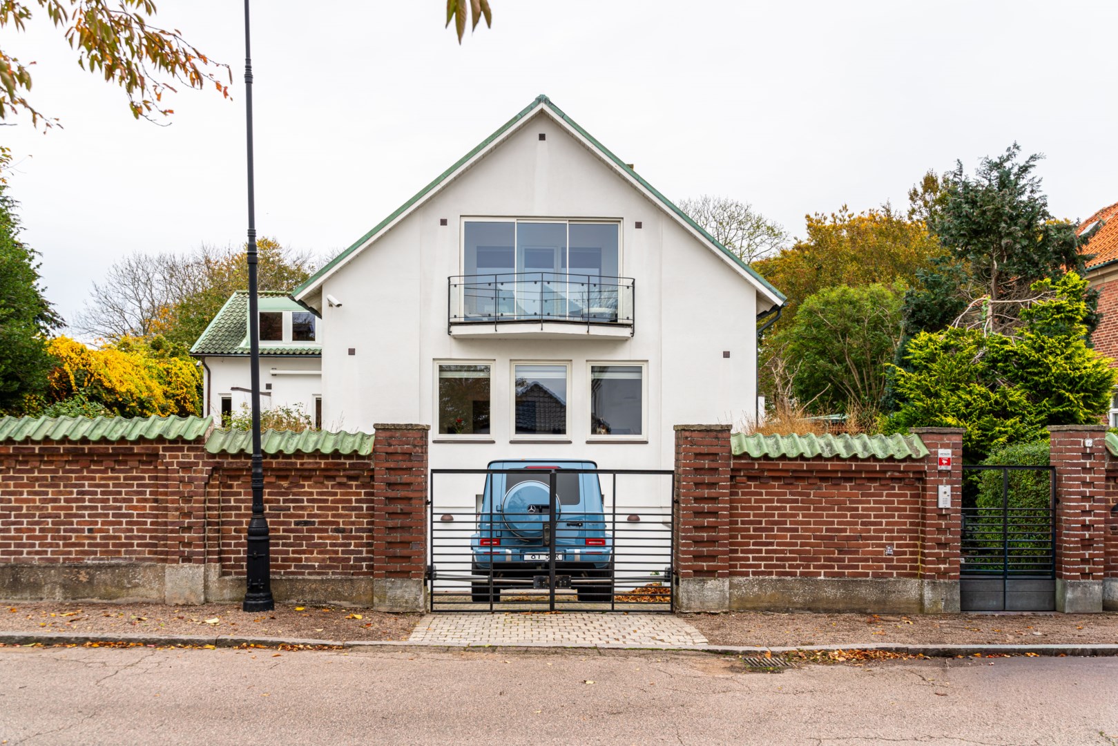 På ett stilla läge strax ovanför havet på en av Helsingborgs exklusivaste adresser, med Landborgspromenaden och Pålsjös grönområden utanför dörren, ligger denna karaktärsfulla villa med trädgård i flera nivåer och utsikt mot Öresund. Fastigheten omges av mur och vintergrön inramning, vilket skapar ett tydligt avskilt uttryck från gatan och en lugn, genomtänkt helhet.