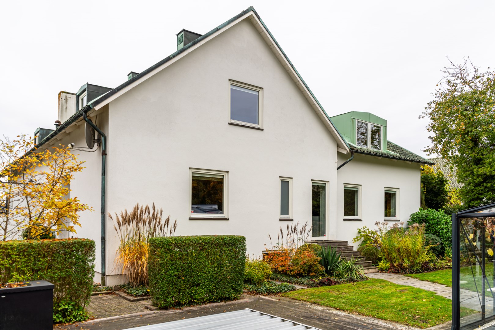 Trädgården är uppvuxen och sammansatt, där nivåskillnader, häckar, murar och planteringar skapar rumslighet snarare än öppenhet. Växthus, pergola, pool och terrasser är integrerade i strukturen, vilket ger trädgården ett tydligt arkitektoniskt uttryck och flera användbara sektioner. Den som söker ett boende med balans mellan stadens närhet, lugn omgivning, utsikt och volym får här ett sammanhang med pondus.