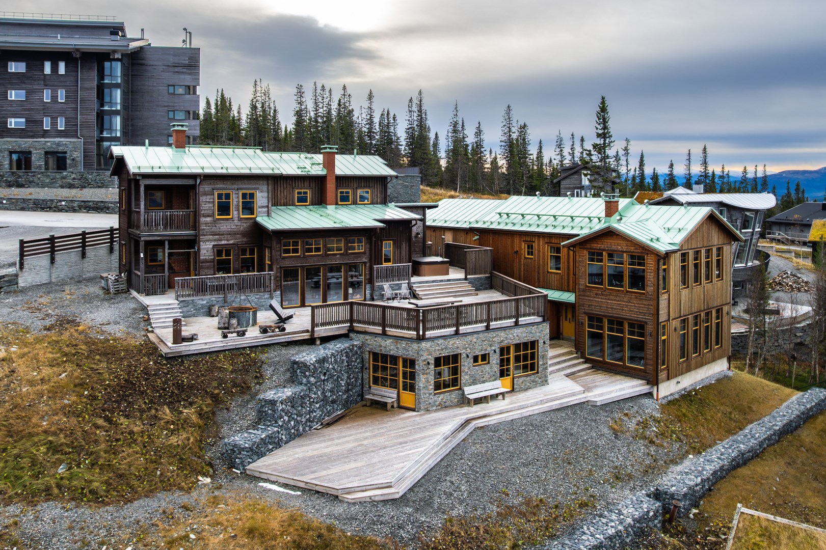 Med bedårande utsikt, granne med Copperhill Mountain Lodge, ligger denna unika ski lodge som kombinerar exklusivitet, funktion och genuin fjällkänsla. Här finns totalt 30 bäddar, ski in/ski out-läge med direkt förbindelse till hela Åres skidsystem, samt omedelbar access till skoterleder. Allt inramas av hänförande vyer över fjällvärlden. Fastigheten är skapad för den aktiva familjen som vill ha gott om plats, många sängplatser och en perfekt balans mellan rustik charm och moderna bekvämligheter. Den består av en huvudbyggnad, ett gästhus med smakfulla skidåkarvåningar samt garage – och utgör ett optimalt fjällboende för dig som vill kombinera eget nyttjande med exklusiv uthyrning. Med sin genomgående fjällkänsla, påkostade materialval och välplanerade disposition imponerar lodgen i varje detalj. Sprakande eldstäder, vidsträckta vyer och generösa ytor skapar ett boende där minnen formas och livskvalitet står i centrum – ett drömhem i hjärtat av Åres fjällvärld.