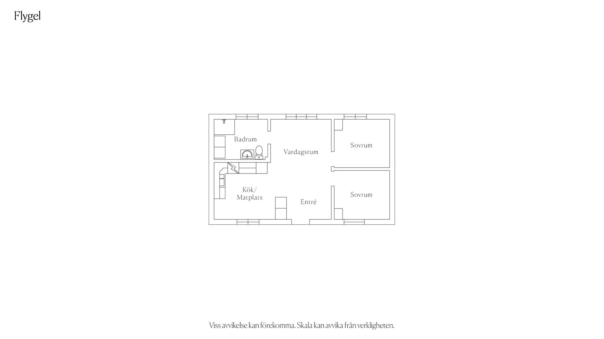 Den charmiga flygelbyggnaden, uppförd 2017, är på 60 kvm och erbjuder många möjligheter. Perfekt som gästhus, generationsboende eller för uthyrning. Inrett med ett välplanerat kök med matplats, ett trivsamt sällskapsrum samt två sovrum och ett fräscht badrum. Flygeln värms upp med luftvärmepump och håller samma höga standard som huvudbyggnaden.