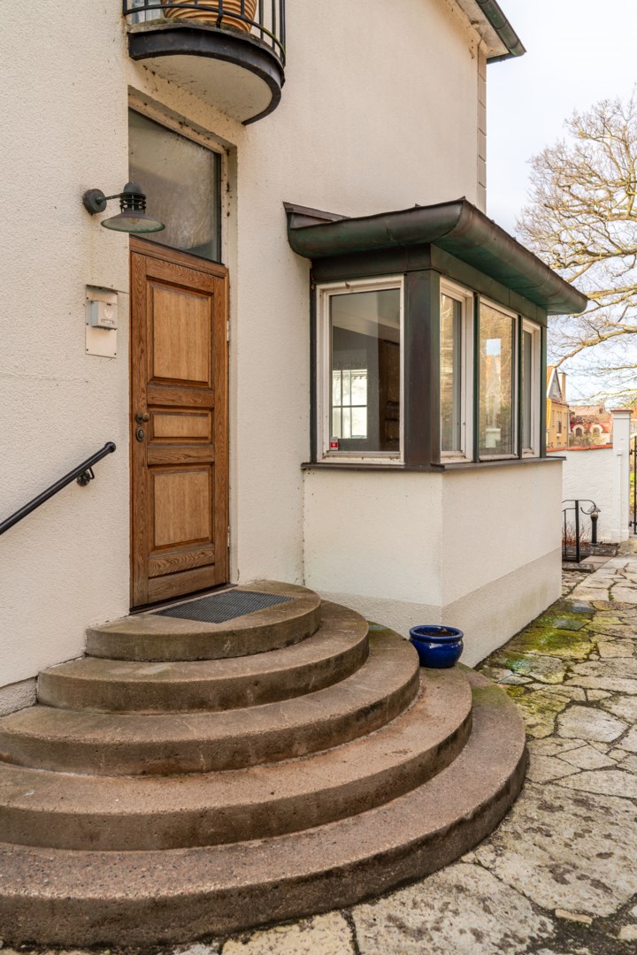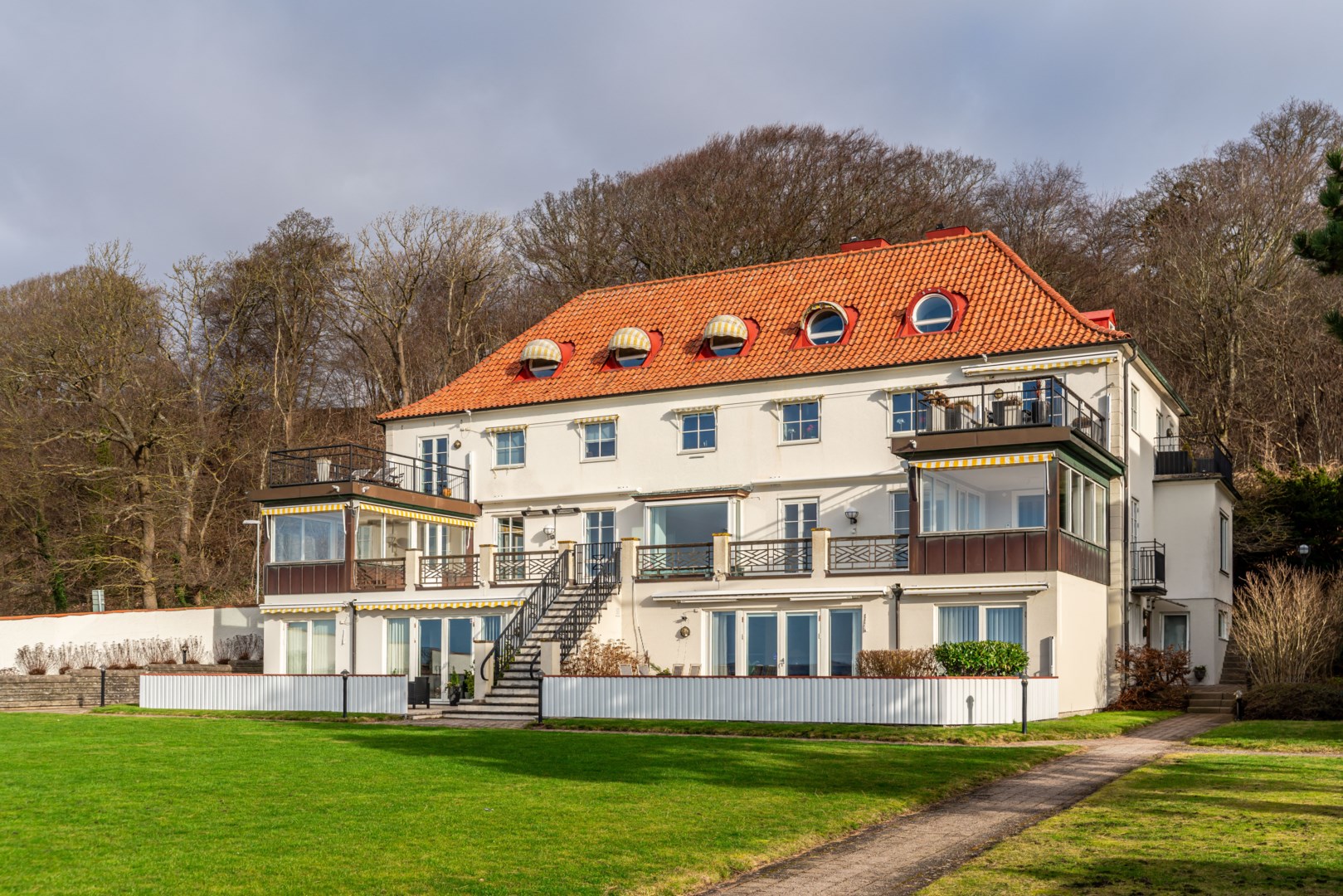 Ursprungligen Villa Ramén, signerad arkitekterna Sigurd Lewerentz och Torsten Stubelius, ritades 1915 och står idag som en ikonisk byggnad med unika detaljer. Våningen har renoverats till yttersta perfektion och förenar historisk prakt med en ständigt närvarande panoramavy över Öresund från våningens generösa terrass.