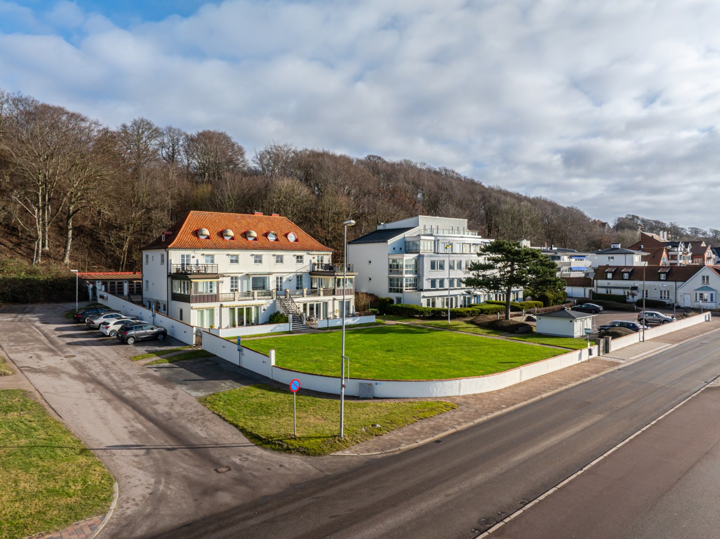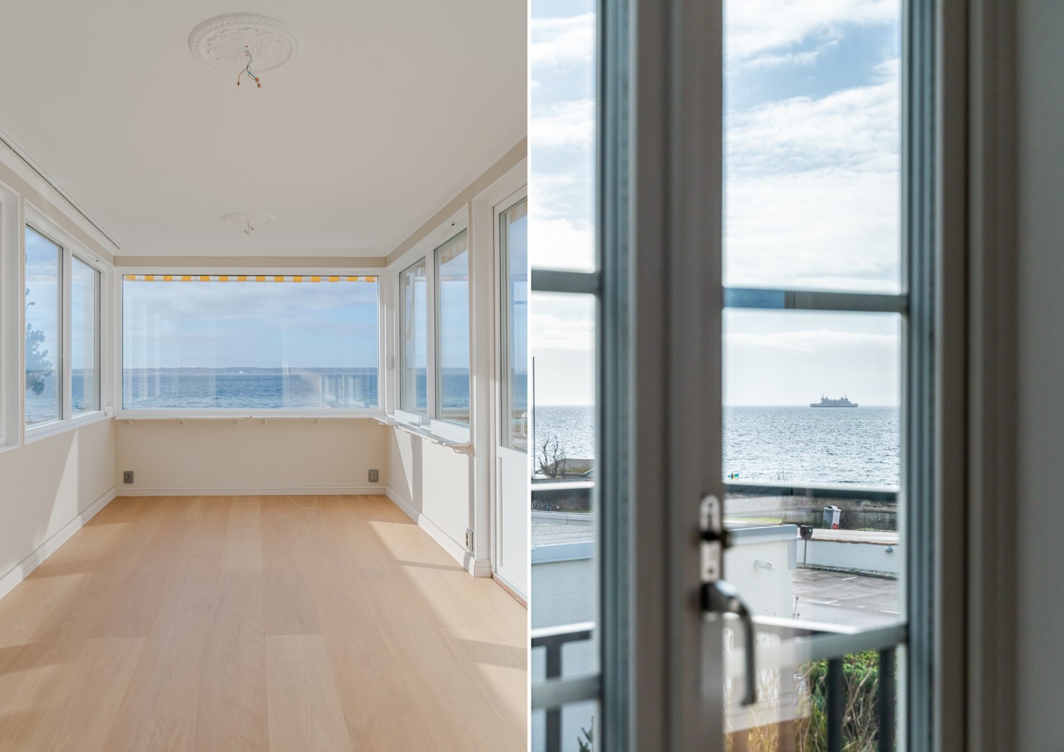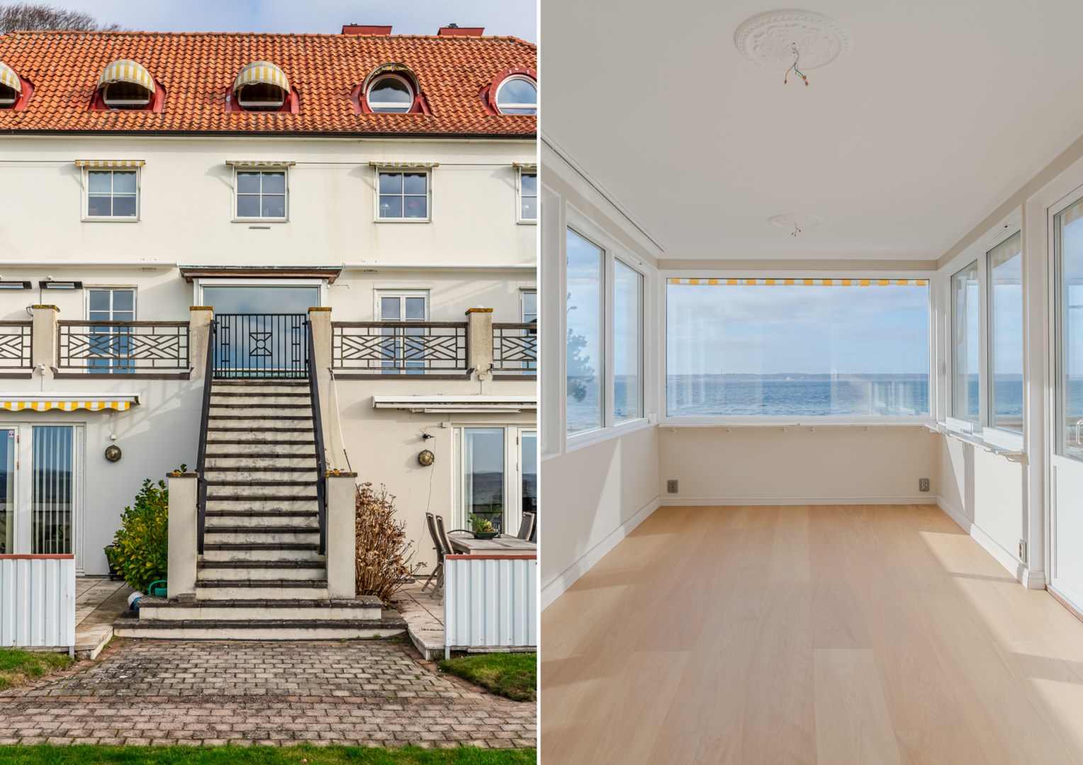 Två inglasade, isolerade verandor med golvvärme skapar ett harmoniskt samspel mellan interiör och exteriör och erbjuder en naturlig plats att ta in den ständigt närvarande utsikten över Öresund och vidare mot Danmark. Från våningens södra veranda har man direkt access till salongen eller terrassen, medan den andra verandan nås från matsalsköket, vilket förstärker våningens unika planlösning. Det är dock den generösa terrassen som utgör bostadens absoluta kronjuvel, en plats där havet blir en förlängning av hemmet och där Helsingborgs mest spektakulära vyer ramar in en tillvaro utöver det vanliga. Två parkeringsplatser, inkluderade i avgiften, säkerställer smidig tillgång till bostaden, medan ett tillhörande förråd och cykelförråd erbjuder praktiska förvaringslösningar.