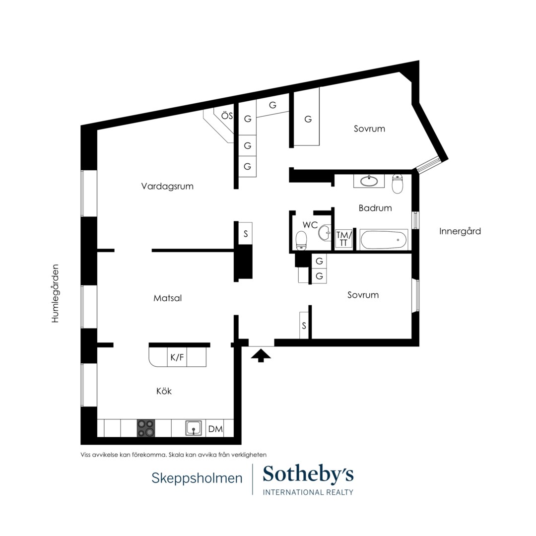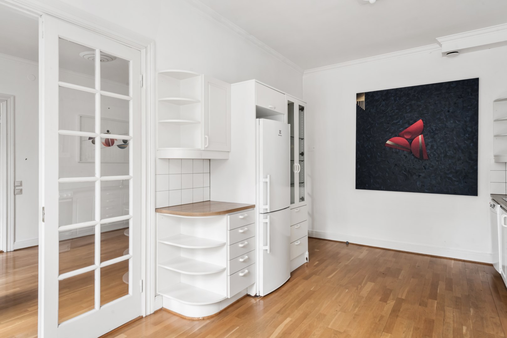 Våningen erbjuder en välplanerad planlösning med generösa sällskapsytor och två sovrum mot lugn innergård. Kök, matsal och sällskapsrum i fil med utsikt mot parken. Sällskapsrummet har en bra och lättmöblerad storlek. Mellan vardagsrum och kök ligger en naturlig matsalsdel. Rymligt badrum samt Gäst WC.