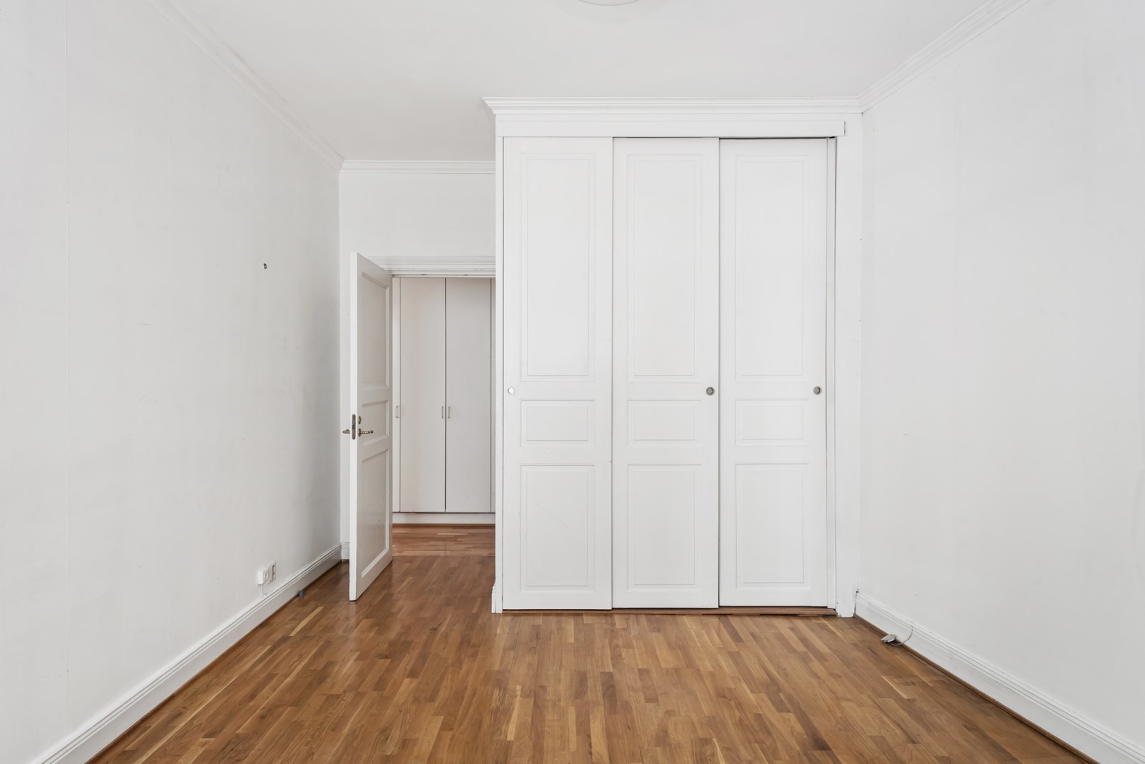 Med attraktivt läge infinner sig denna ljusa och trivsamma våning med fri utsikt. Tre ljusa rum i fil mot Humlegården med genomgående högt i tak och klassiska detaljer. Mycket bra planlösning med två ordentliga sovrum med läge mot lugn innergård. Rymligt badrum samt Gäst WC.
