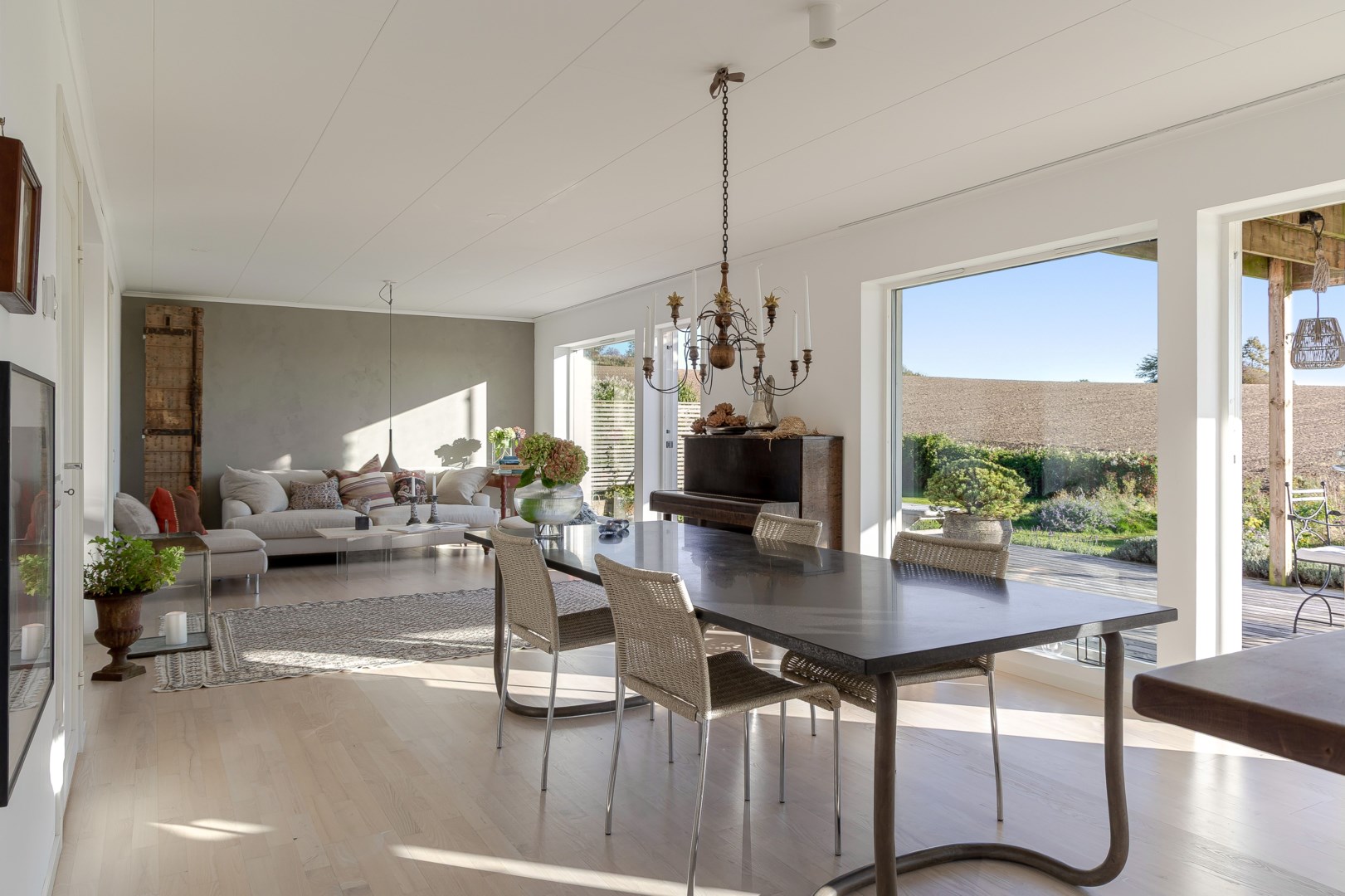 Med ostört och insynsskyddat läge och med utsikt över böljande fält med havet och Kullaberg i fonden, ligger denna trivsamma villa. Fastigheten är belägen på lugn återvändsgata i barnvänligt område i Västra Karup. Bostaden från 2013 är byggd i modern stil med trevliga materialval, sociala öppna ytor och stora glaspartier med flera utgångar till den härliga trädgården i soligt söderläge.