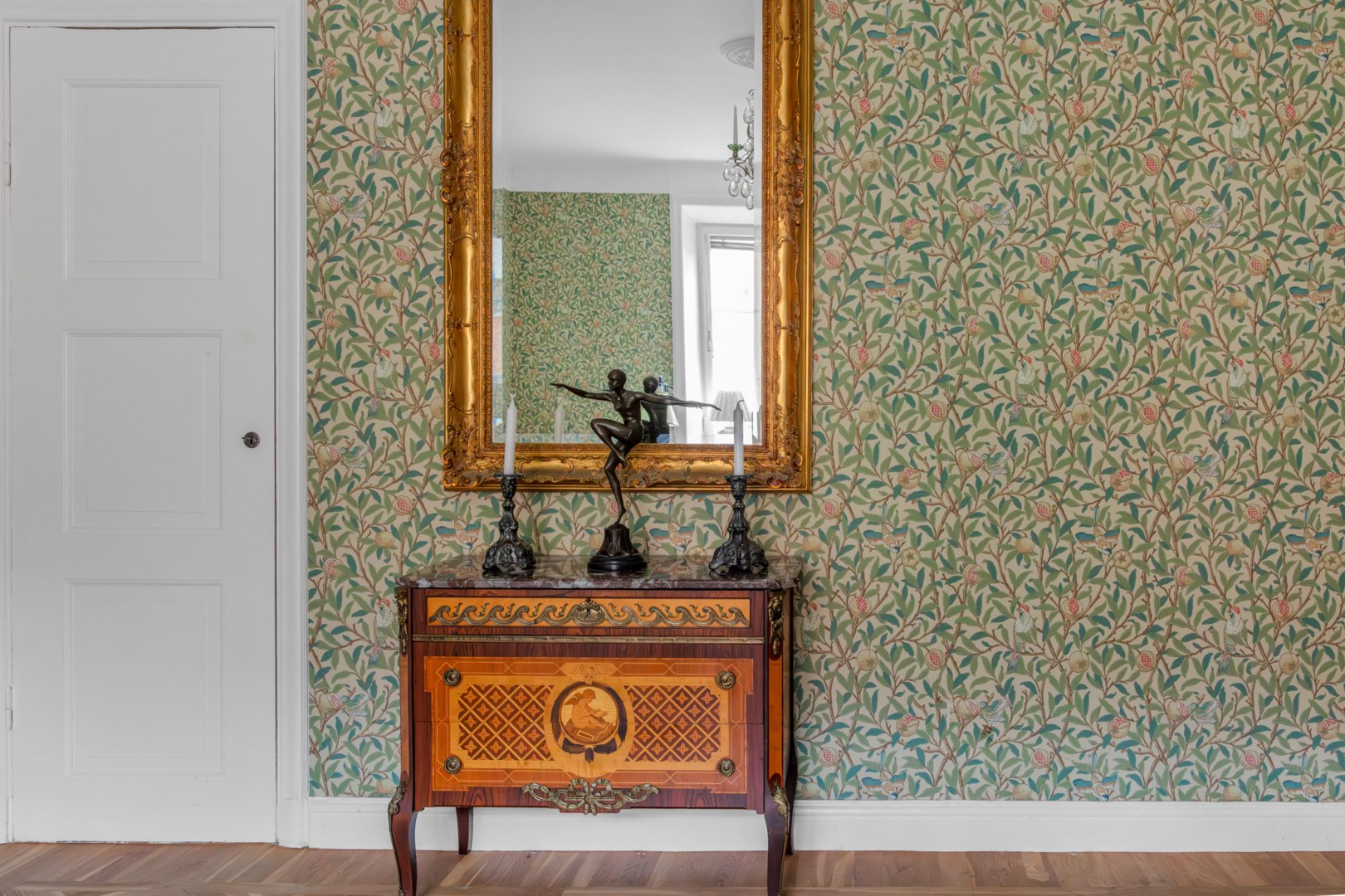 Lägenheten har mängder av tidstypiska detaljer från byggåret som tillsammans med en varsam renovering resulterat i ett hem utöver det vanliga. Den nuvarande planlösningen består av ett sällskapsrum, två stora sovrum, ett tidstypiskt kök, badrum samt gäst-wc. Hela lägenheten präglas av färg och fantastiska tapeter som lyfter humöret även under mörka vinterdagar! Ett varmt och trivsamt hem med allt det bästa av Vasastan utanför porten.