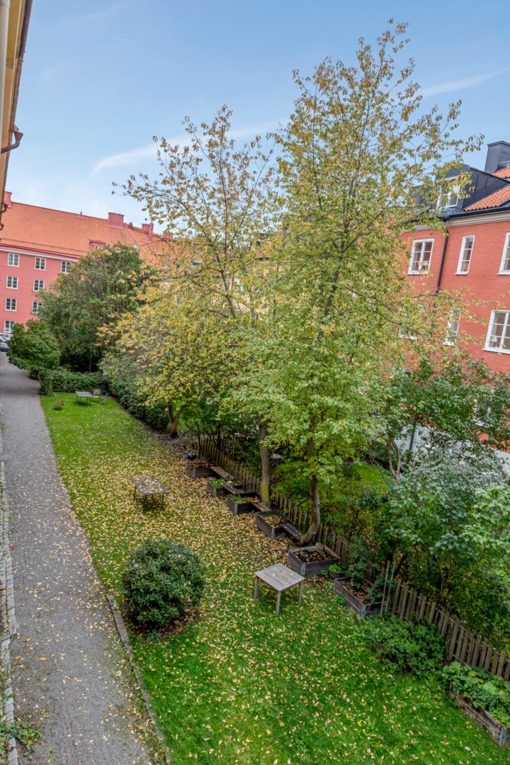 I hjärtat av Röda bergens charmiga kulturkvarter ligger denna 3:a som flödar i ljus tack vare sin genomgående planlösning med fönster mot lugna Rödabergsgatan och den grönskande innergården.
