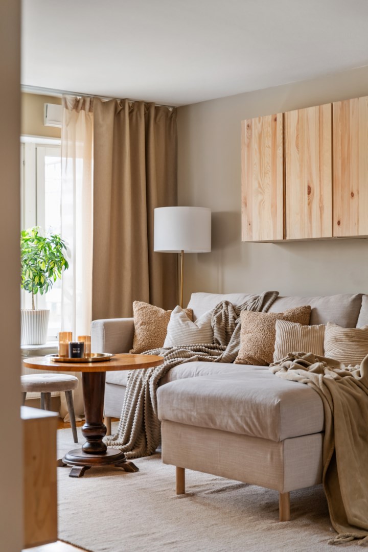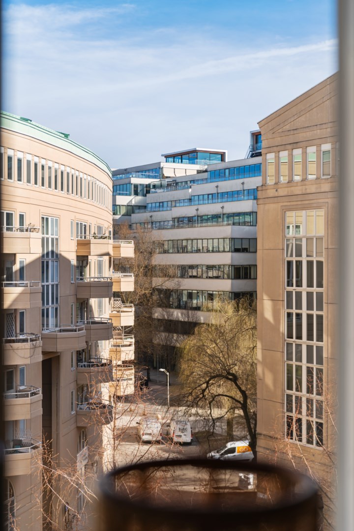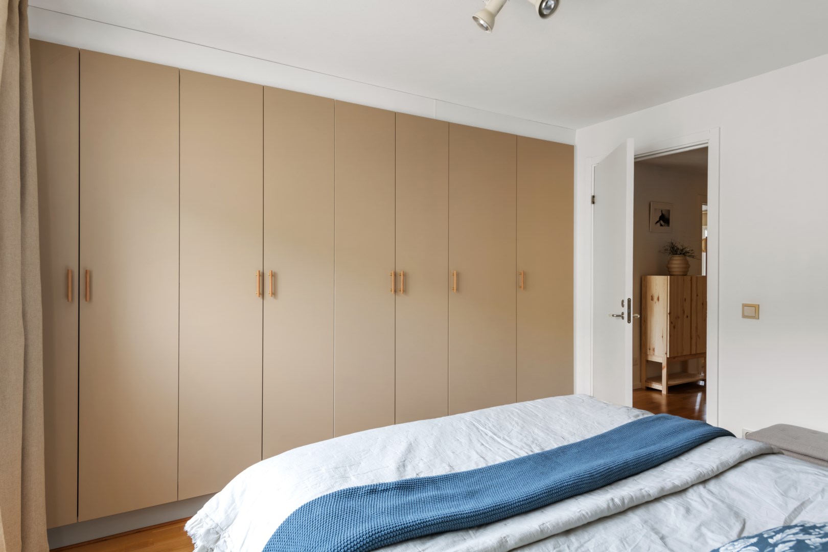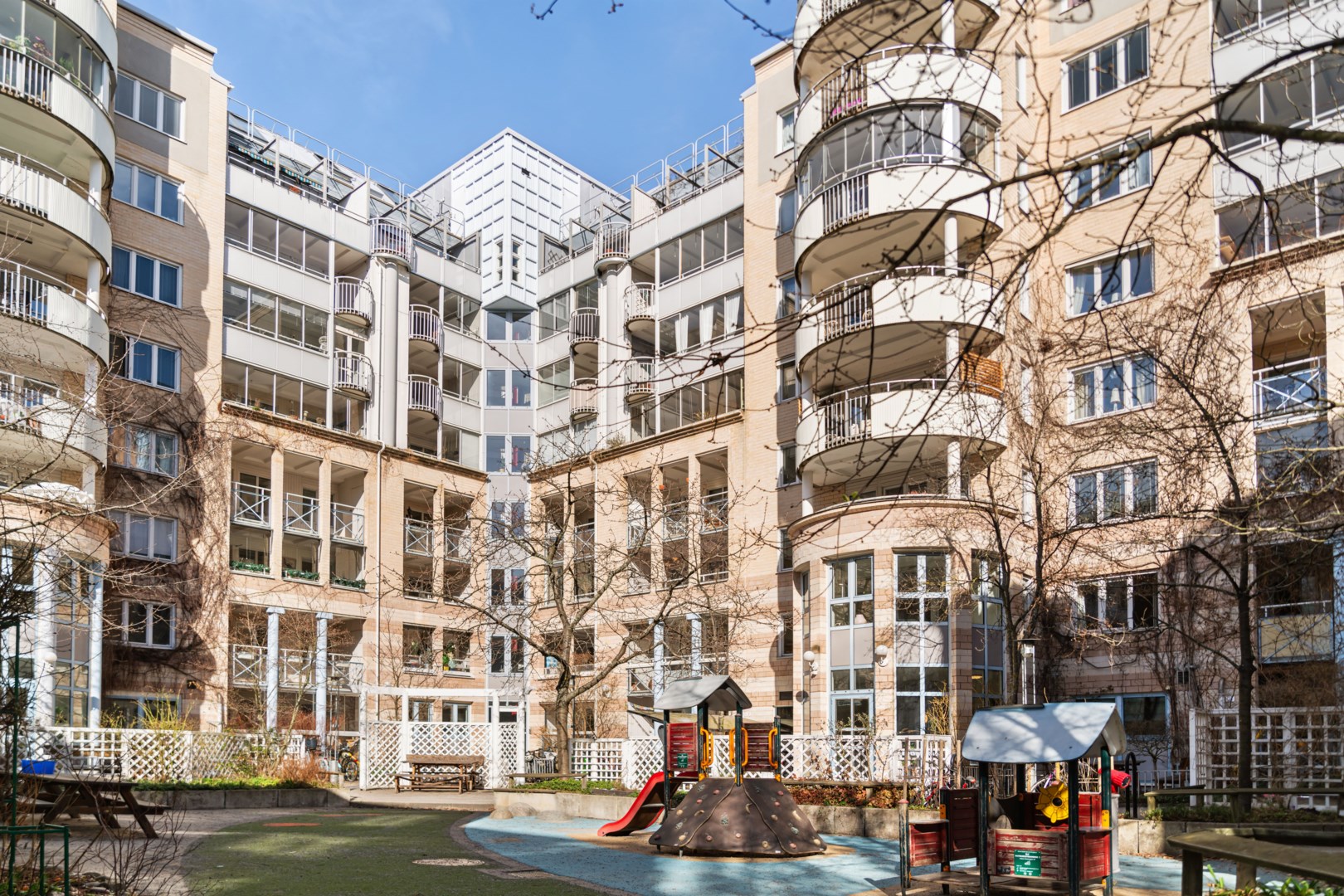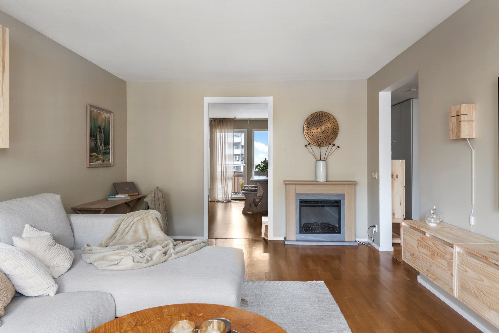 Ljus hall med garderober och anslutande stor klädkammare öppnar upp hela lägenheten. Rymligt och lättmöblerat vardagsrum med välvd hel fönstervägg samt gott om plats för stor soffgrupp, bokhyllor, mediamöbel och annat önskvärt möblemang. Intill ett rofyllt sovrum med hel garderobsvägg. Mot den vackra gården stort och härligt kök med plats för rejält matbord. Från köket utgång till ljuvlig balkong i fritt västerläge där den väl tilltagna ytan möjliggör möblering med soffa, bord, solstolar och växtlighet. Balkongen är delvis inglasad där fönsterparti kan skjutas åt sidan. Ifrån hallen ett stort badrum med dusch och tvättmaskin/torktumlare.