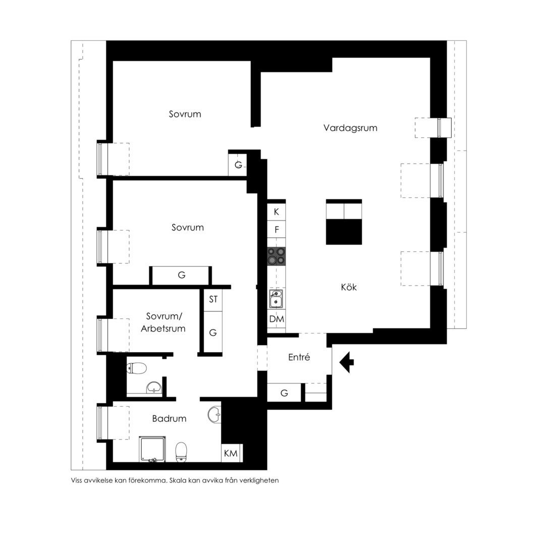 Två sovrum med förvaring och separat rymlig walk-in-closet. Klädkammaren kan disponeras som arbetsrum.