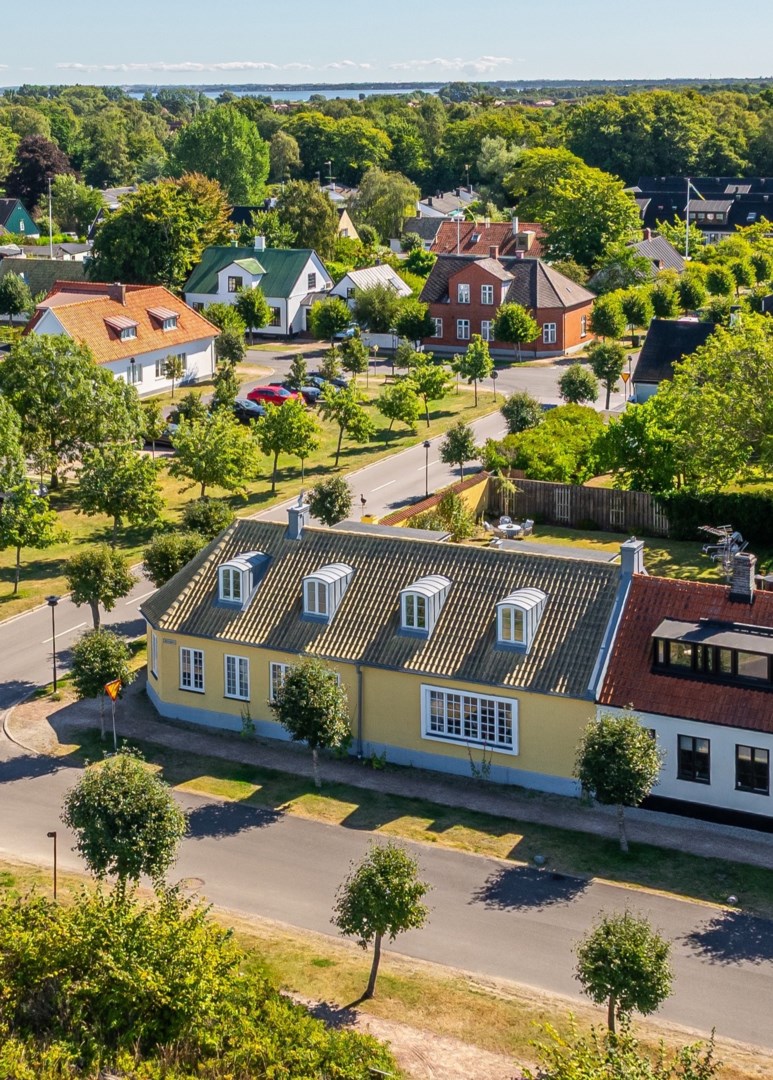 Den kringbyggda gården erbjuder en privat och insynsskyddad oas. Här finns plats för både långa sommarkvällar och stora middagar under bar himmel. Tomten ramas in av putsade murar och grönska, och från trädgården når man enkelt vidare till byns charmiga gator och havet på bara några steg. Fria parkeringsplatser runtomkring finns det gott om, utöver garaget. Gamla Skanör är ett av Näsets allra mest eftertraktade och exklusiva områden, känt för sina pittoreska gator, historiska byggnader, småbåtshamn med rikt utbud av restauranger och caféer, kallbadhus med bastu, vidsträckta sandstränder och sandrev, färgglada badhytter, stadspark, kyrka och ett levande torg med stort utbud. Här bor man med lugnet, naturen och havet runt hörnet, men ändå med närhet till – och utsikt över – Öresundsbron, Köpenhamn och Malmö.