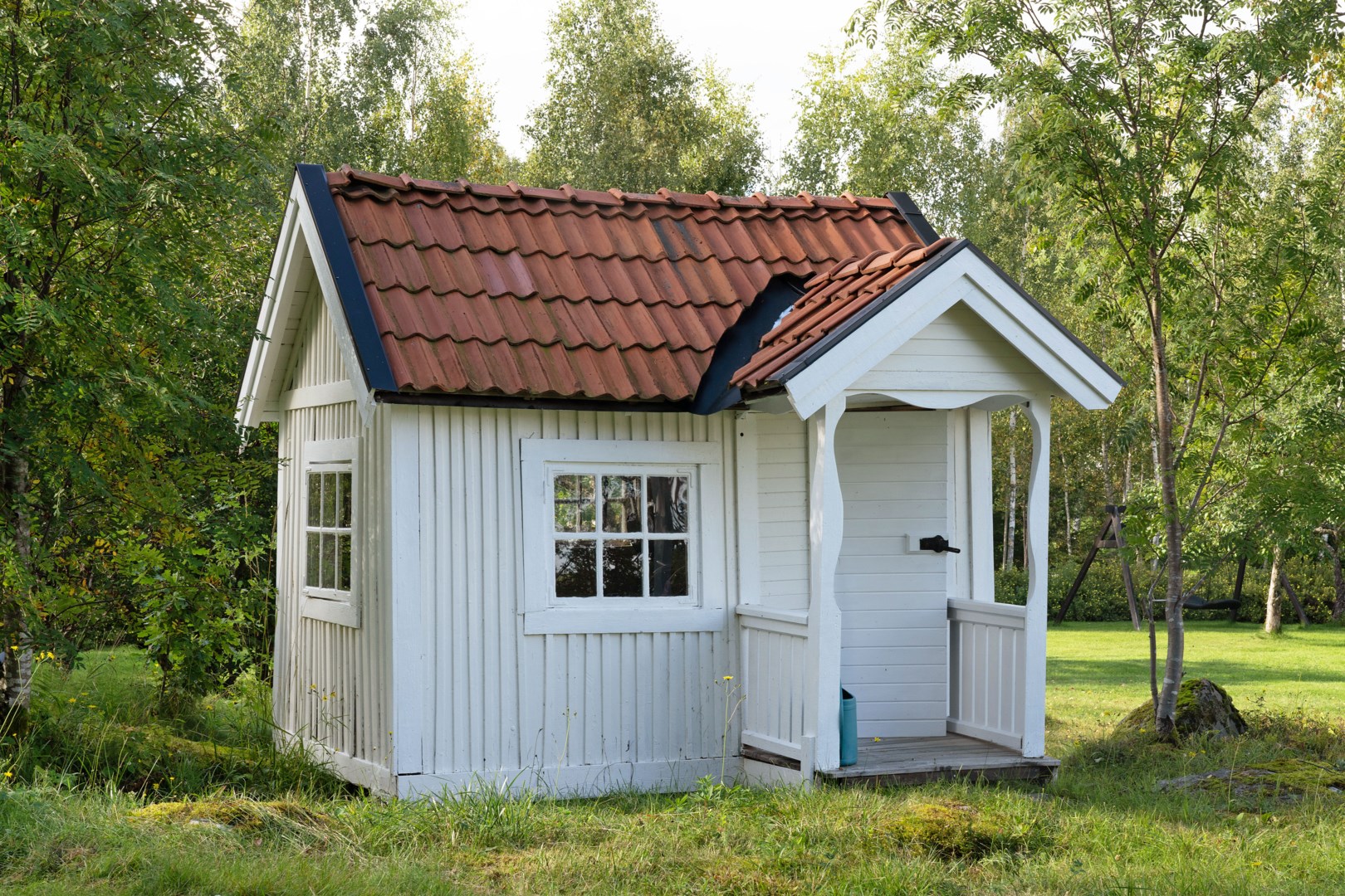 På tomten finns även en liten lekstuga samt två förrådsbyggnader som liksom stora huset och carporten målades om 2024.