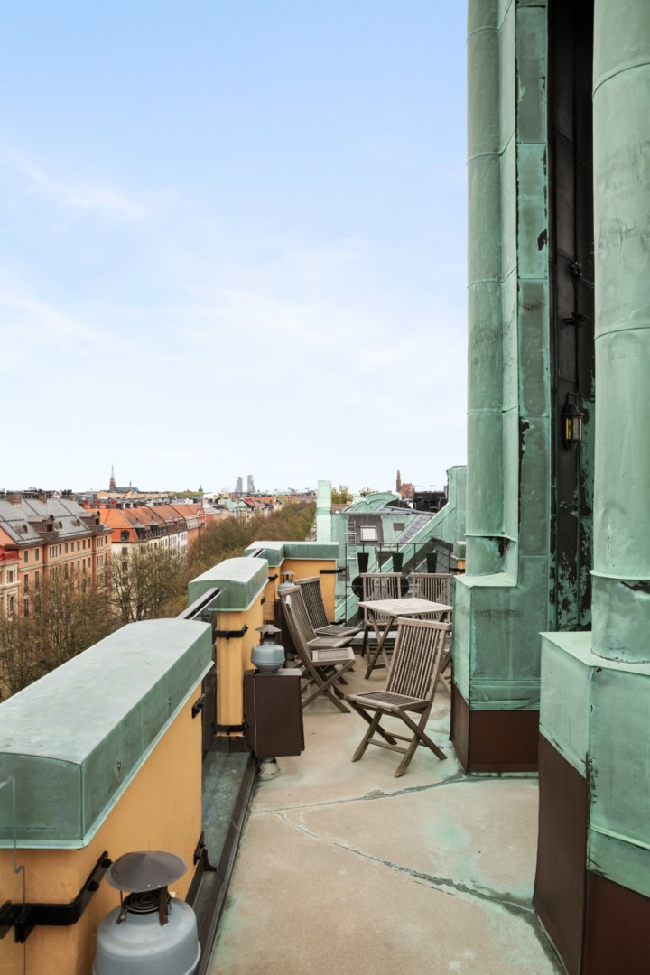 Föreningens medlemmar har tillgång till en underbar takterrass med vidsträckt utsikt över Stockholm.
