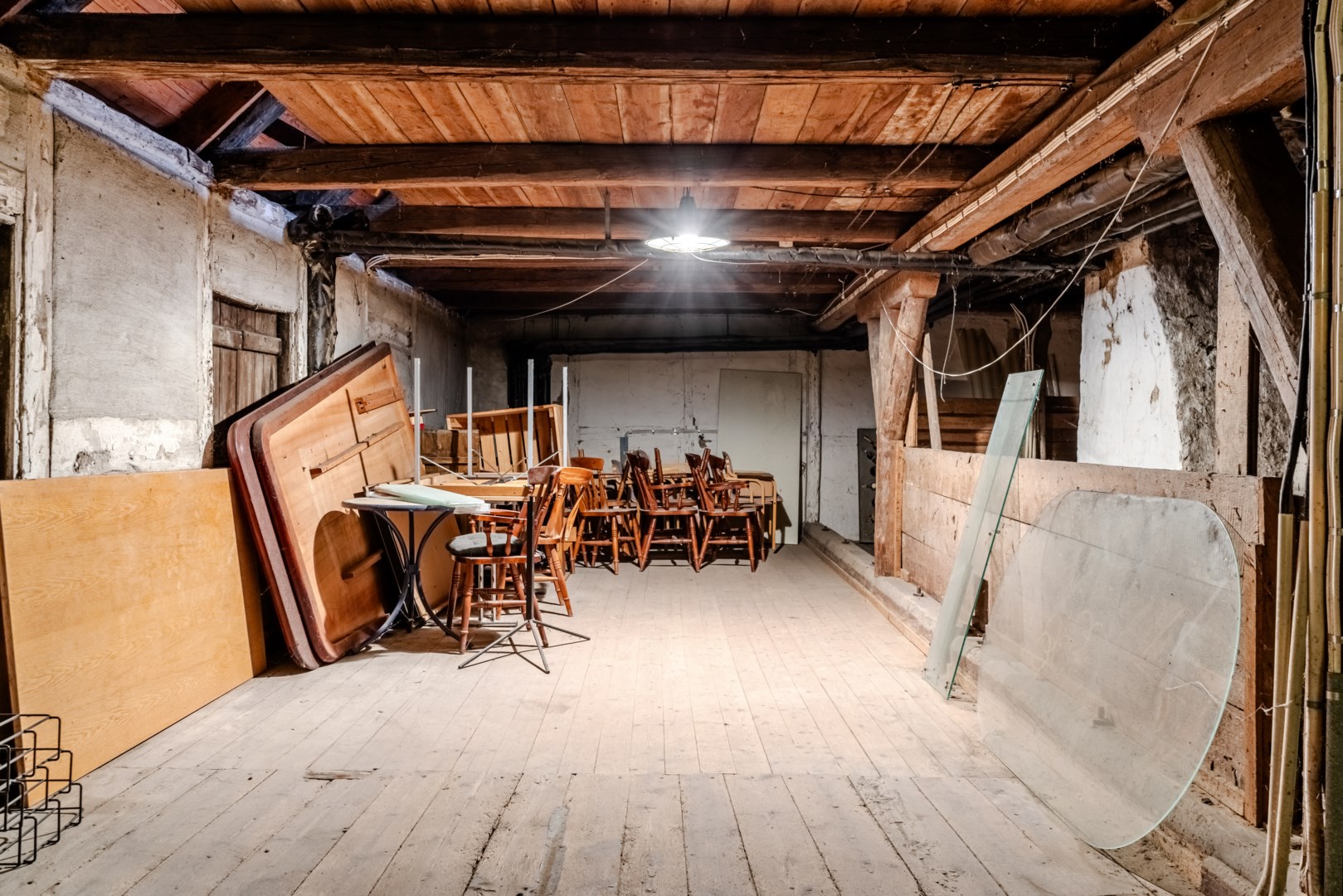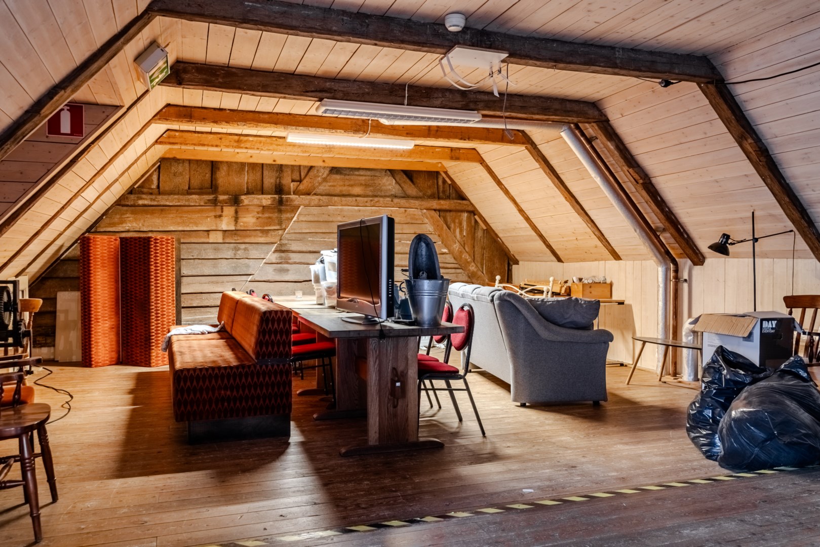 I östra längan finns stora ytor rå-vind i två plan och en total golvyta om ca XX kvm. Här ligger även en mindre lägenhet i mitten av entréplanet med kitchenette och WC/dusch.