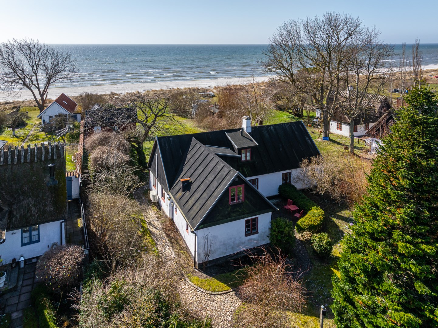 Längst ner vid havet, utmed Löjtnant Flinths väg i Böste, ligger detta drömboende med egen tomt som sträcker sig hela vägen ner till den vidsträckta sandstranden. Böste fiskeläge byggdes till stor del upp under 1800-talet och är ett av de mest välbevarade lägena utmed Skånes kust. Underbart boende för året-runt-bruk eller som komplement till andra bostäder för avkoppling och härliga dagar vid havet. Huvudbostad, gästhus och flera uteplatser – havet och stranden ständigt närvarande.