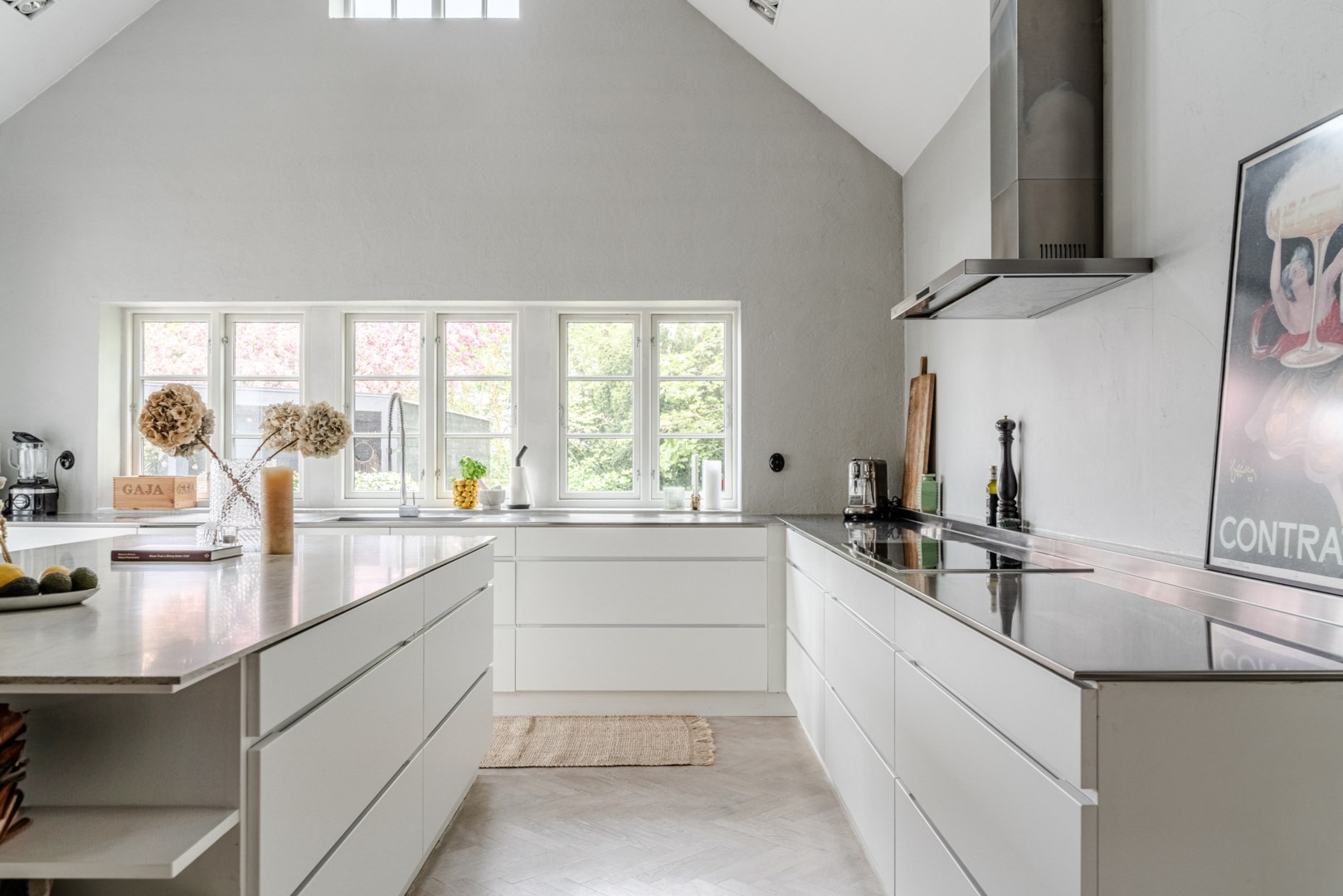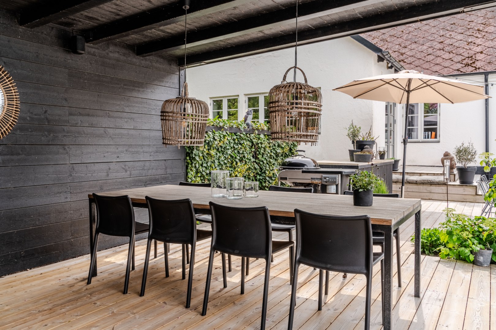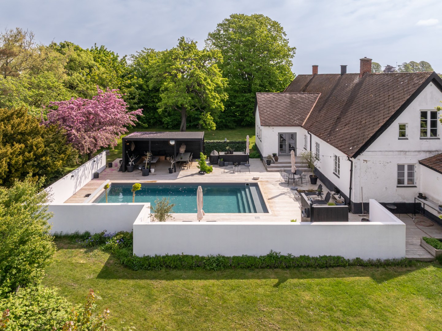 Entrén välkomnar in i bostaden med direkt tillgång till kök och två stor sällskapsrum i fil. Köket har en fin rymd med stora ytor och dubbel takhöjd upp till nock. Köket byggdes 2013 och har stommar från Kvik som utgör bl. a. köksö och högskåp med inbyggd kyl och frys m.m. Från köket nås också poolområdet med utekök och flera möblemang. Vidare i huset ligger matsal och allrum i fil. Båda är försedda med murstock och vars sin eldstad som delar av de sociala ytorna. I husets motsatta sida ligger separat, mera privat avdelning med master bedroom, stor klädkammare och badrum samt rum för hemmakontor. På planet finns också tvättrum med egen ingång och gwc. En trappa upp finns tv-rum och tre sovrum samt badrum med dusch. Gott om förvaring i form av flera klädkammare. Privatbostadens utemiljö utgörs främst av det härliga poolområdet. Pool om 5x10m med trappa utmed hela kortsidan och dusch i närheten. Praktiskt utekök med vatten och intill ligger taköverbyggd uteplats. Perfekt plats att uppleva fantastiska solnedgångar över fälten i väst.