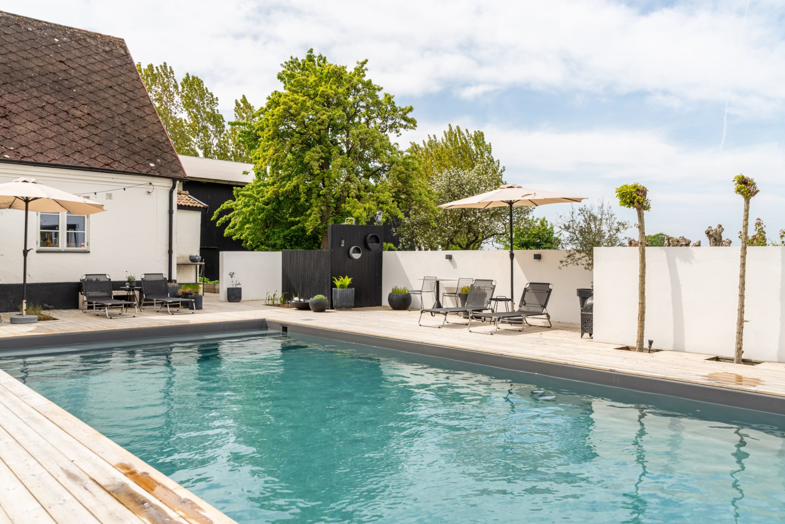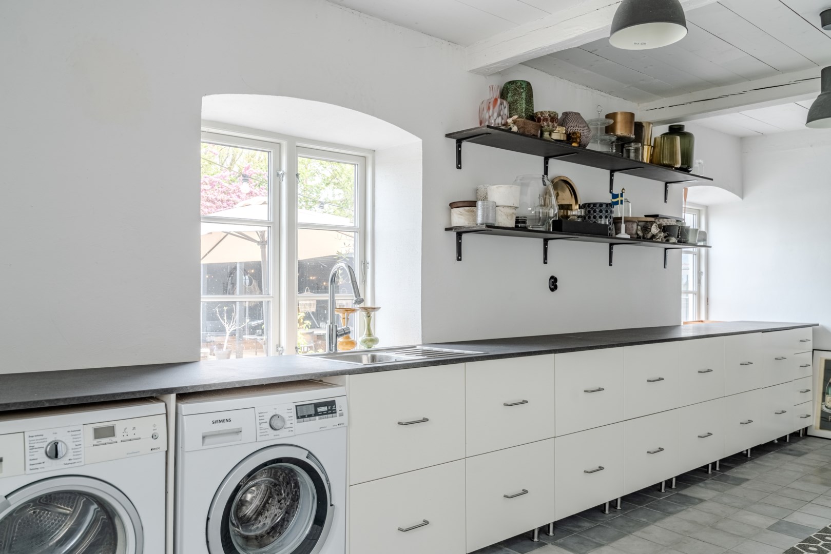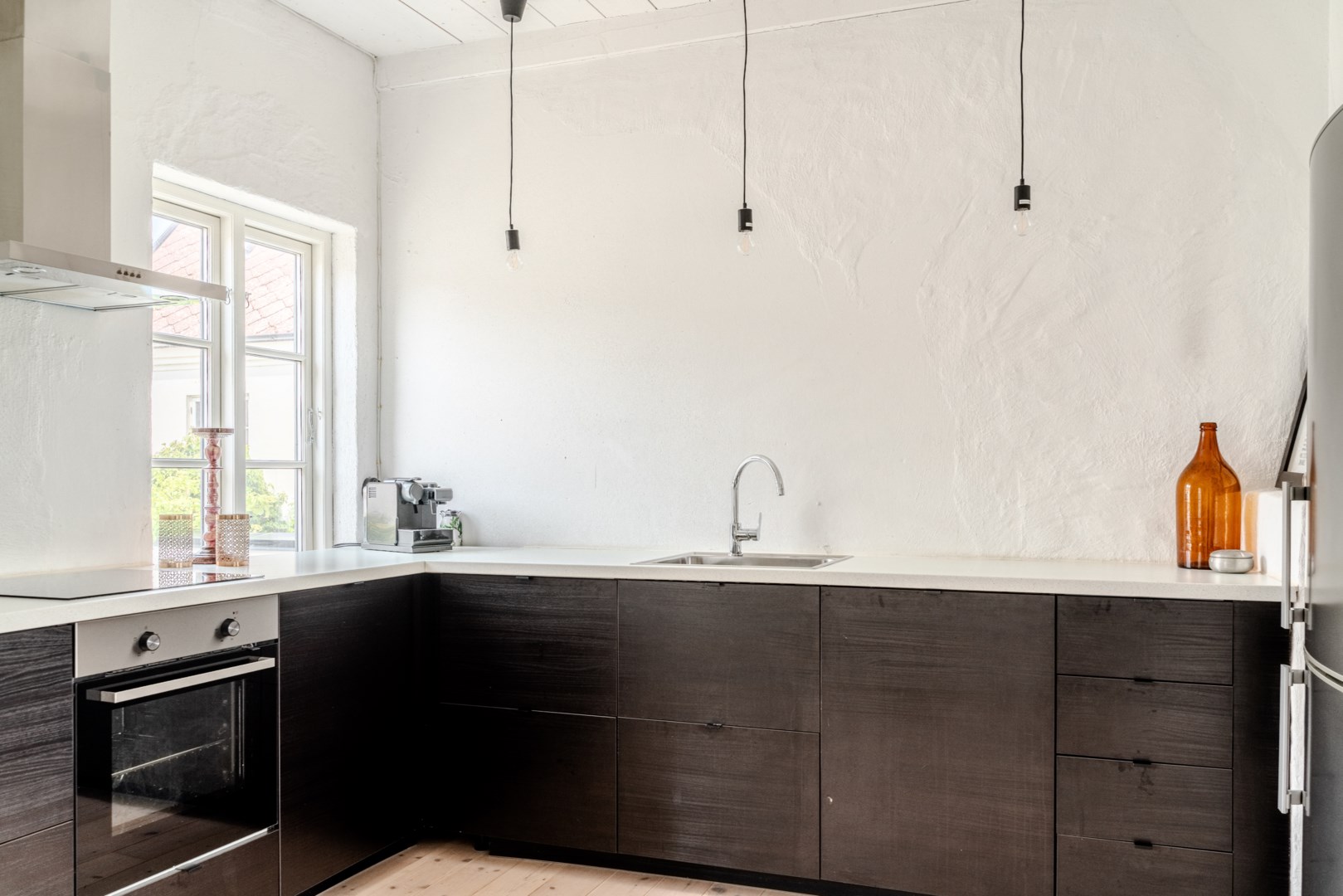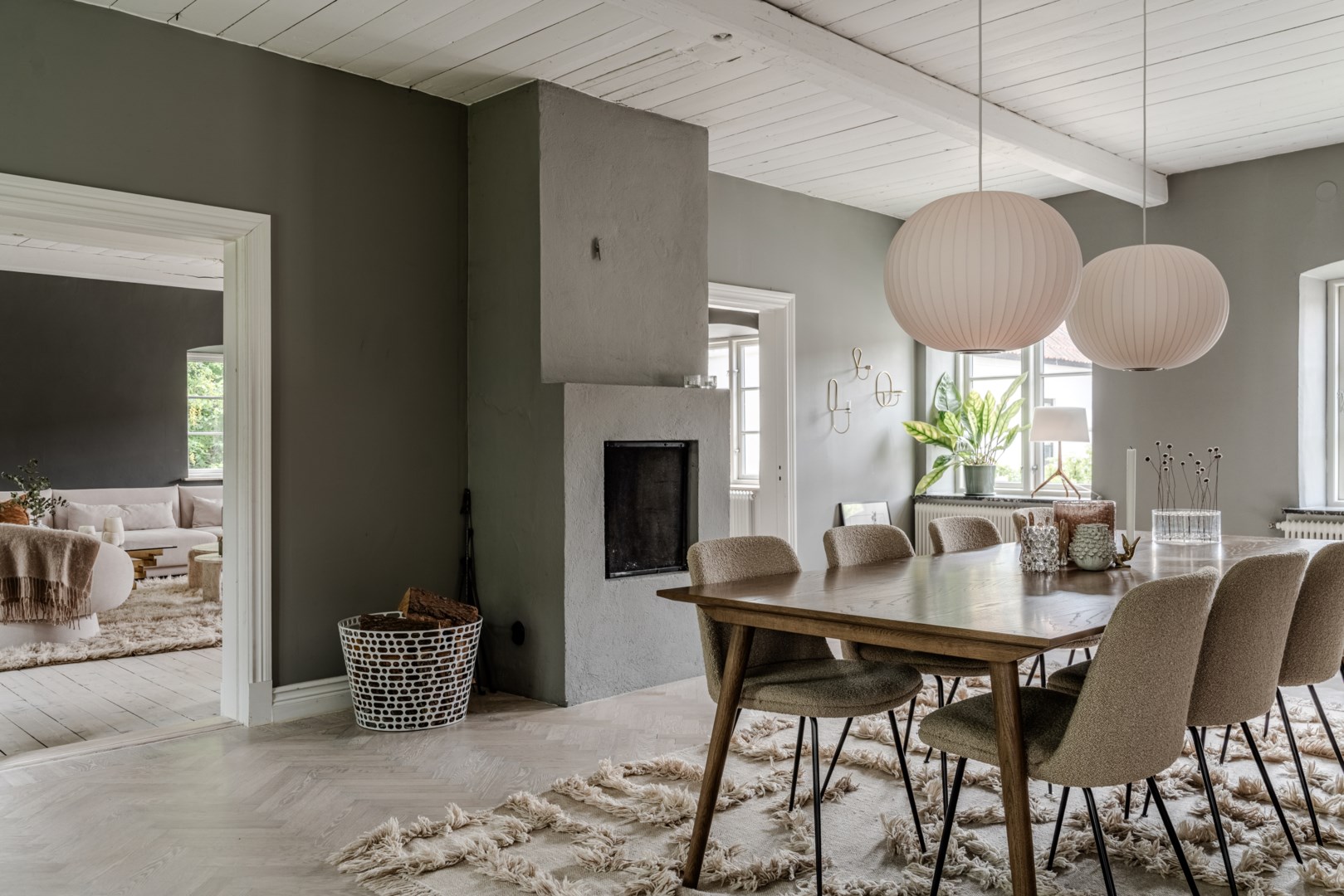 Entrén välkomnar in i bostaden med direkt tillgång till kök och två stor sällskapsrum i fil. Köket har en fin rymd med stora ytor och dubbel takhöjd upp till nock. Köket byggdes 2013 och har stommar från Kvik som utgör bl. a. köksö och högskåp med inbyggd kyl och frys m.m. Från köket nås också poolområdet med utekök och flera möblemang. Vidare i huset ligger matsal och allrum i fil. Båda är försedda med murstock och vars sin eldstad som delar av de sociala ytorna. I husets motsatta sida ligger separat, mera privat avdelning med master bedroom, stor klädkammare och badrum samt rum för hemmakontor. På planet finns också tvättrum med egen ingång och gwc. En trappa upp finns tv-rum och tre sovrum samt badrum med dusch. Gott om förvaring i form av flera klädkammare. Privatbostadens utemiljö utgörs främst av det härliga poolområdet. Pool om 5x10m med trappa utmed hela kortsidan och dusch i närheten. Praktiskt utekök med vatten och intill ligger taköverbyggd uteplats. Perfekt plats att uppleva fantastiska solnedgångar över fälten i väst.
