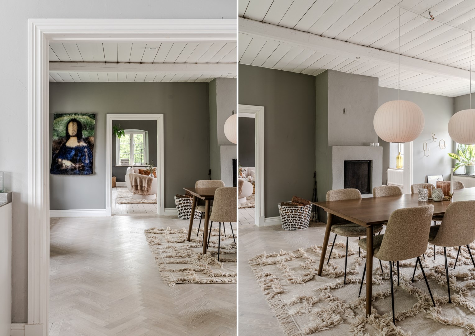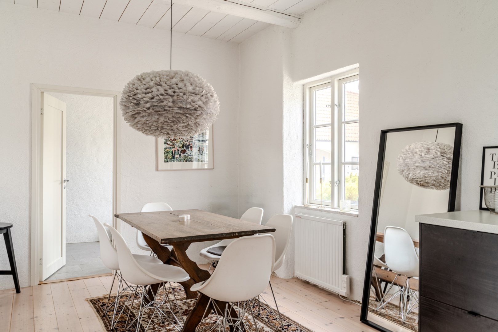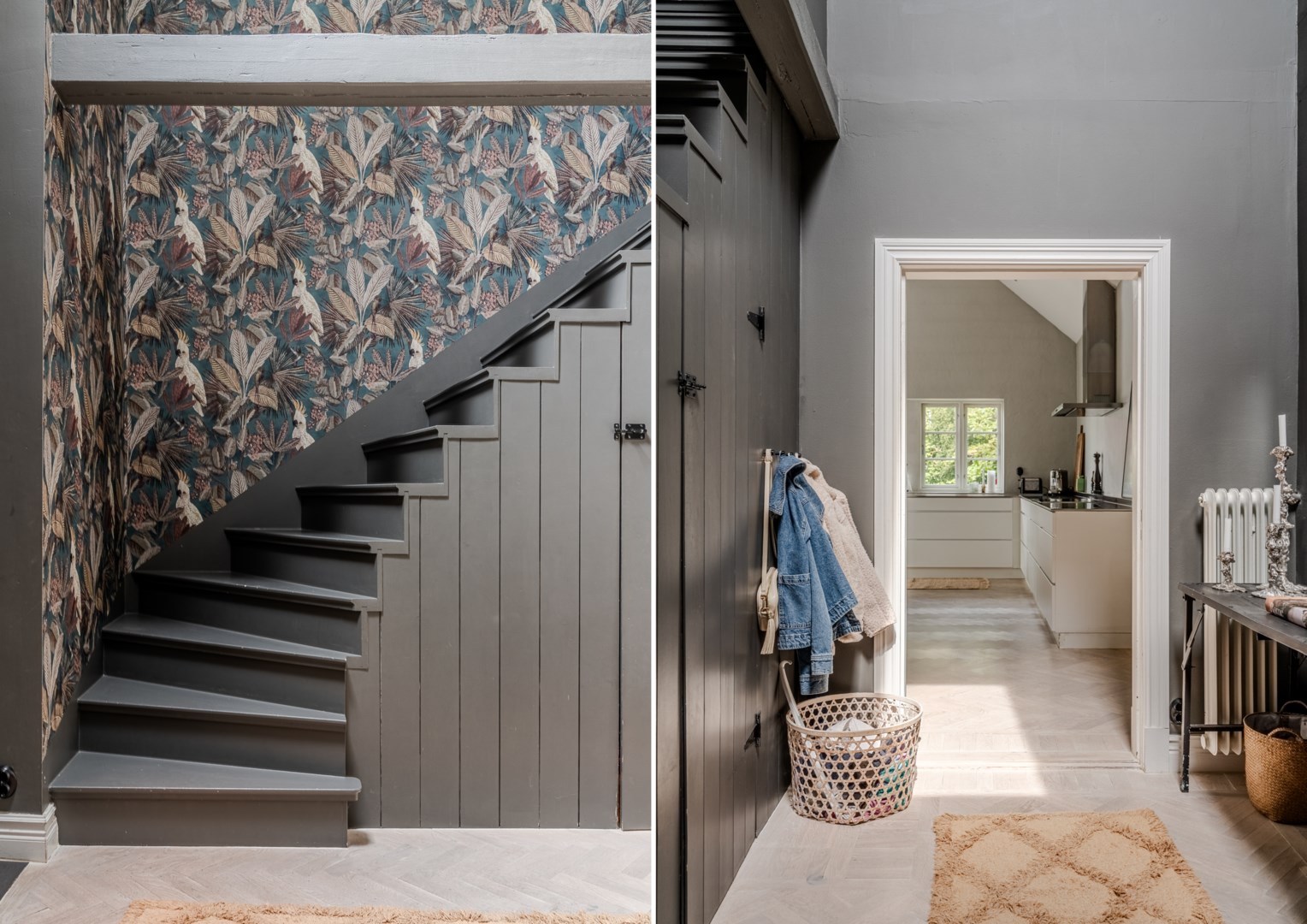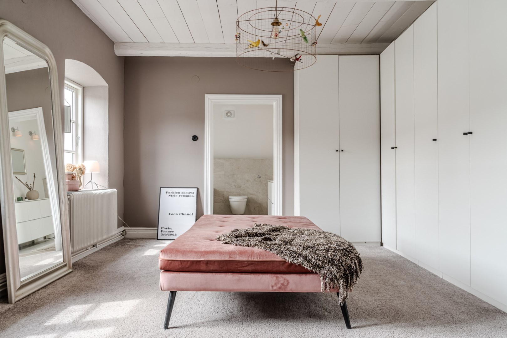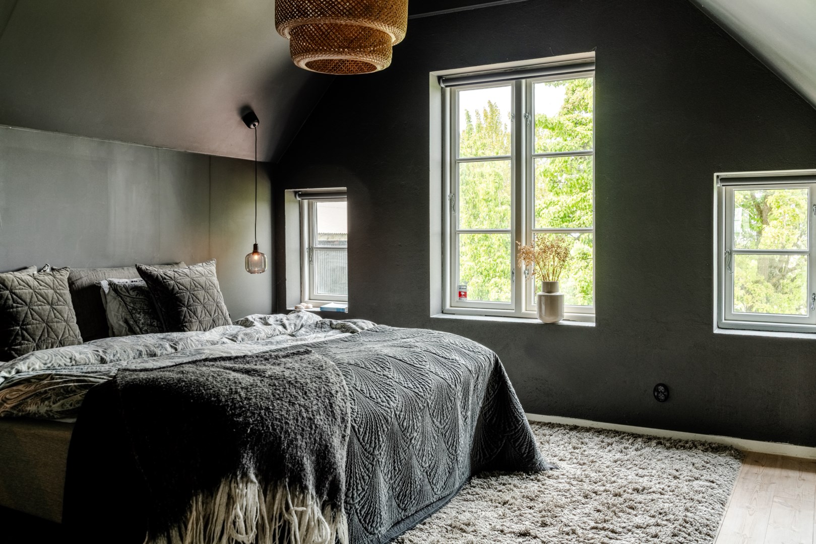 I gårdens östra länga ligger den första gästlägenheten. Egen uteplats och entré leder in till kök och allrum i öppen planlösning. Entréplanet har också ett sovrum och badrum med dusch och tvättpelare. En trappa upp ligger ytterligare två sovrum.