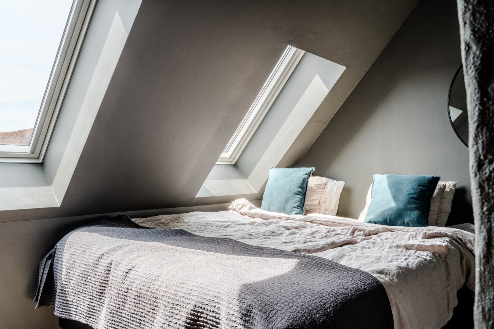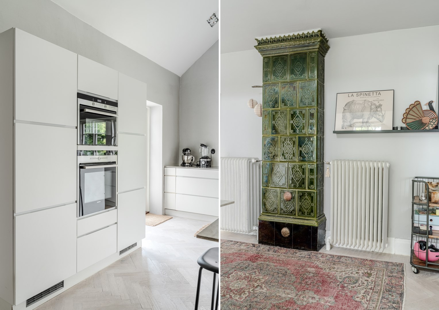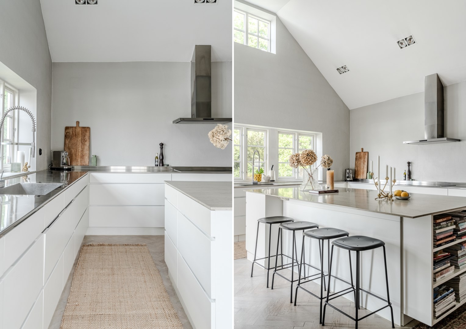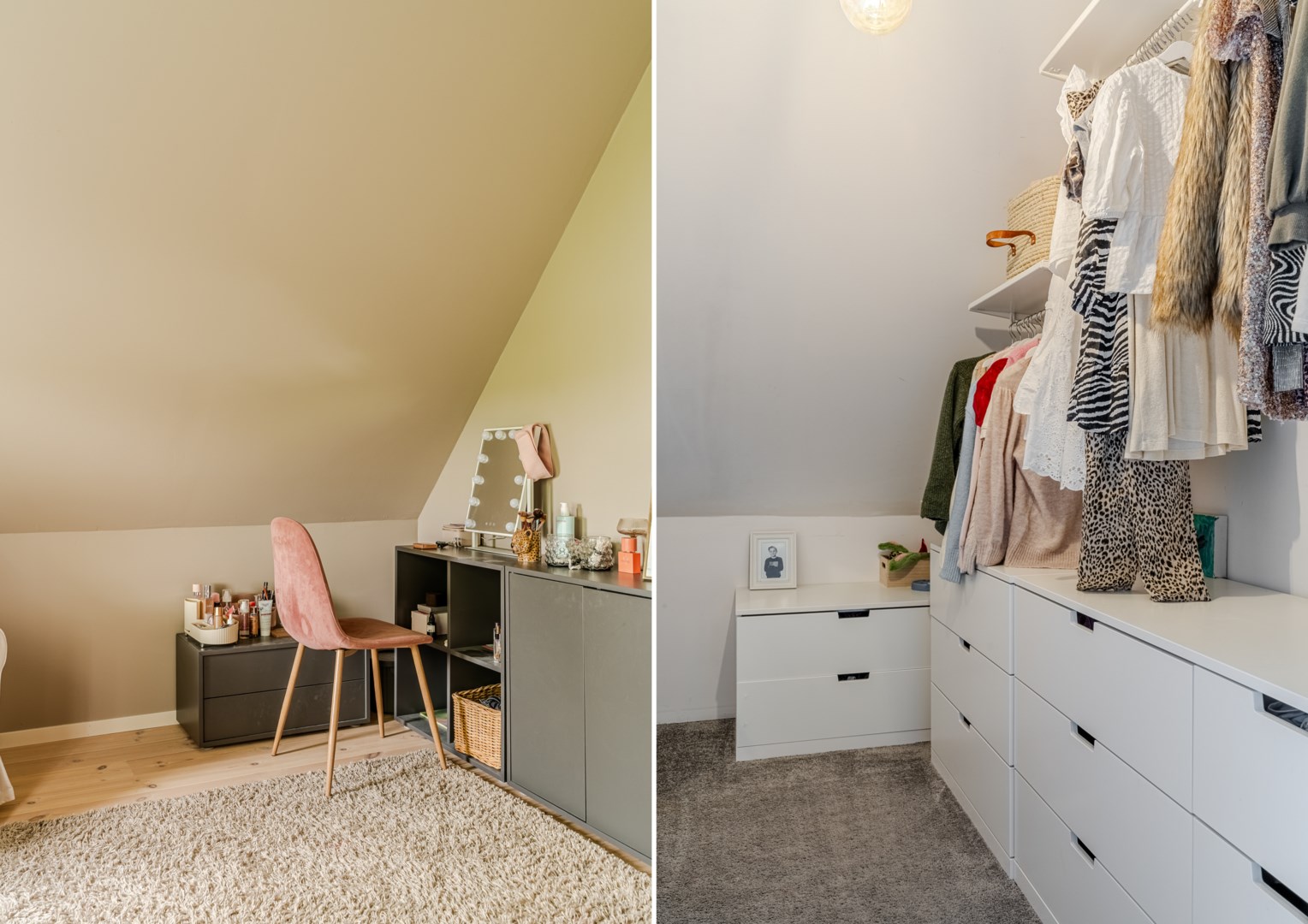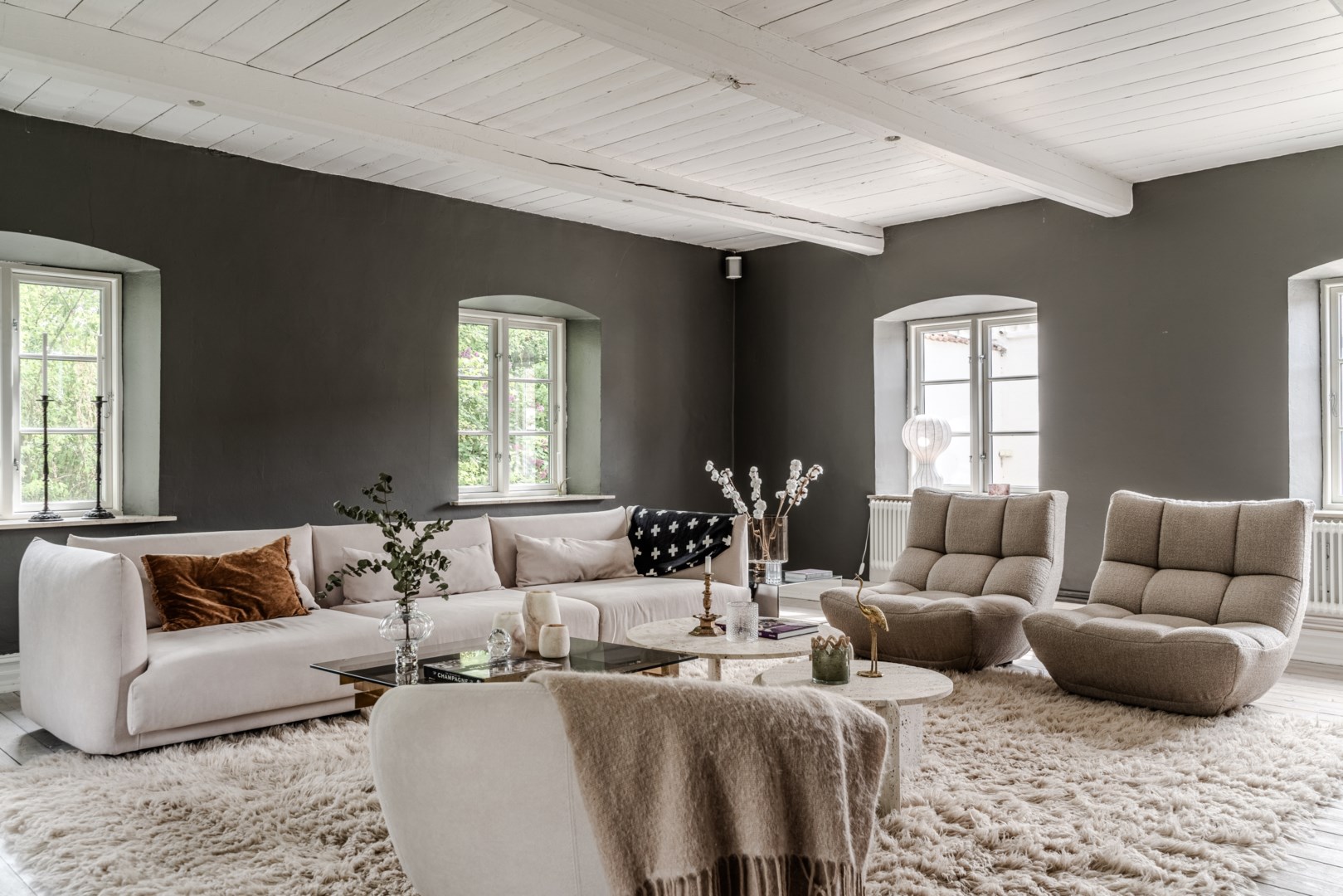 I gårdens östra länga ligger den första gästlägenheten. Egen uteplats och entré leder in till kök och allrum i öppen planlösning. Entréplanet har också ett sovrum och badrum med dusch och tvättpelare. En trappa upp ligger ytterligare två sovrum.