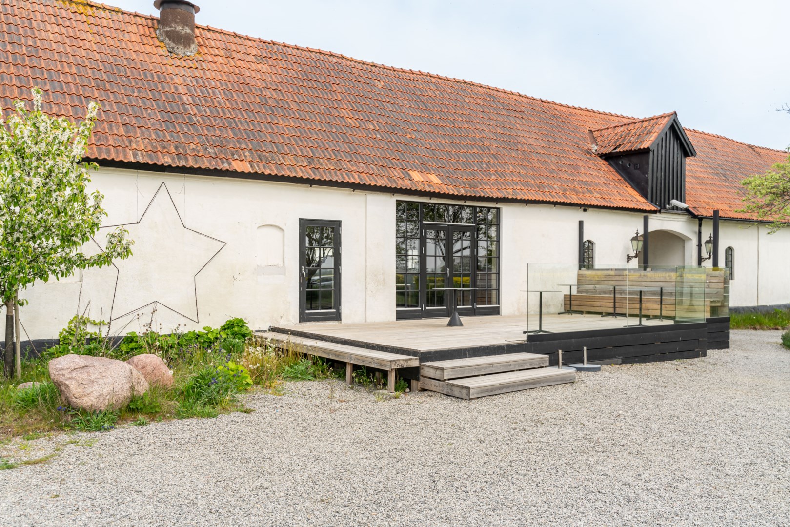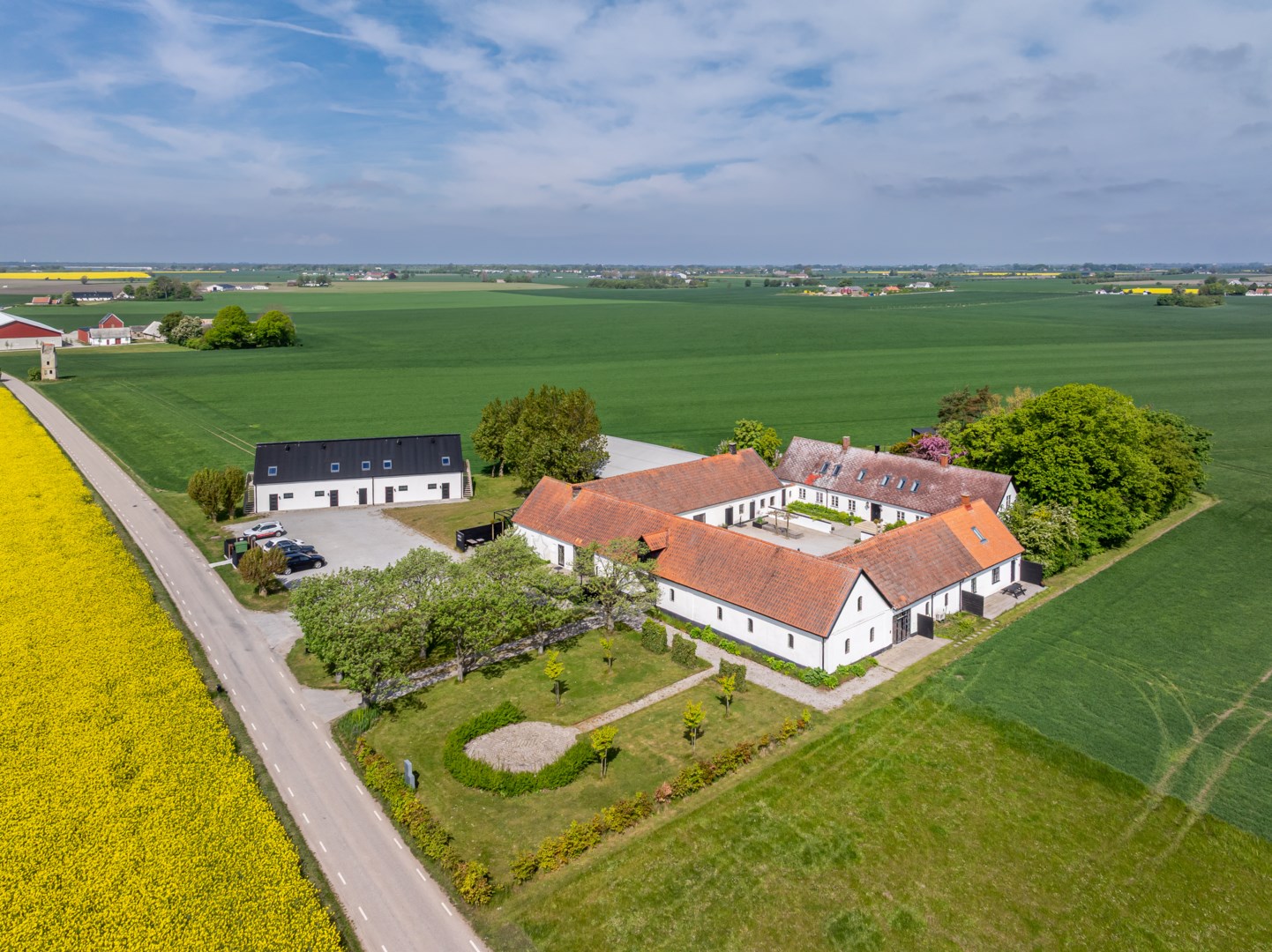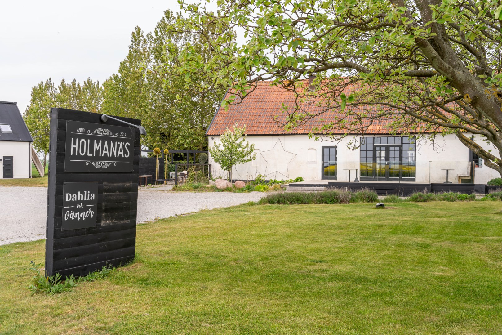 På vackra Söderslätt, strax öster om Höllviken och Falsterbonäset, ligger denna avstyckade gård med genomtänkt och välplanerat boende samt flera verksamheter. Böljande rapsfält ramat in den lilla vägen fram till Holmanäs där en fin allé leder in till den fyrlängade gården. Här finns även gott om parkeringsplatser direkt vid vägen och naturliga entréer till butiken och restaurangen. Gårdsplanen är rymlig och vindskyddas av de kringliggande byggnaderna. I sydöstra hörnet nås festlokalen och tvärs över gården, i norr, ligger mangårdsbyggnaden om 365 kvm.