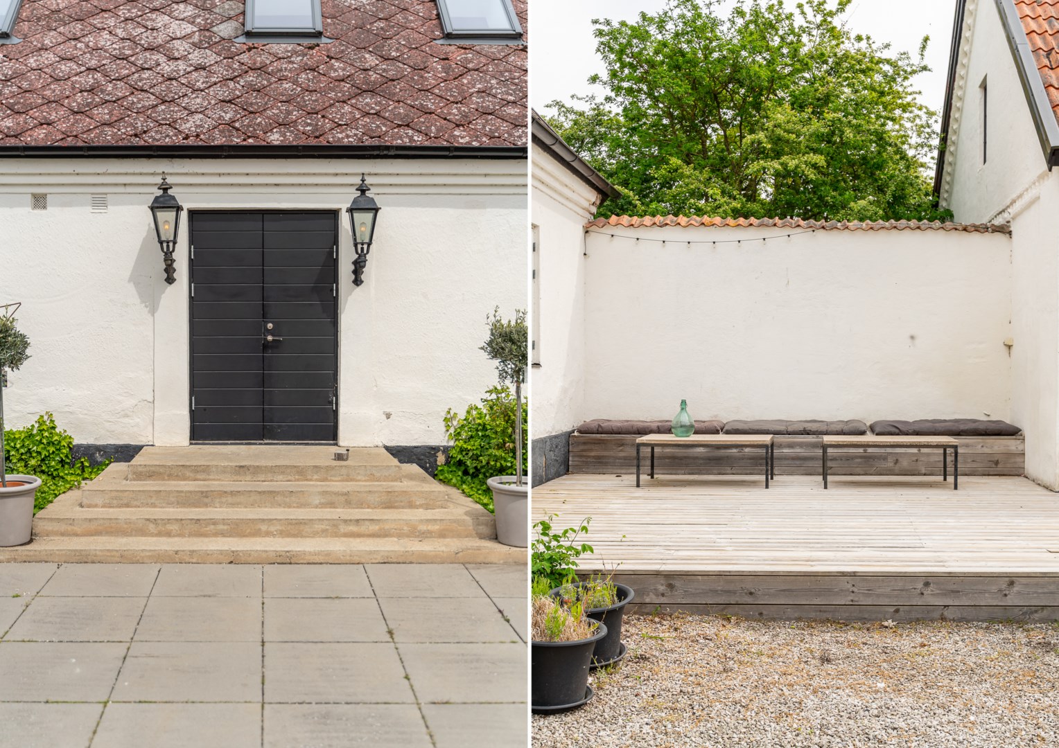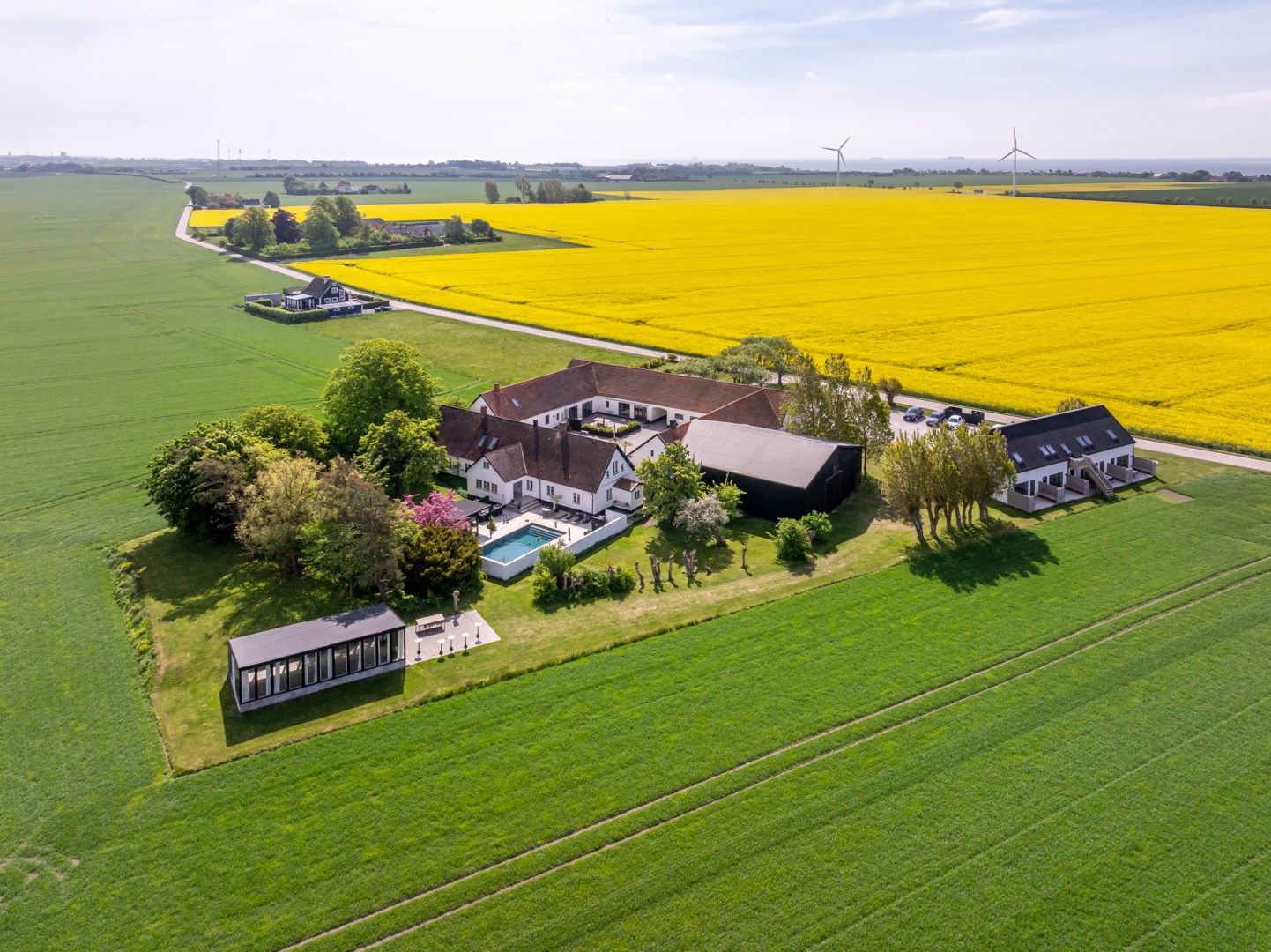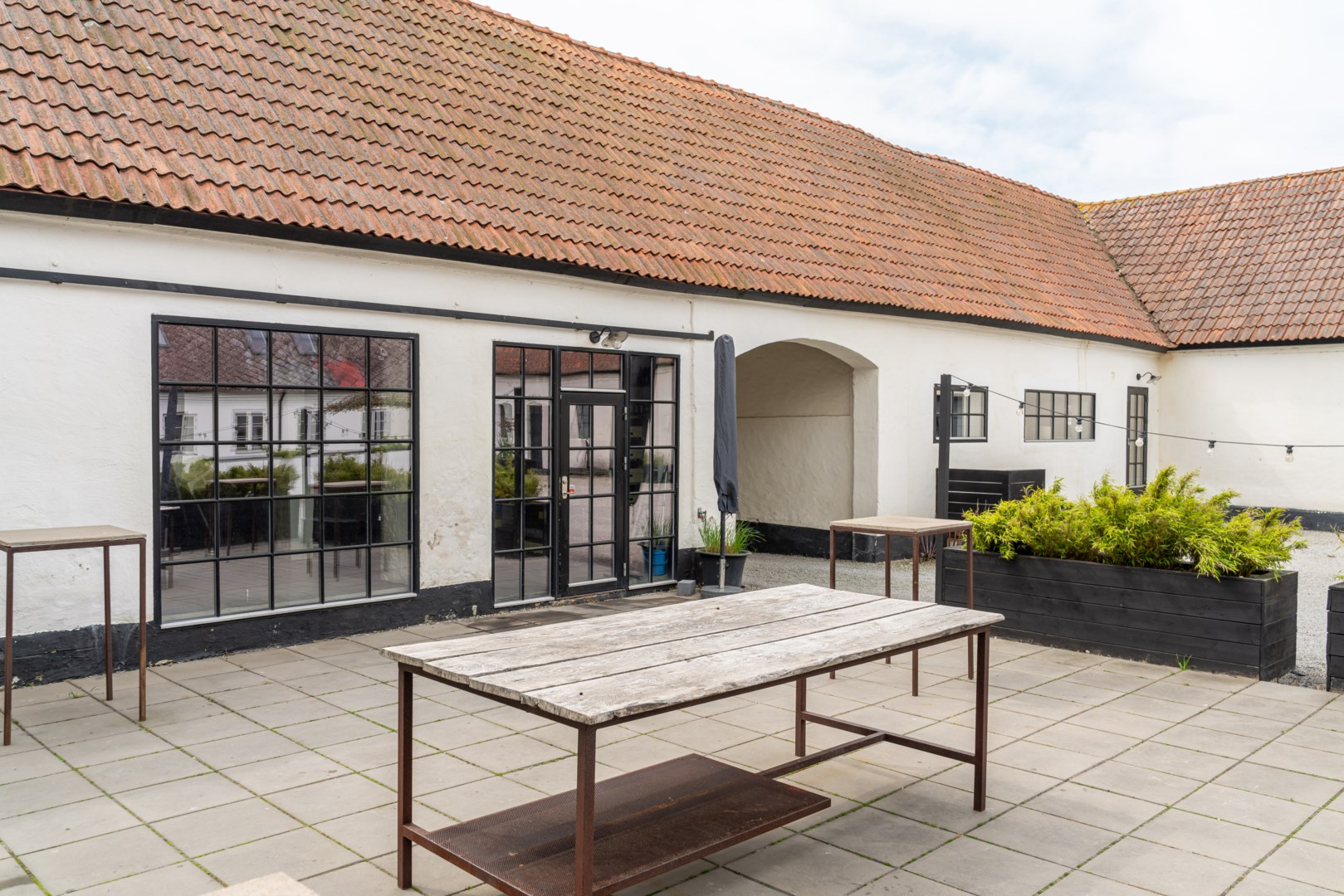 På vackra Söderslätt, strax öster om Höllviken och Falsterbonäset, ligger denna avstyckade gård med genomtänkt och välplanerat boende samt flera verksamheter. Böljande rapsfält ramat in den lilla vägen fram till Holmanäs där en fin allé leder in till den fyrlängade gården. Här finns även gott om parkeringsplatser direkt vid vägen och naturliga entréer till butiken och restaurangen. Gårdsplanen är rymlig och vindskyddas av de kringliggande byggnaderna. I sydöstra hörnet nås festlokalen och tvärs över gården, i norr, ligger mangårdsbyggnaden om 365 kvm.