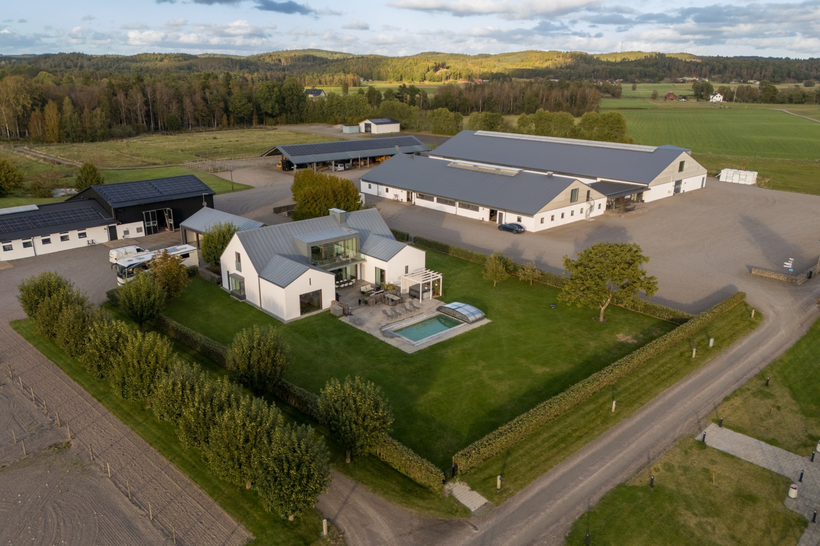 Anläggningens främsta clou är de fyra ekonomibyggnaderna om totalt 4 235 m², anpassade för professionell hästverksamhet. Här finns stall, ridhus, kontor, utbildningslokaler och moderna lösningar för både häst och ryttare. Utöver detta finns 13 lösdrifter på betesmark med vintervatten och vindskydd, åkermark, skogsmark samt en rad anläggningar för träning och rekreation: padok, passbana, ovalbana, rakbana, naturslingor, två padelbanor, paintballbana, vedeldad bastu och badtunna.