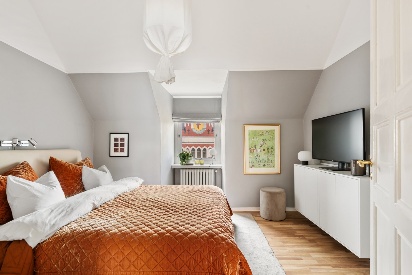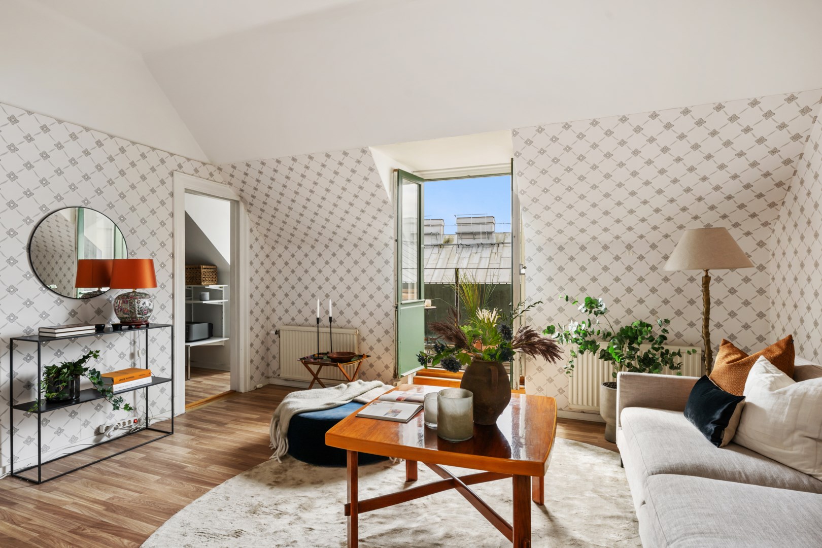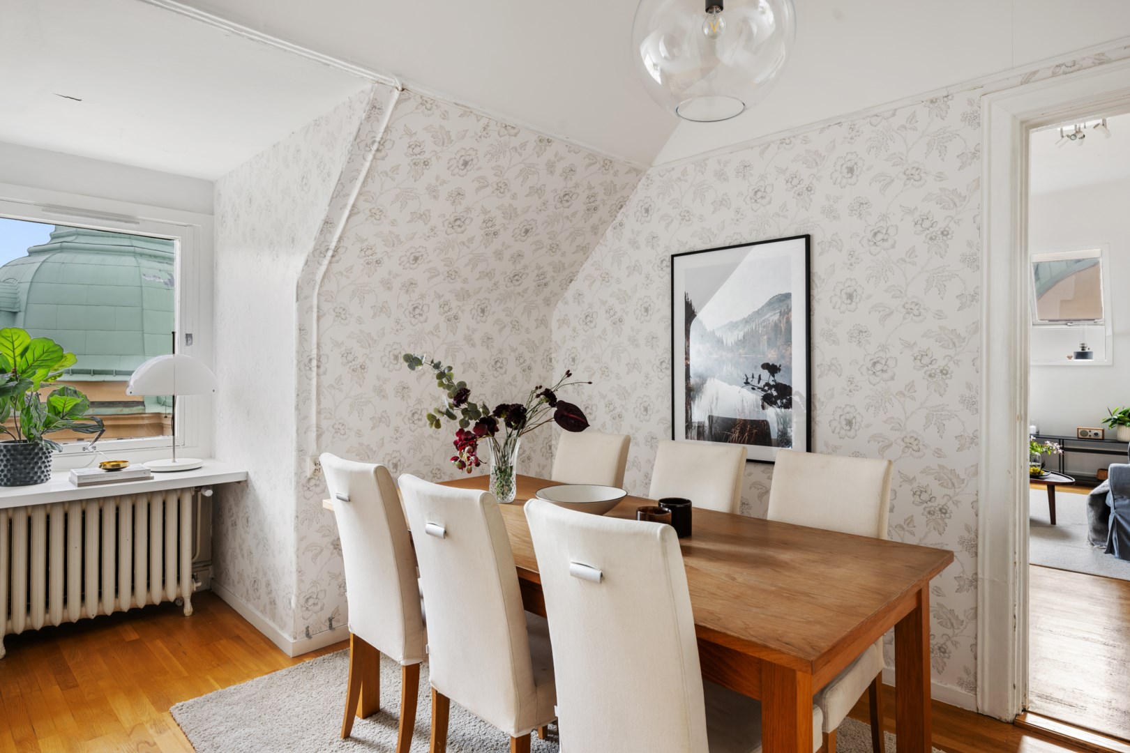 Attraktivt belägen på Östermalmsgatan 68 i vacker fastighet från 1906 bjuds underbar vindsvåning med generösa sällskapsytor, två entréer, upp till fyra sovrum, genomgående planlösning och en ljuvlig terrass i fritt sydsydvästläge. Välskött bostadsförening med mycket låg belåning och fina gemensamhetsytor.