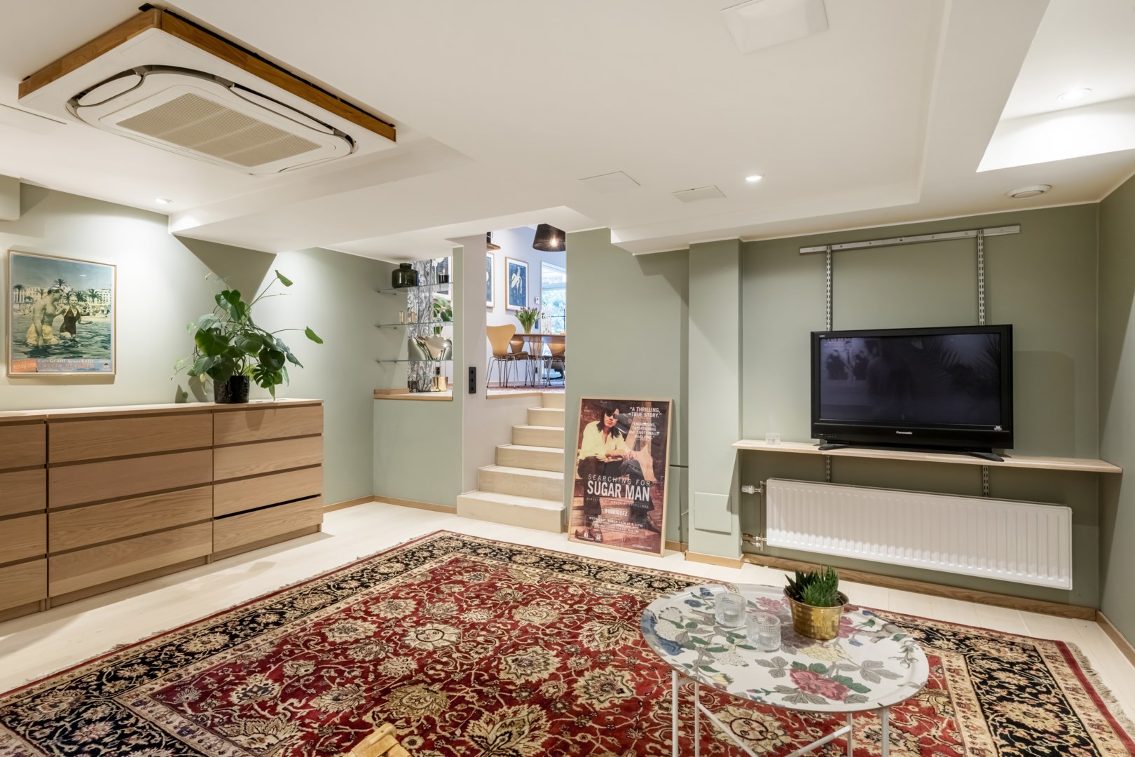Invändigt möts du av ljusa, luftiga ytor och stora glaspartier som suddar ut gränsen mellan inne och ute. Vardagsrum och matsal ligger i anslutning till trädgården och bjuder in till både sociala middagar och avkoppling i det gröna. Utöver detta finns ett TV-rum/gym och ytterligare sällskapsrum, vilket skapar gott om plats för både familjeliv och gäster.
