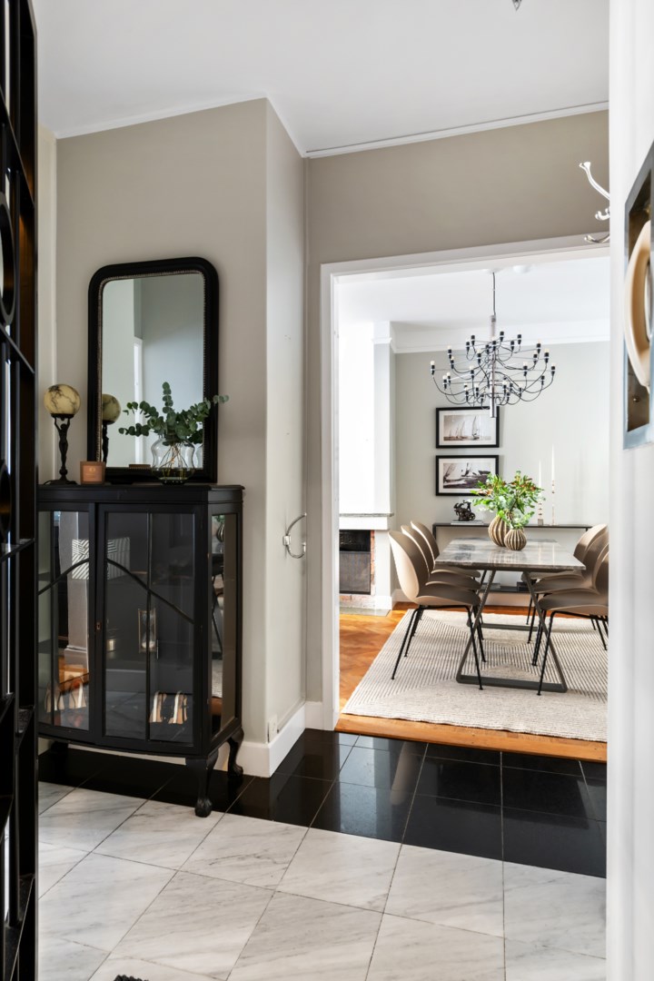 I välskött funkisfastighet från 1939 finns denna välplanerade bostad med ett lugnt läge ett kvarter från Strandvägen. Våningen har en mycket funktionell och genomgående planlösning med två sovrum mot den lugna gården. Kök och sällskapsrum ligger mot gatan. Rymligt vardagsrum med fungerande öppen spis, en naturlig matsalsdel och balkong. Kök med delvis öppen planlösning mot sällskapsrummet. I vardagsrumsdelen, vacker fiskbensmönstrad, stavparkett. De två sovrummen är utrustade med franska balkonger i söderläge. Kaklat badrum med badkar. I hallen finns en separat gäst WC