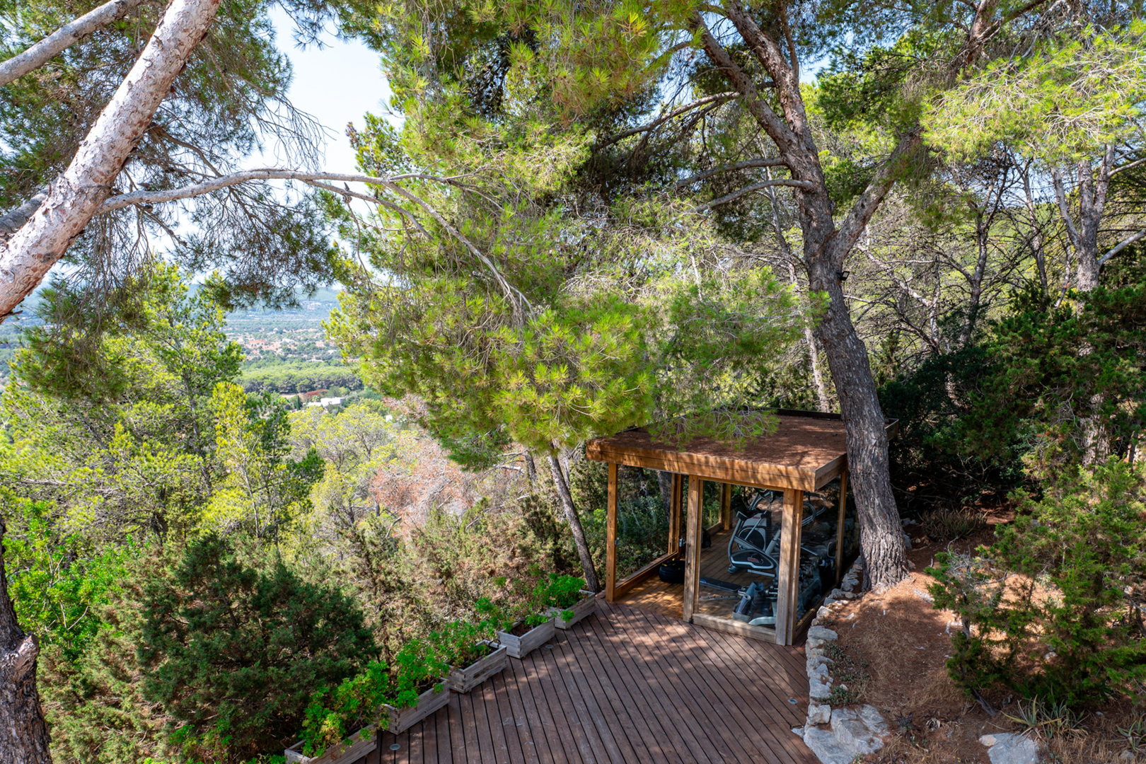 For those seeking balance and well-being, the property includes a private outdoor gym and a dedicated yoga platform with views of the valley, offering the perfect setting for training and meditation in nature.