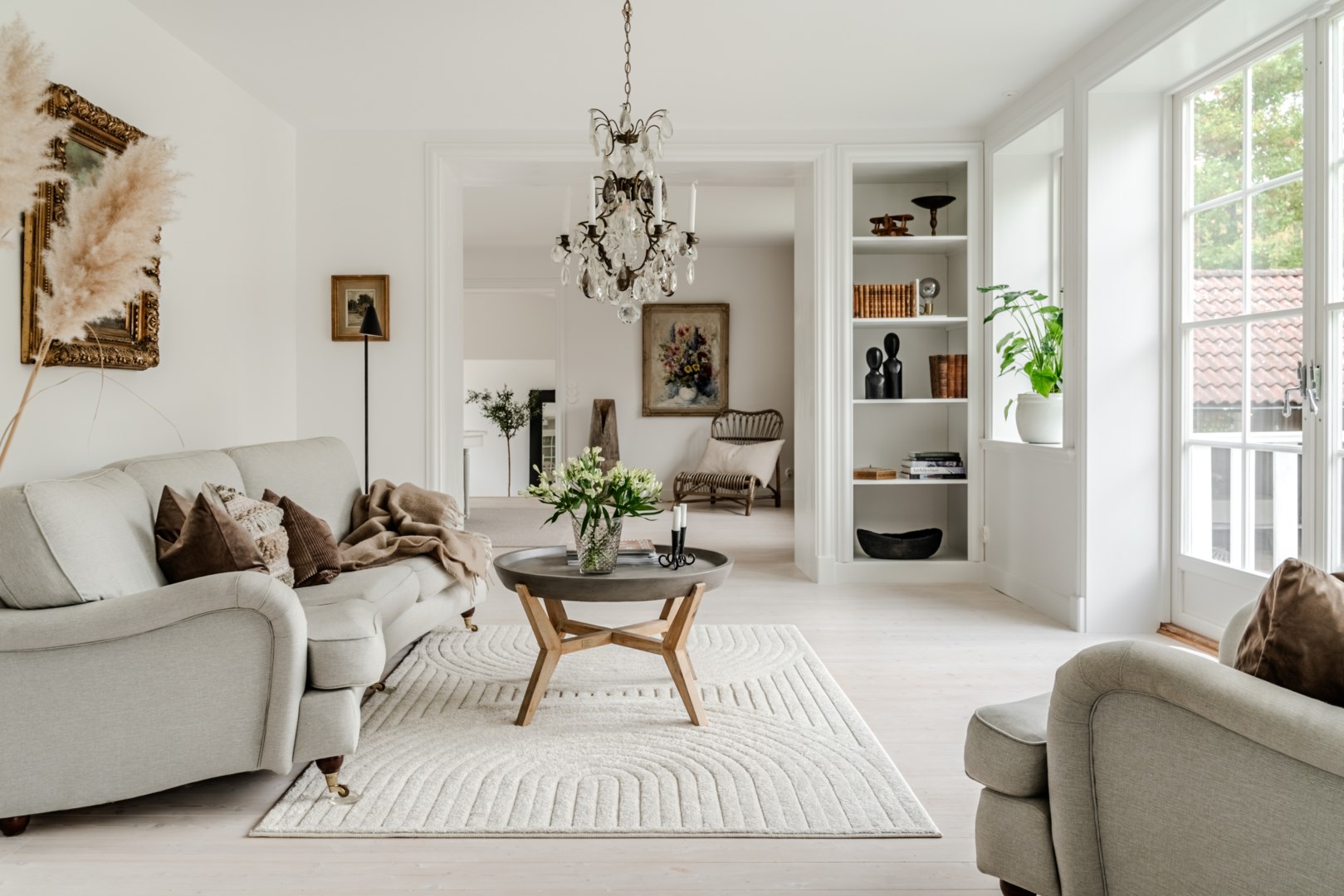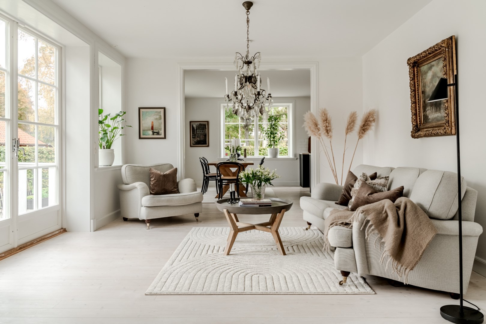 Med en boarea om ca 270 kvm och ytterligare 130 kvm inredd källare erbjuder huset väl tilltagna ytor för både familjeliv och umgänge. Golvvärme på samtliga tre plan skapar en behaglig helhet året runt. Entréplanet bjuder på stora, ljusa sällskapsytor med naturliga flöden mellan kök, matsal, bibliotek och vardagsrum. Det stora köket, med spröjsade fönster i flera väderstreck, är hemmets hjärta. Vardagsrummet, med öppet upp i nock och stora glaspartier, bjuder på en härlig rymd och volym. Härifrån nås både trädgården och uteplats i söder samt det överbyggda uterummet som förlänger säsongen och låter sommarkvällarna dröja sig kvar.