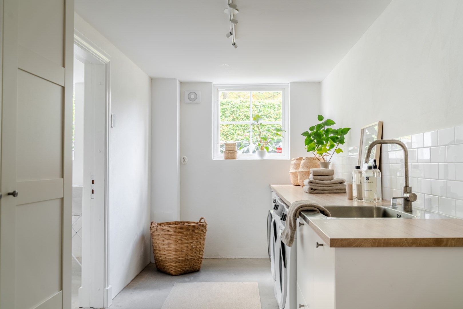 Tvättstugan rymmer två nya tvättmaskiner (Electrolux, 2025), torktumlare (Bauknecht, 2019) och separat torkrum. Därtill finns en generös walk-in-closet samt förråd med intilliggande teknikrum med jordvärmeanläggning från Thermia, varmvattenberedare och elcentral.