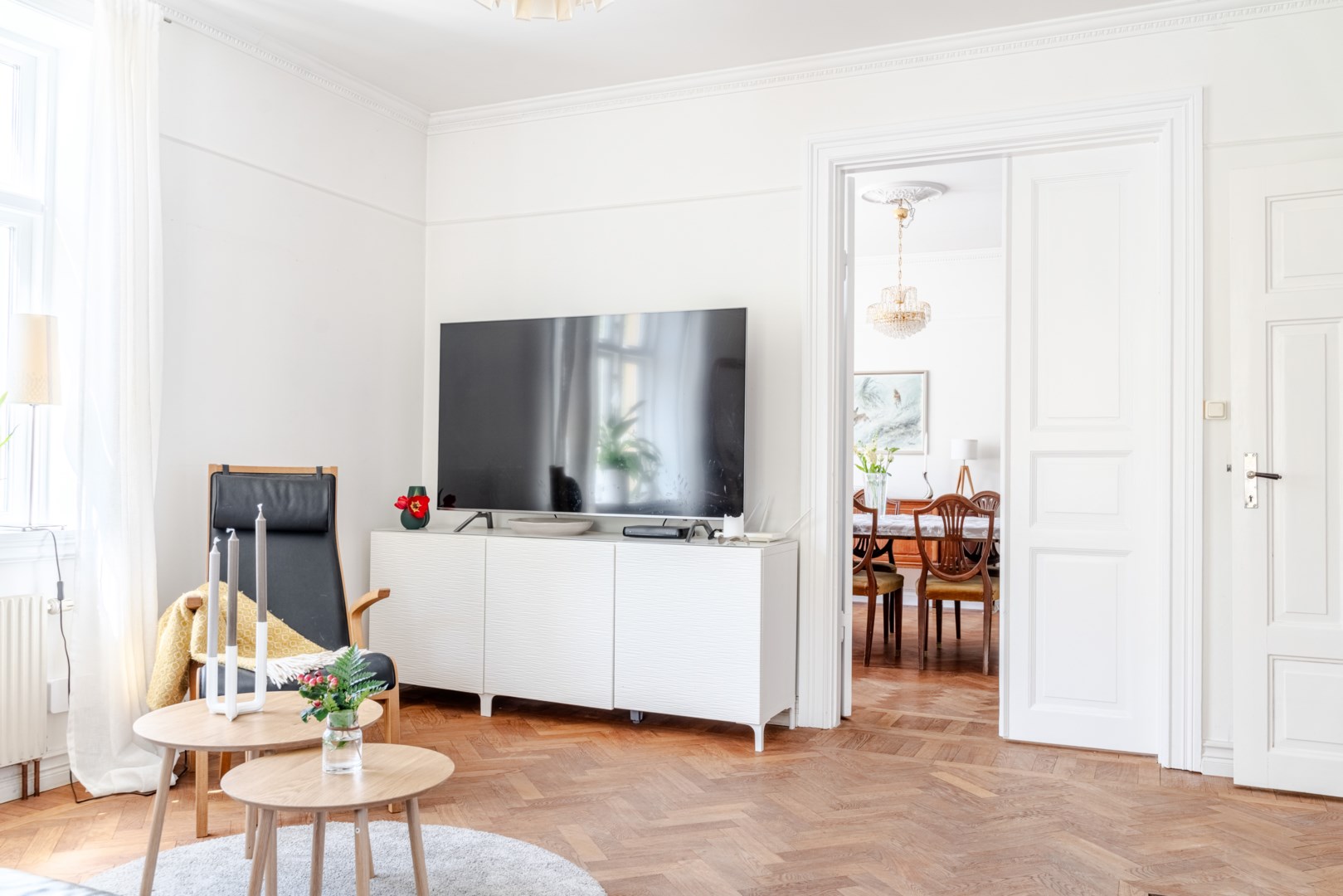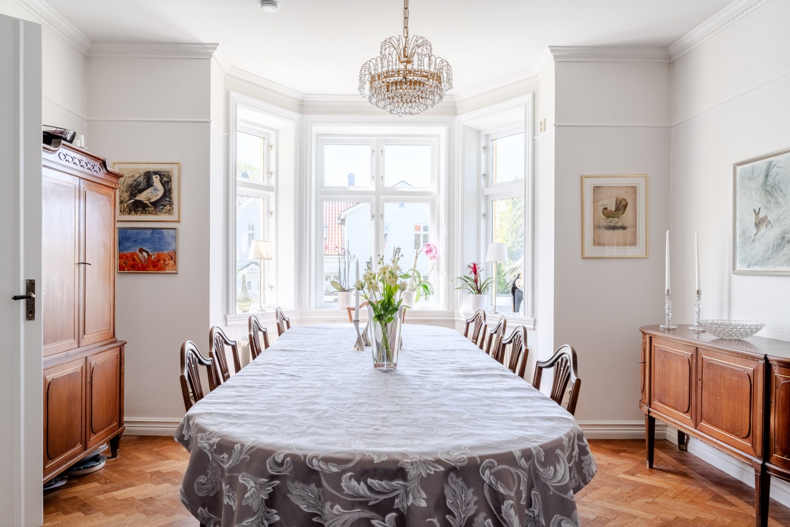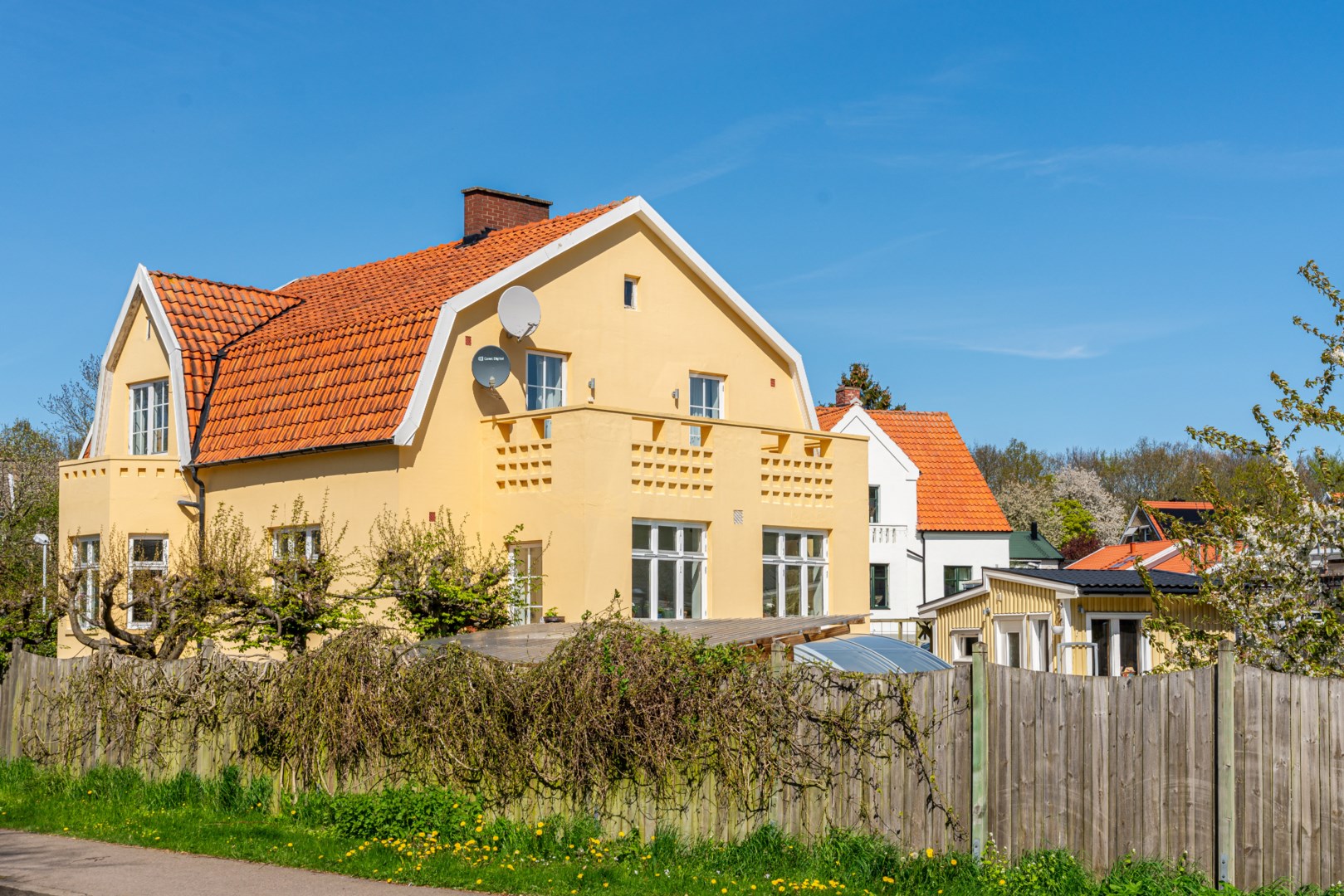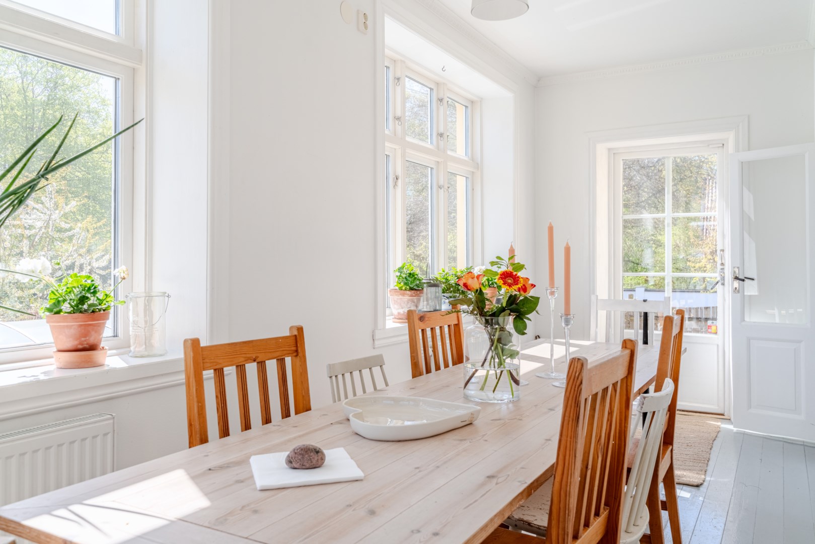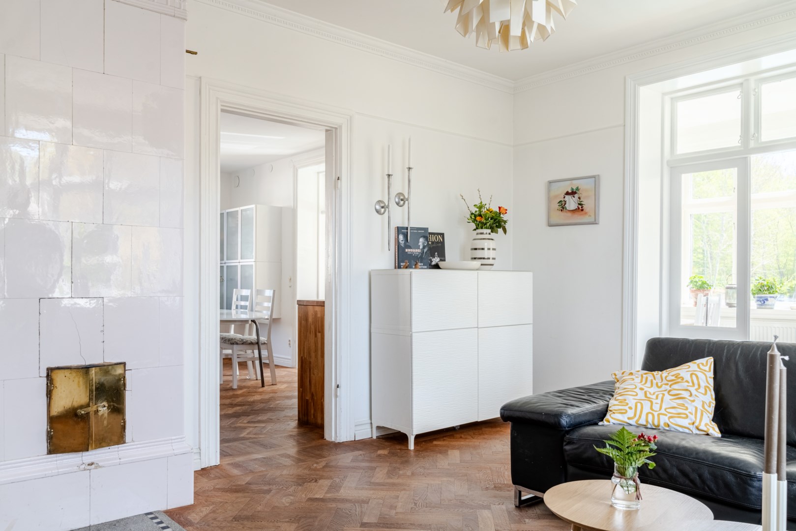 På Södra Brunnsvägen 13 vilar en pampig villa med tydlig rymd, välplanerade ytor och en känsla av gedigen kvalitet med två vackra kakelugnar. Planlösningen är genomtänkt med sällskapsrum i fil, generöst kök med utgång till en insynsskyddad, charmig veranda, en plats som snabbt blir en naturlig förlängning av huset under årets skiftningar.