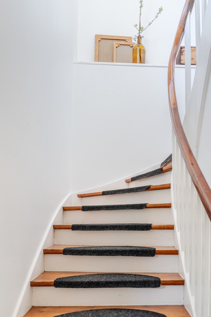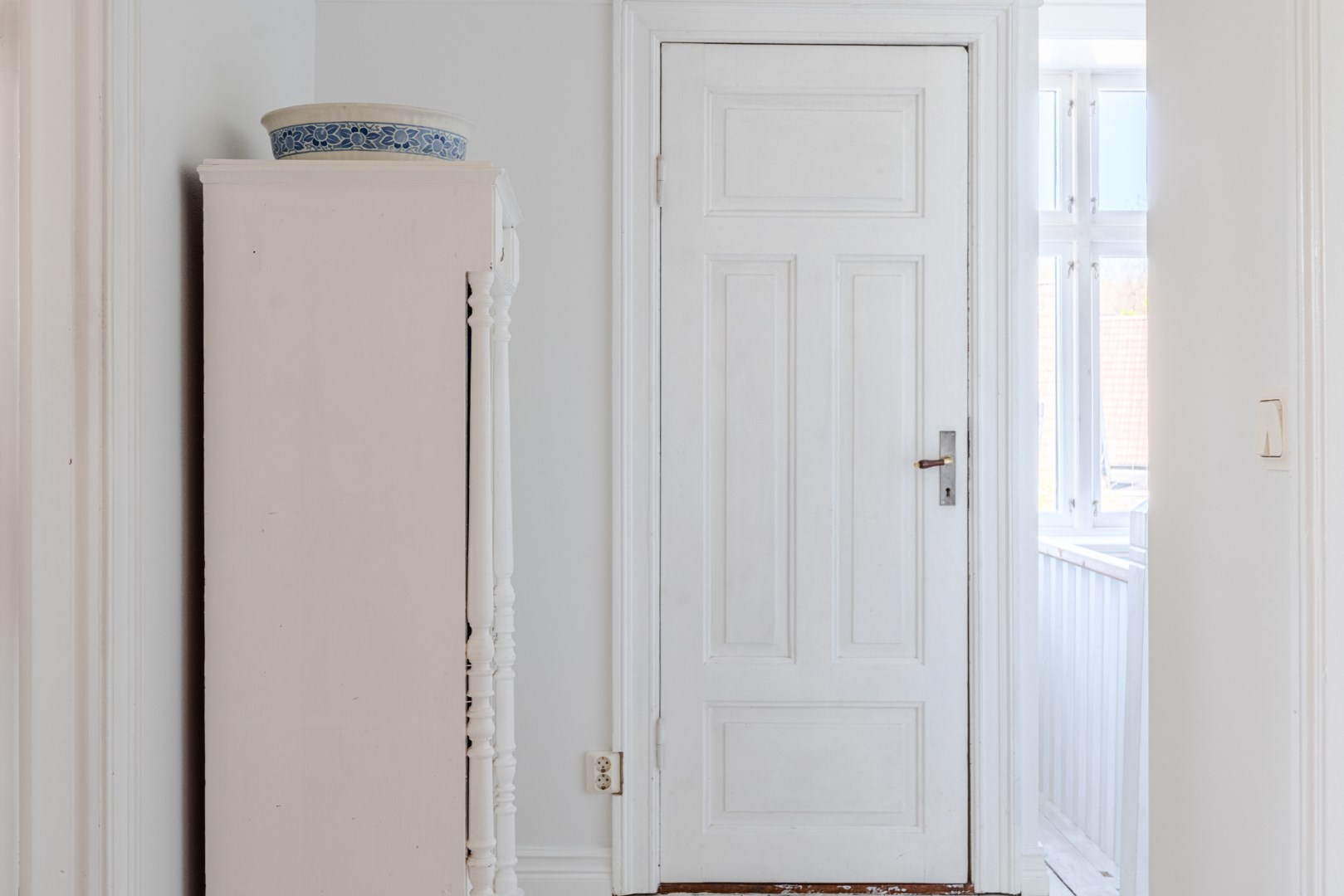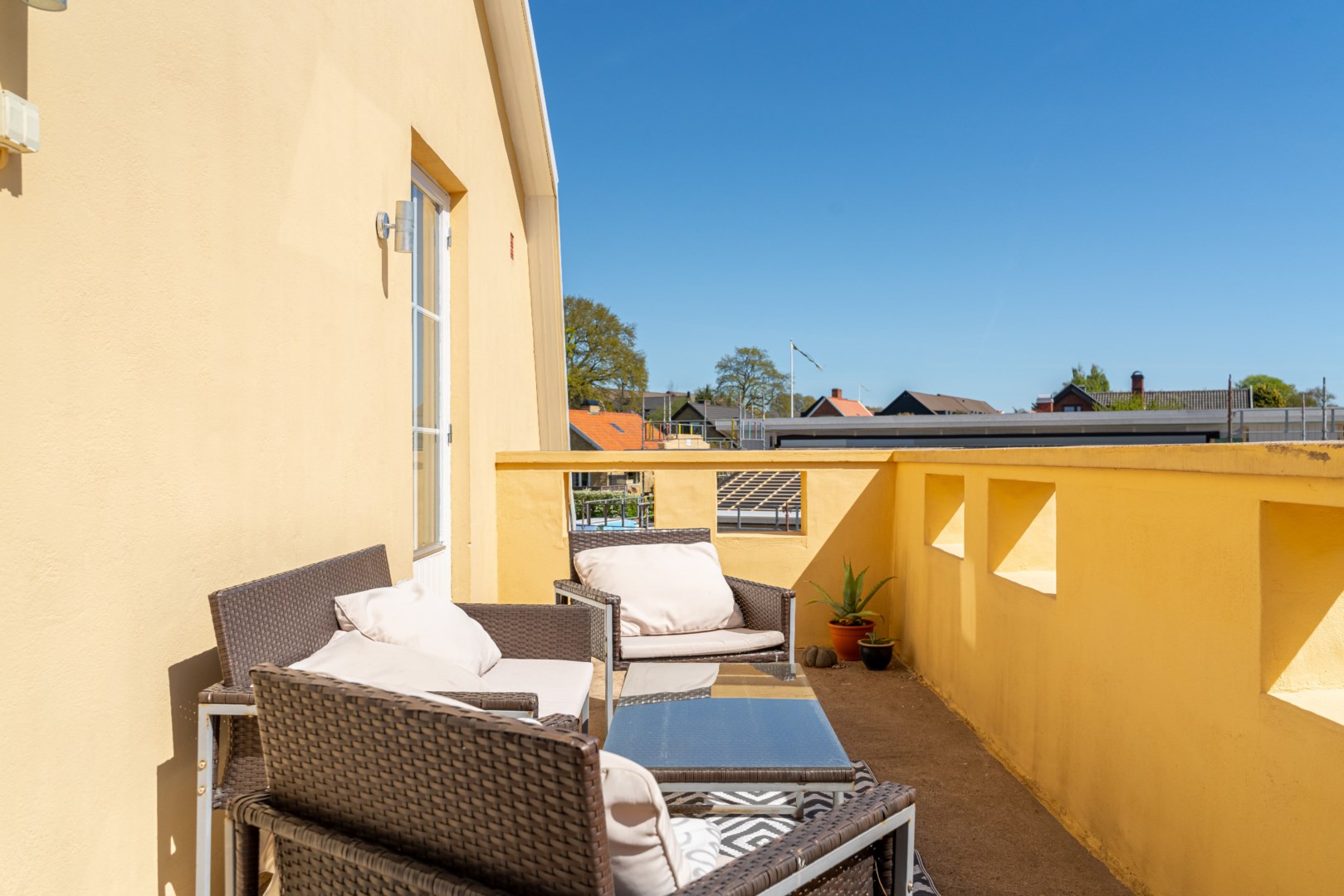 Ovanvåningen bjuder på tre sovrum med fin rymd och smart fördelning. Två av rummen har direkt access till varsin balkong, varav det ena med ovanligt stor yta och fri vy över grönskan, det andra med möjligheten att öppna upp och släppa in naturen, vilket skapar en fin förlängning av rummet. Från ovanvåningen nås även villans råvind via trappa, en extra yta med utvecklingsmöjlighet för den som önskar mer.