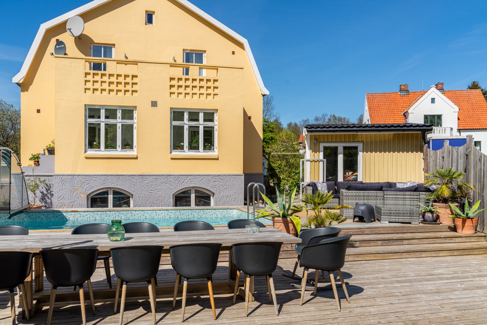 Ett hem med karaktär, ljus och lugn där veranda, pool och balkonger smälter samman med grönskan i hjärtat av Ramlösa