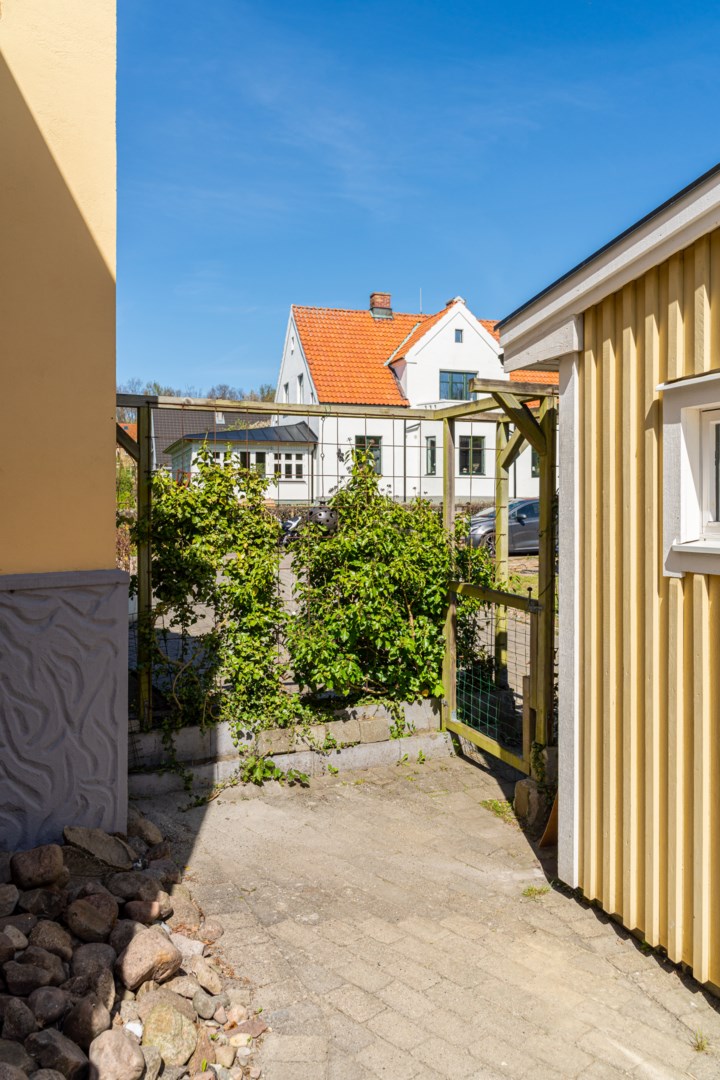 Fastigheten har även en praktisk biluppställningsplats med plats för upp till fyra bilar, bekvämt placerad utan att störa tomtens helhetsintryck.
