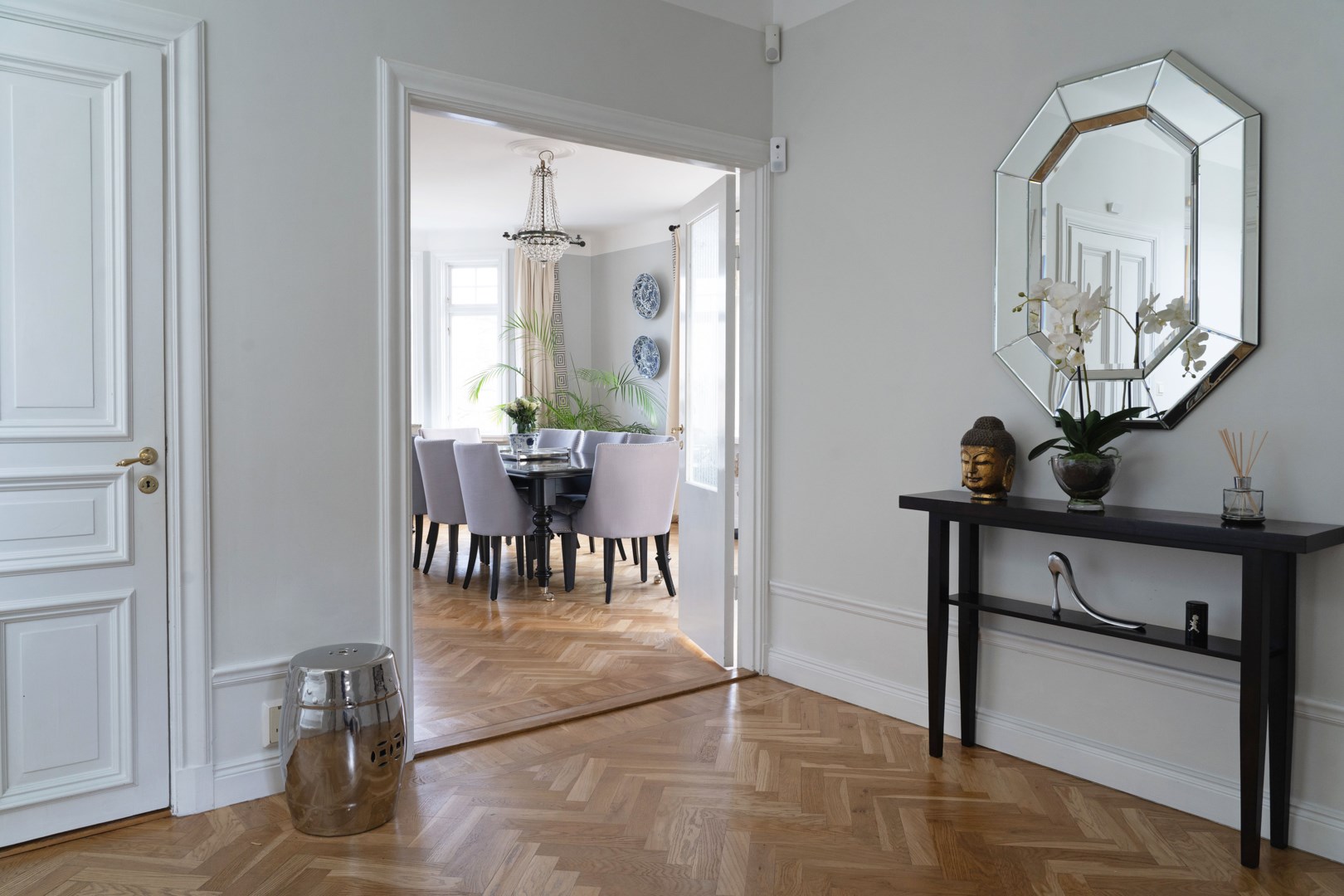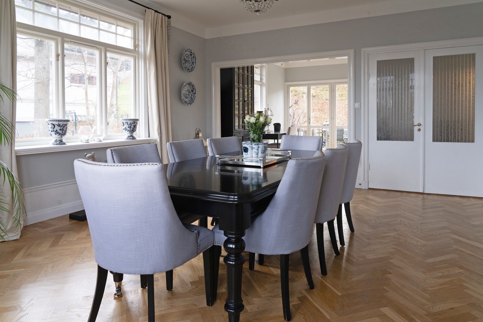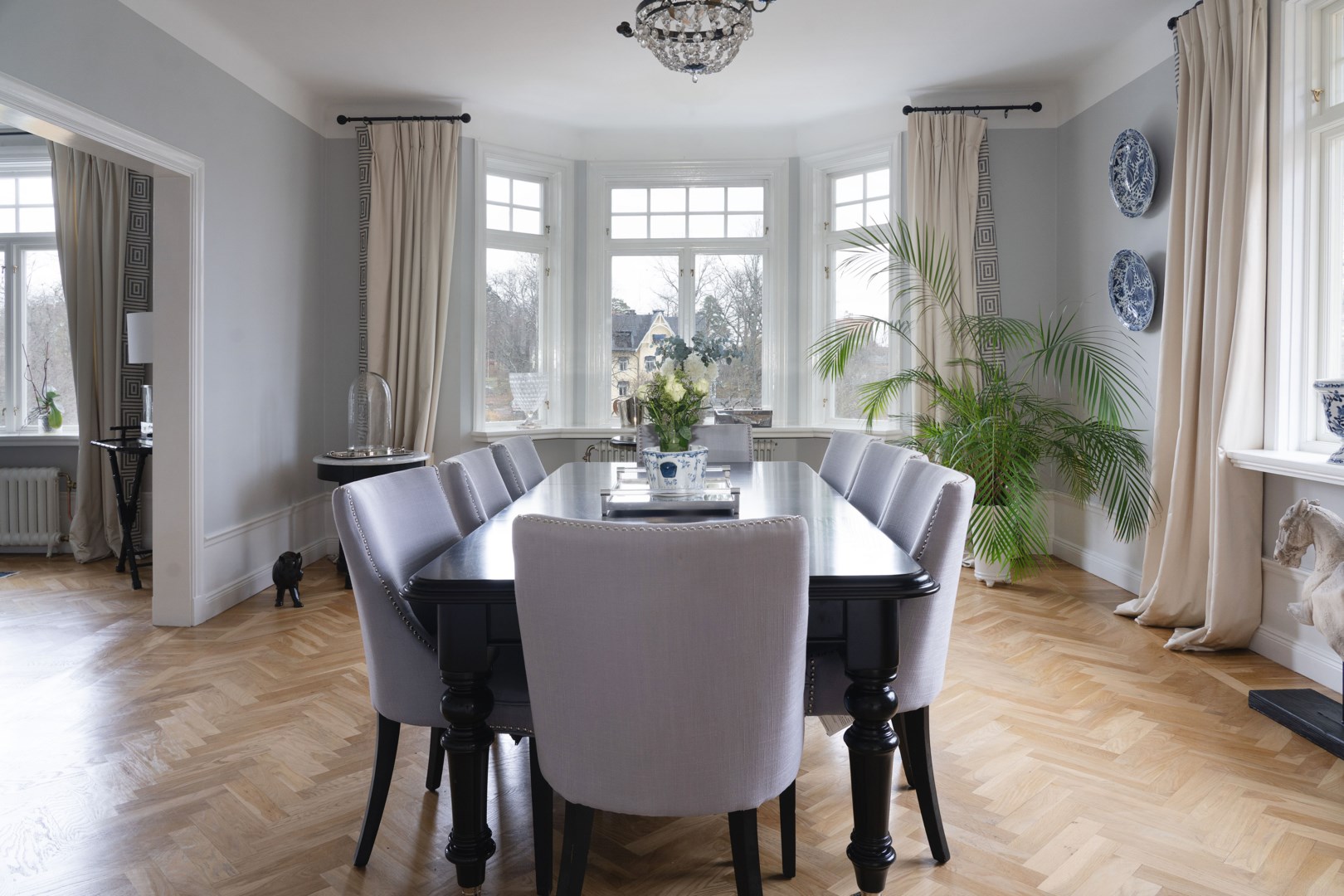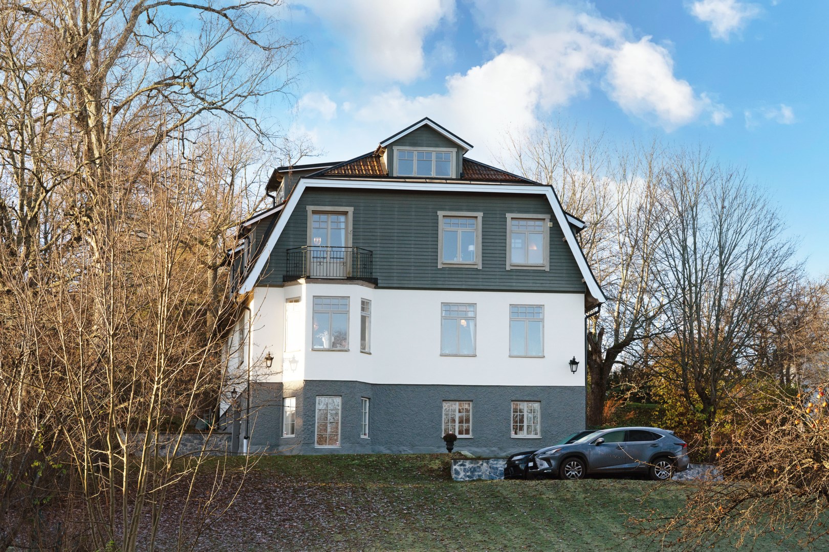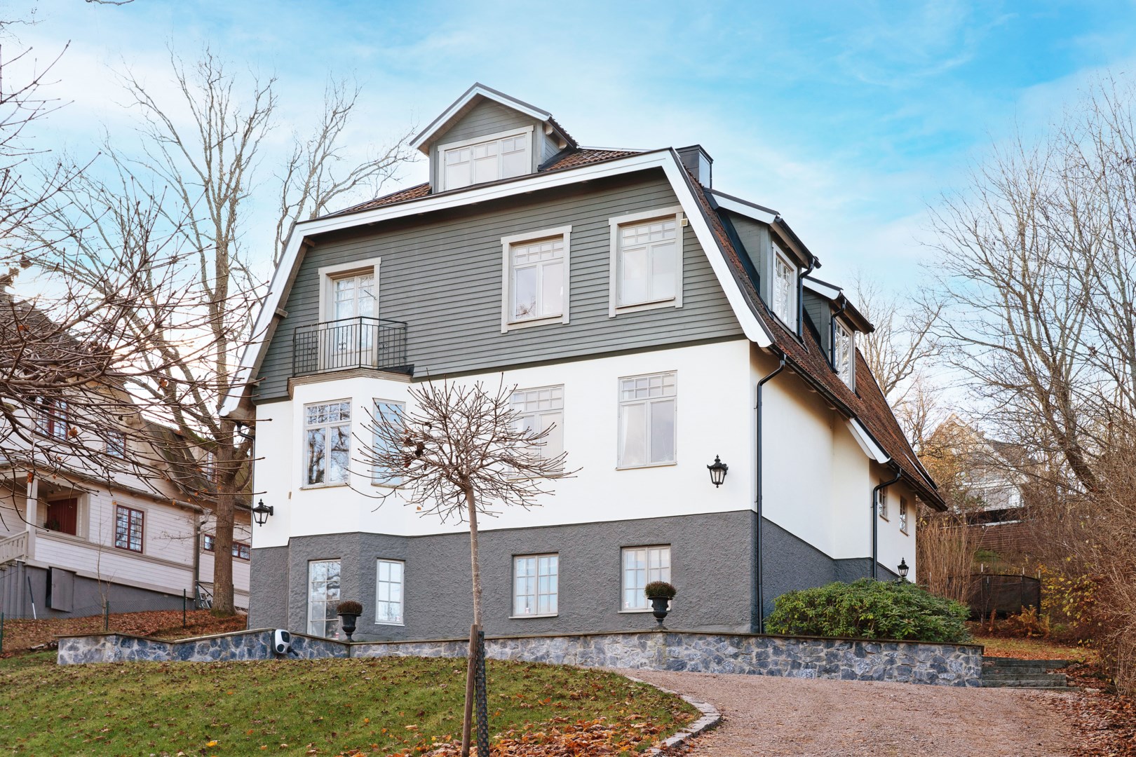 Högt belägen sekelskiftesvilla med eftertraktat läge på Tulevägen i Djursholm och med utsikt över Stora Värtan från de övre planen. Här finns möjlighet att förvärva en stor familjevilla vilken karaktäriseras av vackra sekelskiftesdetaljer med inslag av nationalromantik, plats för stort socialt umgänge såväl som familjeliv. Ett vackert hem med stora sällskapsrum och många sovrum och badrum fördelat på fyra plan om 353 kvm varav 320 kvm boarea. Familjevilla med plats för stort socialt umgänge såväl som familjeliv. Villan har ett fantastiskt ljusinsläpp genom stora fönster och med härlig atmosfär. Entréplanet har matsal med burspråk och sjöglimt, i anslutning ytterligare ett sällskapsrum/ arbetsrum med fönsterdörrar till terrassen i västerläge. Sällskapsrum med öppen spis och intill ett hemtrevligt lantkök. Det övre planet med tre generösa sovrum varav master bedroom med sjöglimt, walk in closet, stor hall, sällskapsrum och exklusiva badrum. Vindsplan med sovrum, badrum samt arbetsrum och läsplats med utsikt över Värtan. Källarplan med lek/ spelrum, badrum och bastu, tvättstuga och gästrum med öppen spis, wc och med egen ingång. Uppvuxen trädgårdstomt om ca 2 700 kvm och dubbelgarage. Närheten till Strandvägens promenadstråk och till Djursholms torg som till förskolor och skolor gör detta till ett mycket eftertraktat boende i Djursholm. Kontakta mäklaren för privat visning!