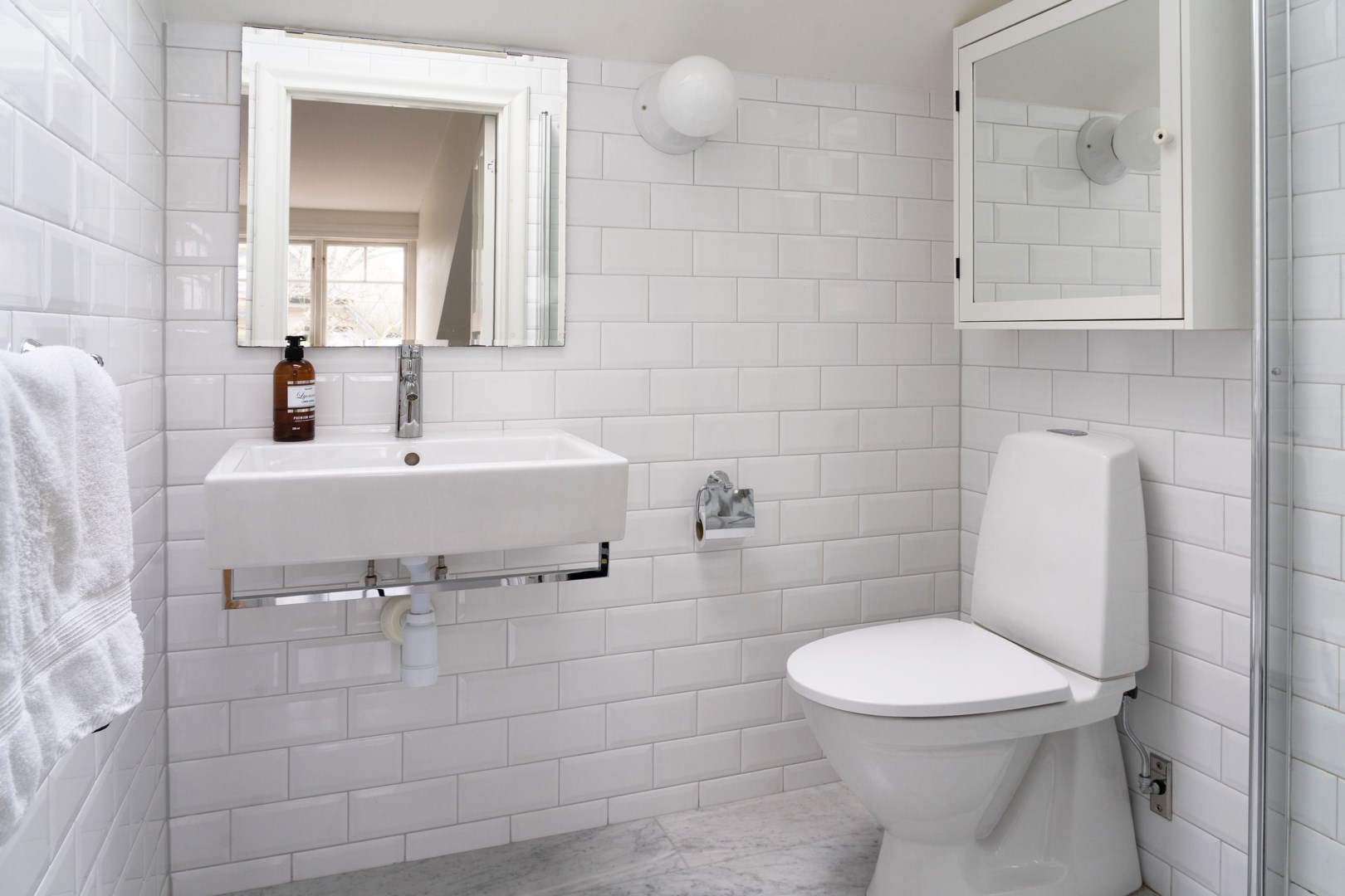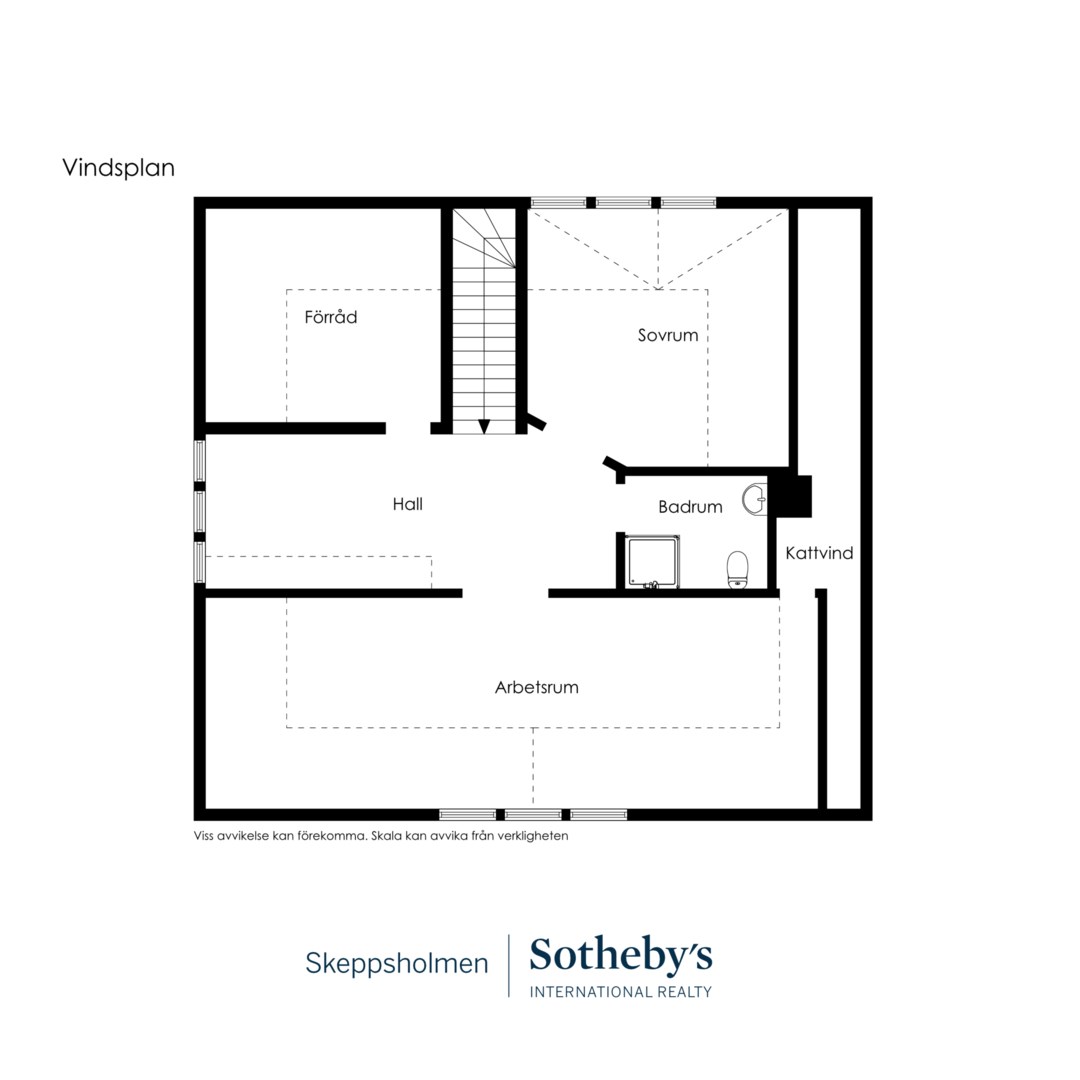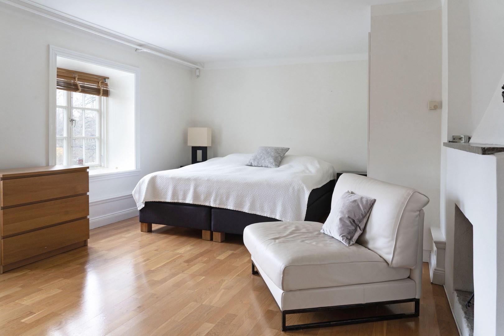 Inredd vind med ett kontor/ sovrum vilket har utsikt mot vattnet likväl som läshörnan i hallen utanför. Ytterligare ett sovrum samt badrum på detta plan. Källarplan med ett lekrum/ spelrum eller att användas som gym och härifrån en egen utgång till trädgården, och med stenlagd mur och mark. Dusch och bastu intill samt tvättstuga med två tvättmaskiner och en torktumlare. Groventré med goda förvaringsmöjligheter och här även ett gästrum med öppen spis, ej använd av nuvarande ägare. Wc renoverat i samma stil som gästtoaletten i i entréplan. Pannrum med bergvärmepump i källarplanet.