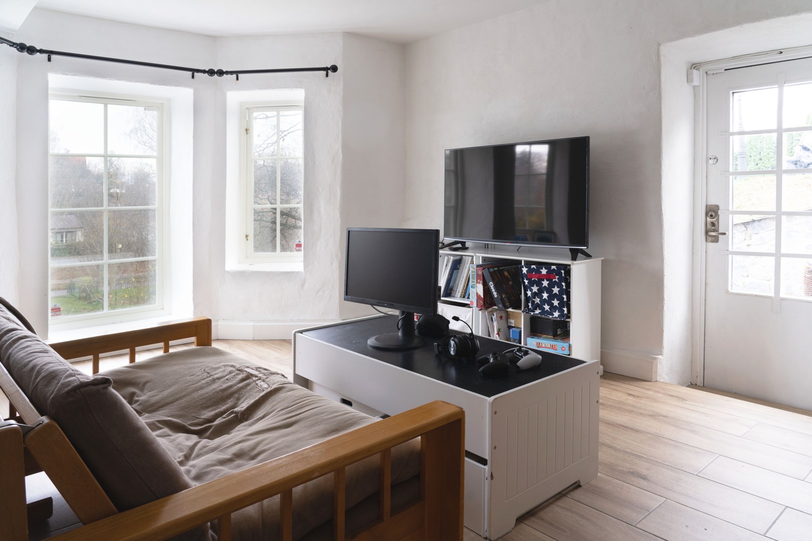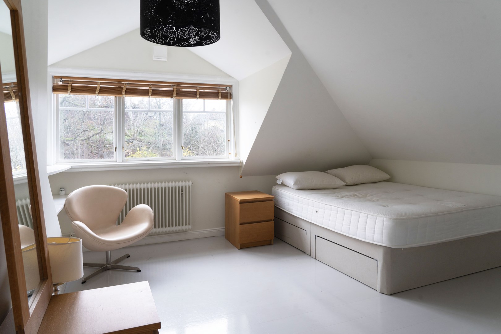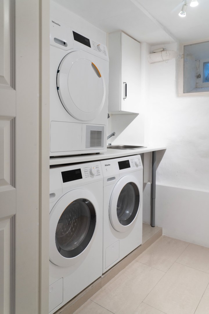 Inredd vind med ett kontor/ sovrum vilket har utsikt mot vattnet likväl som läshörnan i hallen utanför. Ytterligare ett sovrum samt badrum på detta plan. Källarplan med ett lekrum/ spelrum eller att användas som gym och härifrån en egen utgång till trädgården, och med stenlagd mur och mark. Dusch och bastu intill samt tvättstuga med två tvättmaskiner och en torktumlare. Groventré med goda förvaringsmöjligheter och här även ett gästrum med öppen spis, ej använd av nuvarande ägare. Wc renoverat i samma stil som gästtoaletten i i entréplan. Pannrum med bergvärmepump i källarplanet.