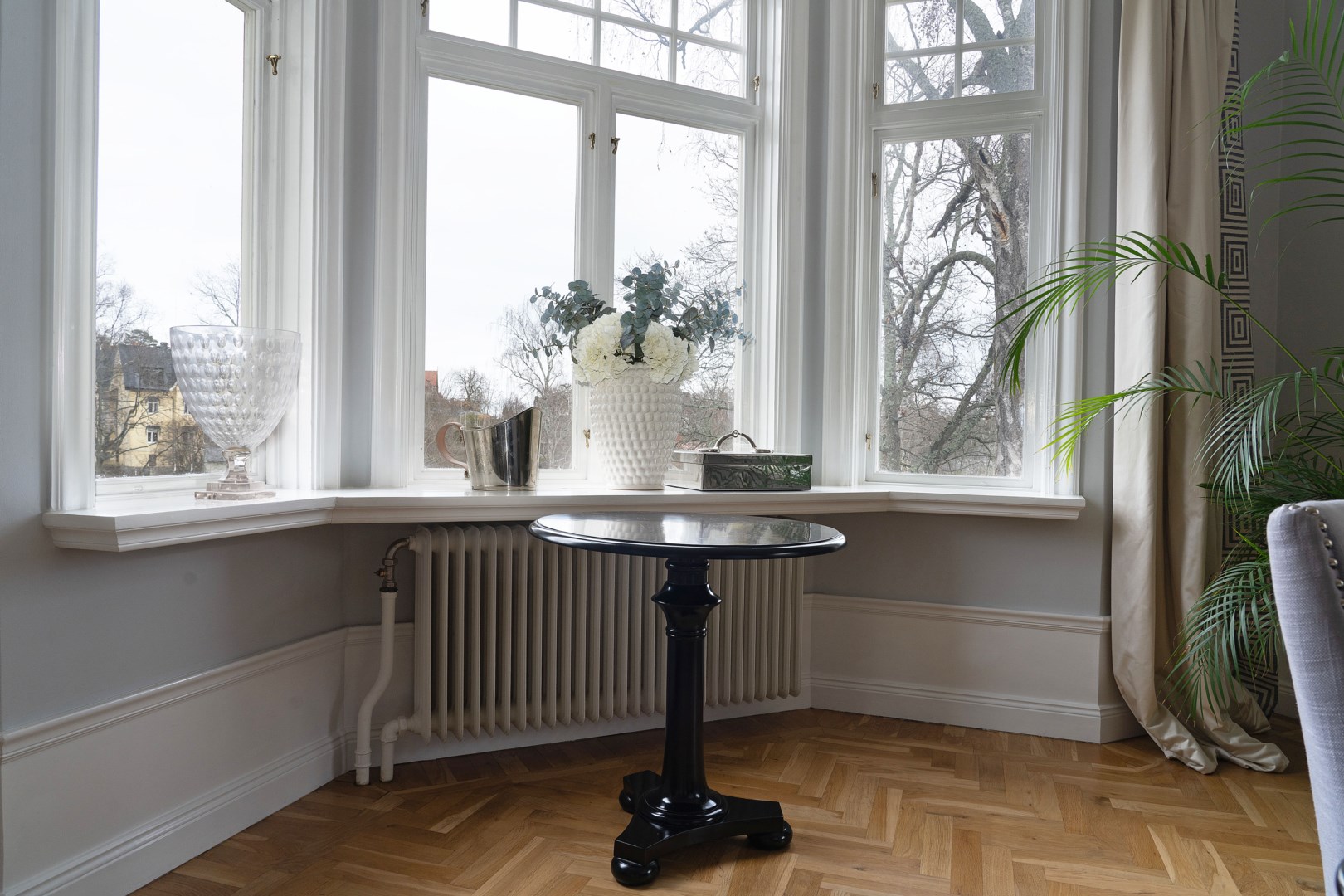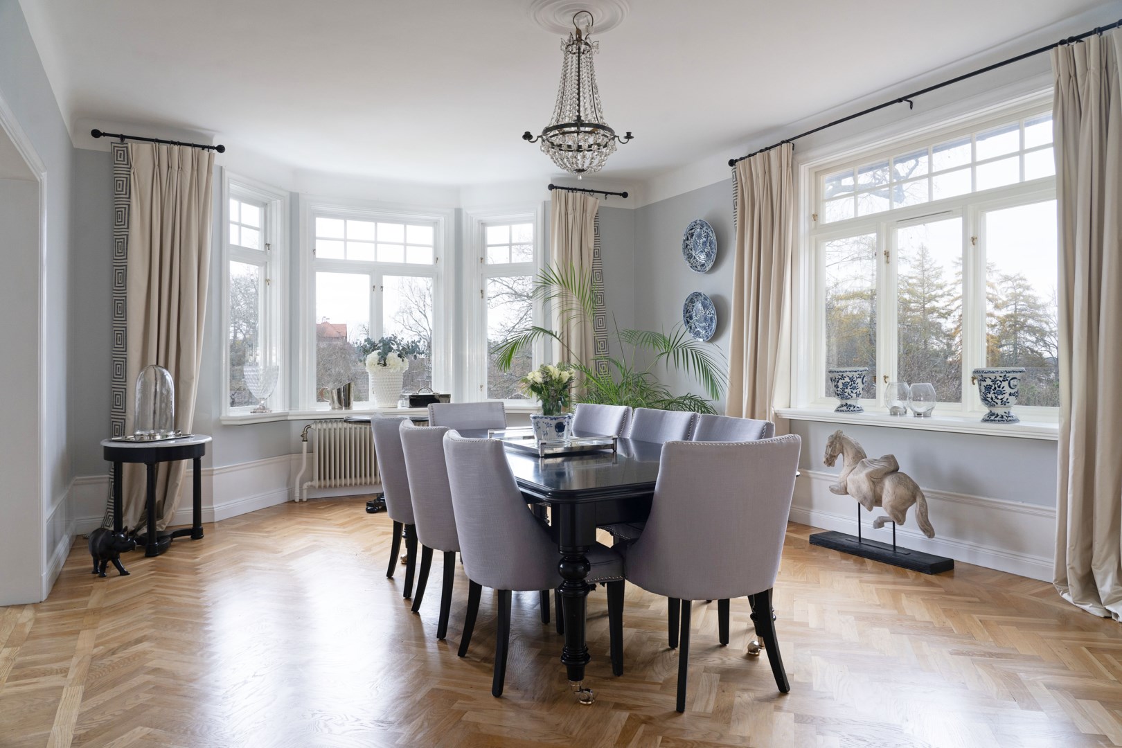 Högt belägen sekelskiftesvilla med eftertraktat läge på Tulevägen i Djursholm och med utsikt över Stora Värtan från de övre planen. Här finns möjlighet att förvärva en stor familjevilla vilken karaktäriseras av vackra sekelskiftesdetaljer med inslag av nationalromantik, plats för stort socialt umgänge såväl som familjeliv. Ett vackert hem med stora sällskapsrum och många sovrum och badrum fördelat på fyra plan om 353 kvm varav 320 kvm boarea. Villan har ett fantastiskt ljusinsläpp genom stora fönster och med härlig atmosfär. Entréplanet har matsal med burspråk och sjöglimt, i anslutning ytterligare ett sällskapsrum/ arbetsrum med fönsterdörrar till terrassen i västerläge. Sällskapsrum med öppen spis och intill ett hemtrevligt lantkök. Det övre planet med tre generösa sovrum varav master bedroom med sjöglimt, walk in closet, stor hall, sällskapsrum och exklusiva badrum. Vindsplan med sovrum, badrum samt arbetsrum och läsplats med utsikt över Värtan. Källarplan med lek/ spelrum, badrum och bastu, tvättstuga och gästrum med öppen spis, wc och med egen ingång. Uppvuxen trädgårdstomt om ca 2 700 kvm och dubbelgarage. Närheten till Strandvägens promenadstråk och till Djursholms torg som till förskolor och skolor gör detta till ett mycket eftertraktat boende i Djursholm.