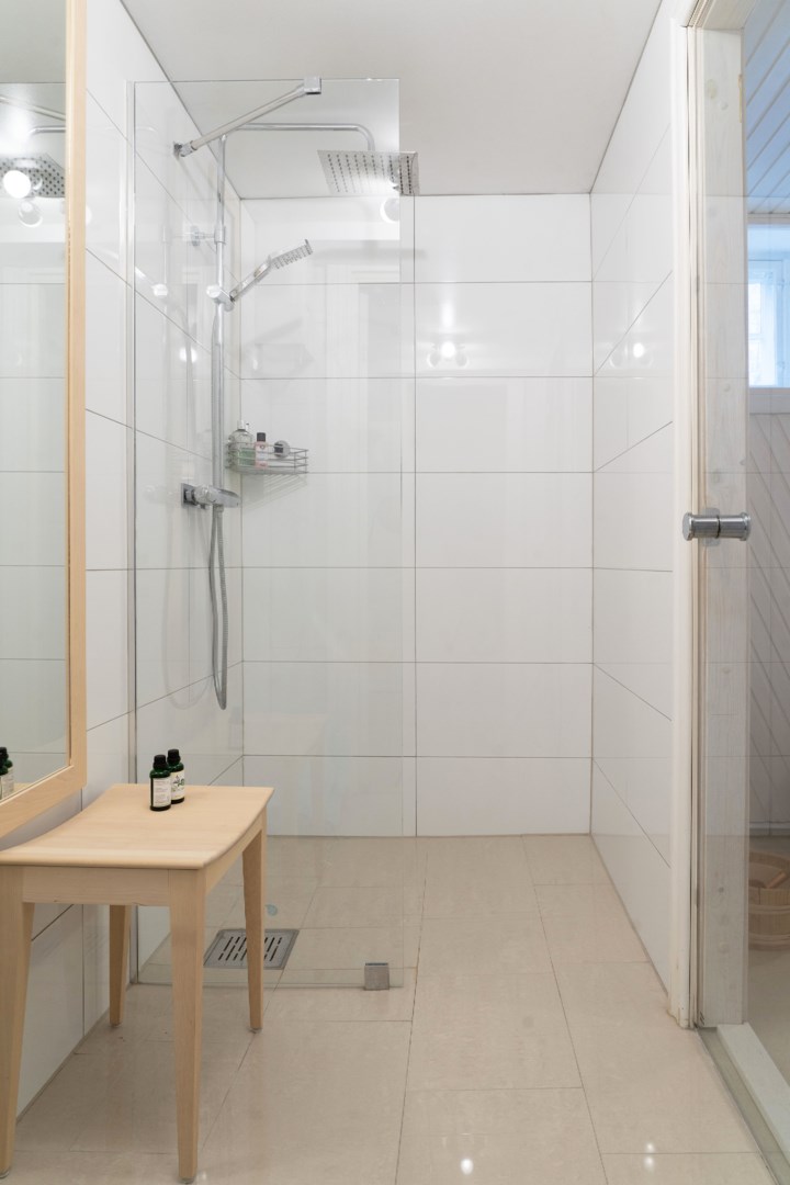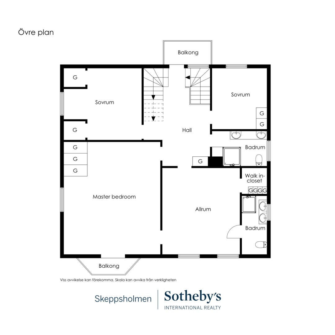 En trappa upp nås det privata planet med tre generösa sovrum samt ett allrum. Från master bedroom ses vattnet och det har en fransk balkong. Exklusivt badrum i sandfärgat klinker på golv och kakel på vägg samt dubbla handfat och dusch. Walk in closet med heltäckningsmatta.