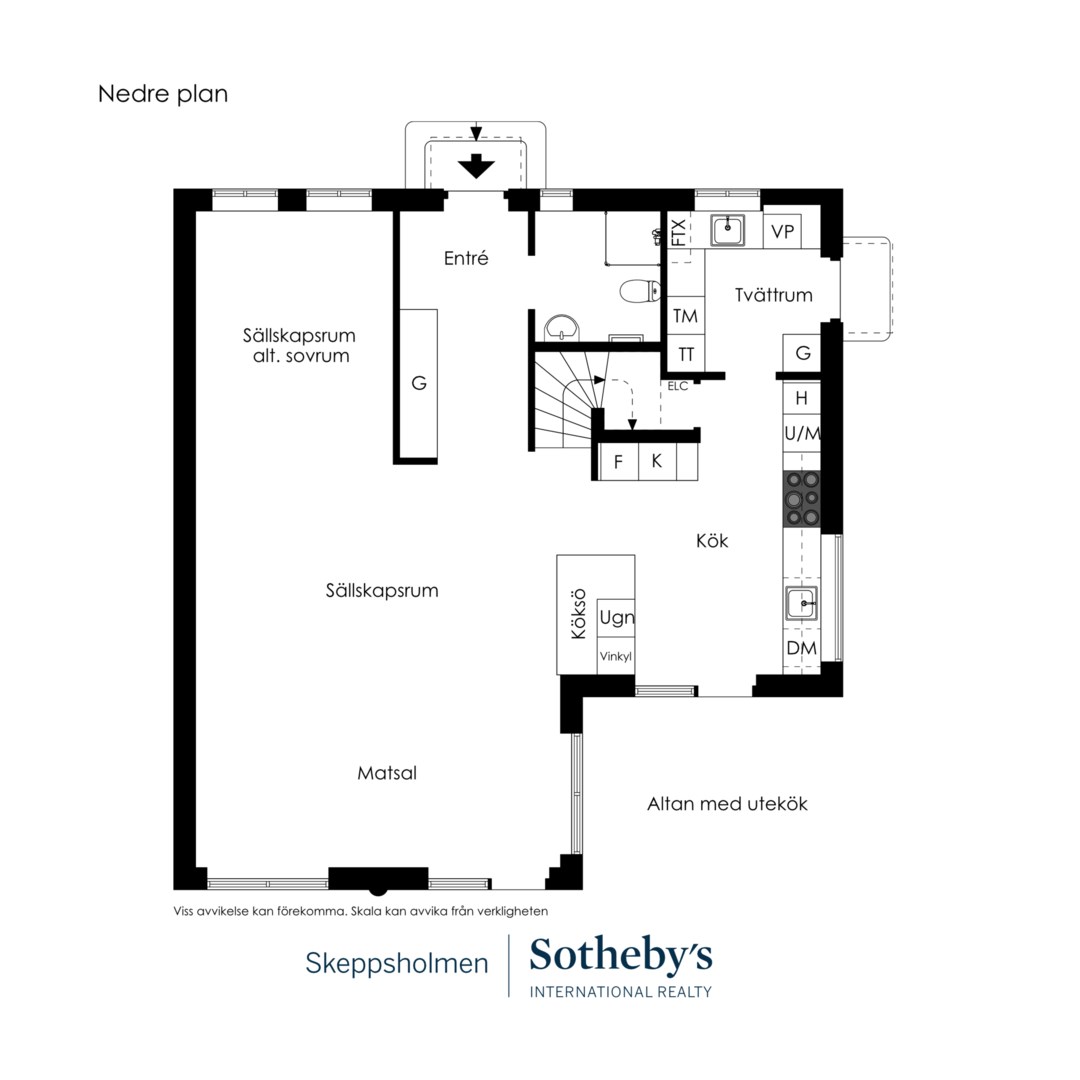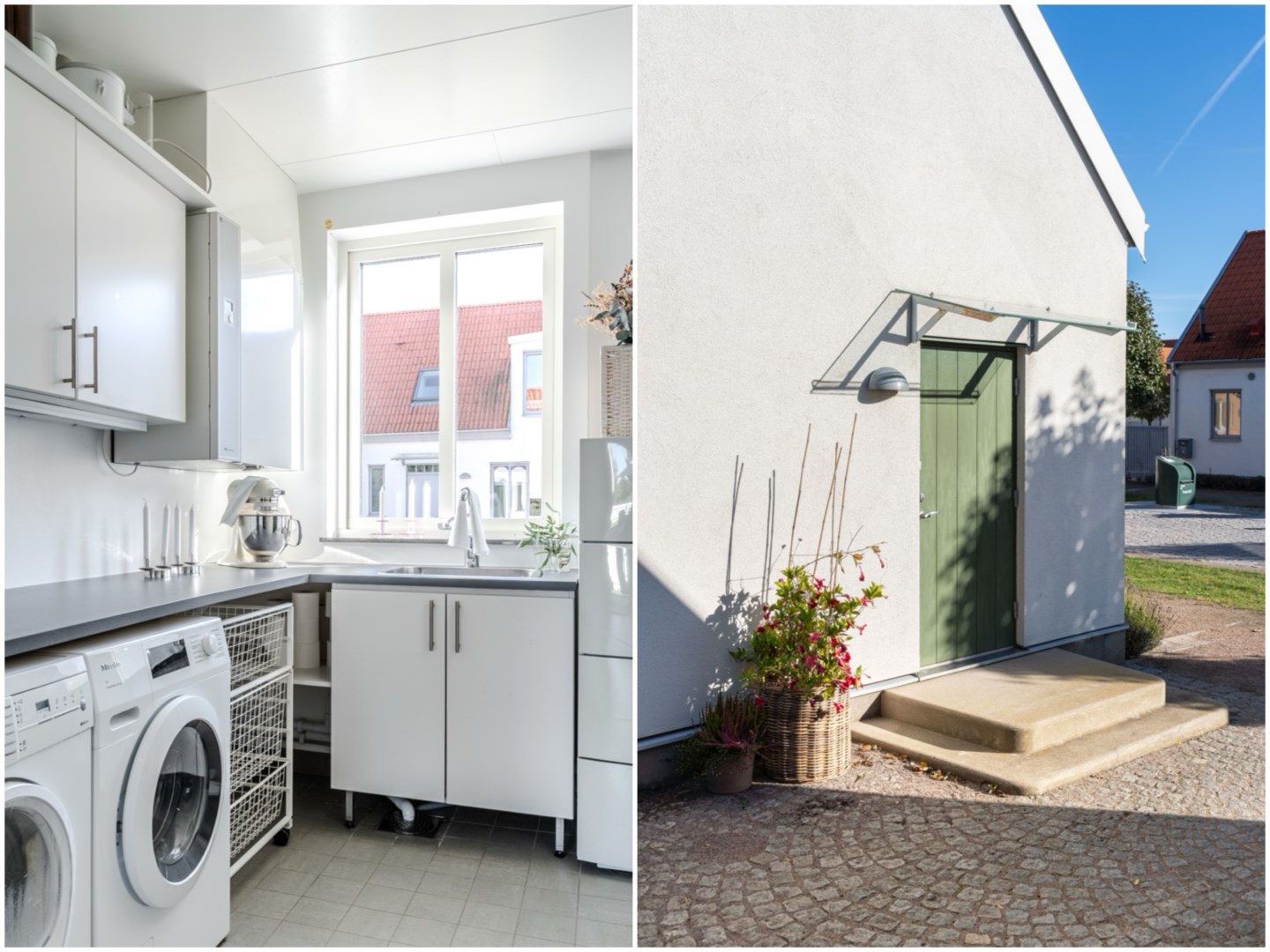 Det stilrena Vedumköket i klassisk ton med vitrinskåp, varmgrå kalkstenbänkar, 90 cm Bertazzoni-spis och en central köksö utgör hemmets hjärta. Här samlas familj och vänner för både vardag och fest. Direkt utanför väntar den soliga terrassen med utekök – en förlängning av hemmet under sommarens varma dagar. Intill köket finns en generös matsal och sällskapsrum, samt ett flexibelt allrum som även kan nyttjas som gästrum eller arbetsrum – alternativt konverteras till sovrum. Därtill finns på nedre plan ett badrum och ett välutrustat tvättrum med separat ingång.
