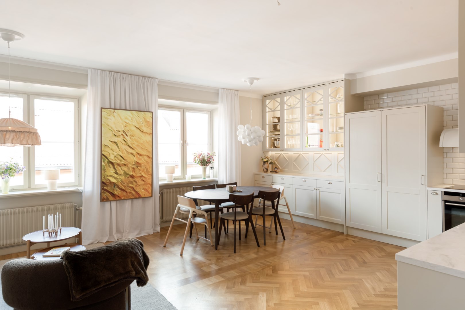 Välkommen till en smakfullt renoverad lägenhet i en vacker fastighet från 1924, belägen i en skuldfri förening med ett centralt läge i Vasastan. Härlig balkong mot lugn innergård med plats för både utemöbler och planteringar, en perfekt plats för härliga stunder. Varma interiöra färger och öppen social planlösning mellan kök och vardagsrum. Stilfullt renoverat kök med fina detaljer. Gott om förvaring utrustat med både varmluftsugn, diskmaskin, spishäll och gott om arbetsytor. Vacker vitrin med snickarglädje.