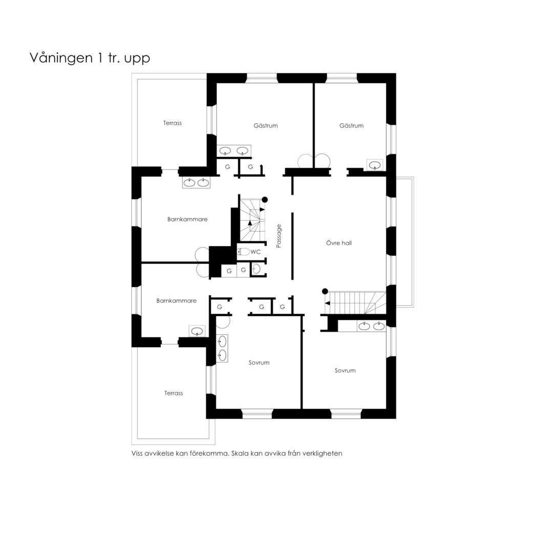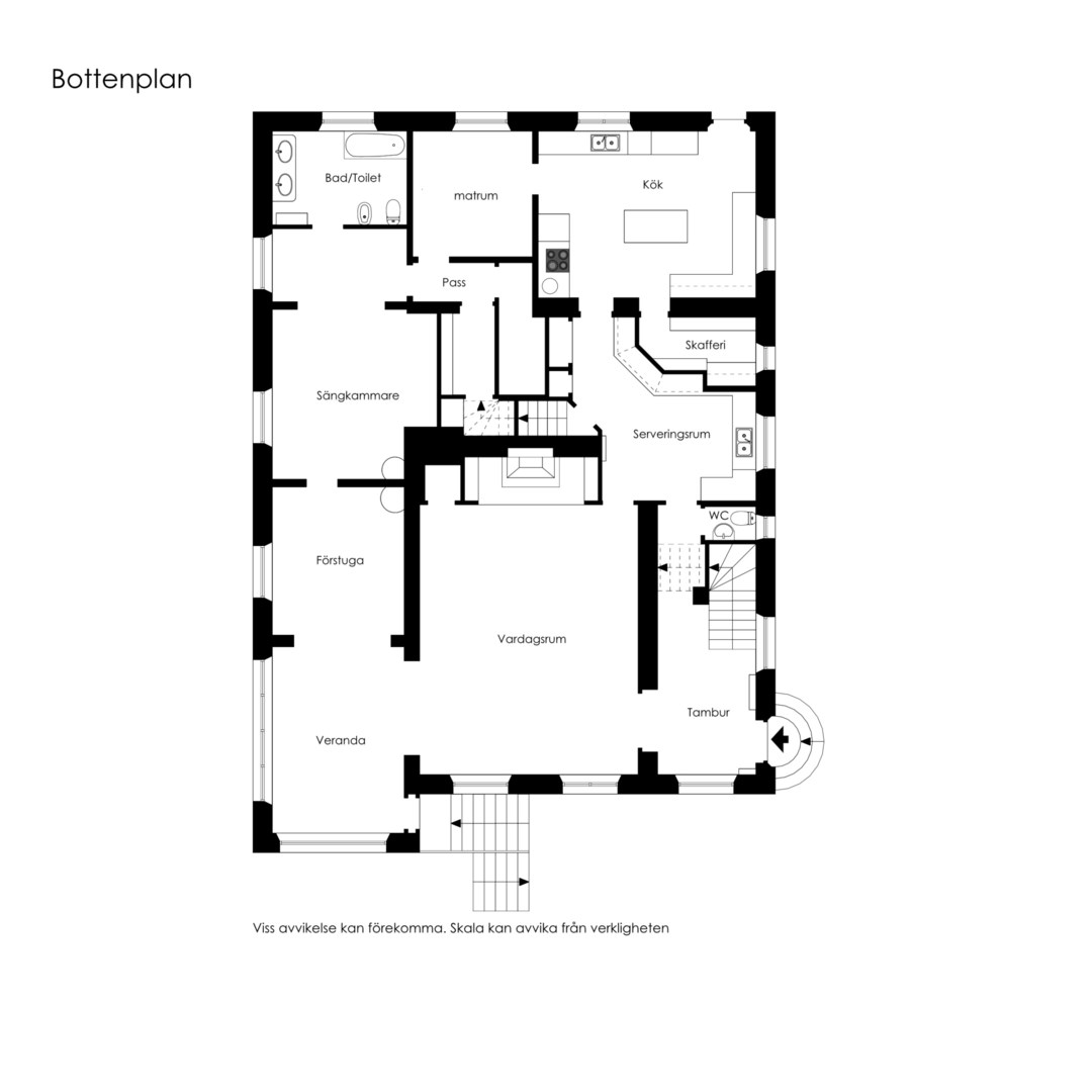 Villan är fördelad på 14 rum med stora sociala ytor, flertal sovrum, punchveranda, whiskyrum, två takterrasser, och en balkong. Det finns flera fungerande kakelugnar och i det stora sällskapsrummet en öppen spis. Här finns även en välbevarad väggmålning av konstnären Jerk Werkmäster från 1929 som visar motiv av fastigheten och dess tidigare ägare.