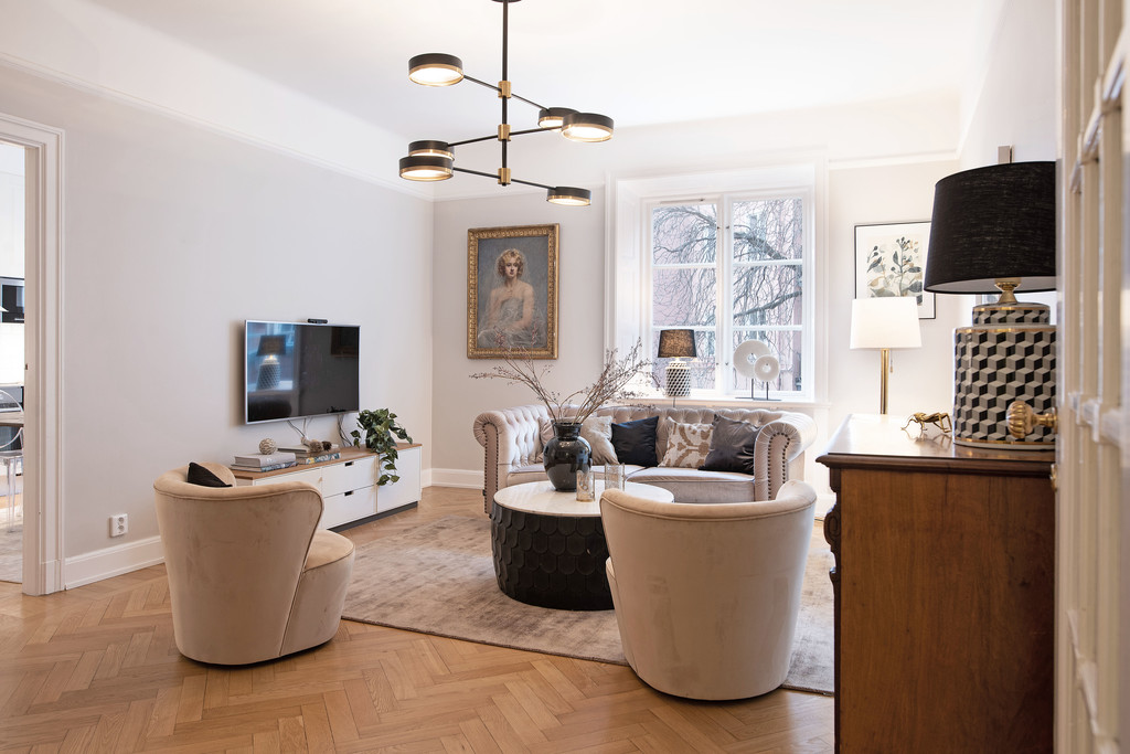 Med eftersökt läge på Wittstocksgatan i 20-talsfastighet bjuds synnerligen smakfull våning med optimal disponering. Inbjudande hall med öppen spis, platsbyggd förvaring för ytterkläder och plats för stor barnvagn. Mot gatan finns ett härligt vardagsrum samt ett magnifikt kök med stor matplats. Köket är utrustat med bänkskiva i carraramarmor, induktionsspis, varmluftsugn, inbyggd kyl och frys, diskmaskin och micro. Vinkyl från Miele. Mot den grönskande innergården finns tre sovrum där det större sovrummet har balkong. Rymlig klädkammare. Serveringsrum/bibliotek med bevarade original skåp. Stiligt helkaklat badrum med badkar och TM. Två WC. Mycket välskött bostadsrättsförening som är skuldfri. Ett mycket elegant hem med ett ypperligt läge invid Karlaplans utbud av butiker och restauranger.